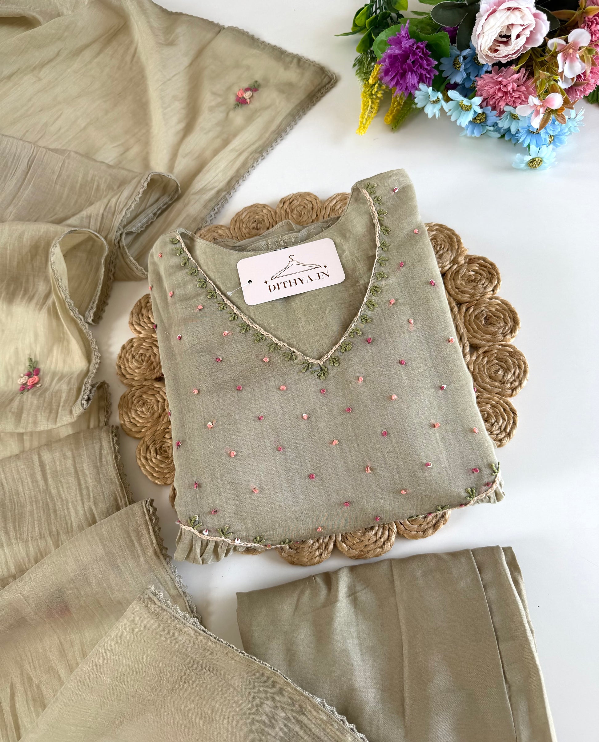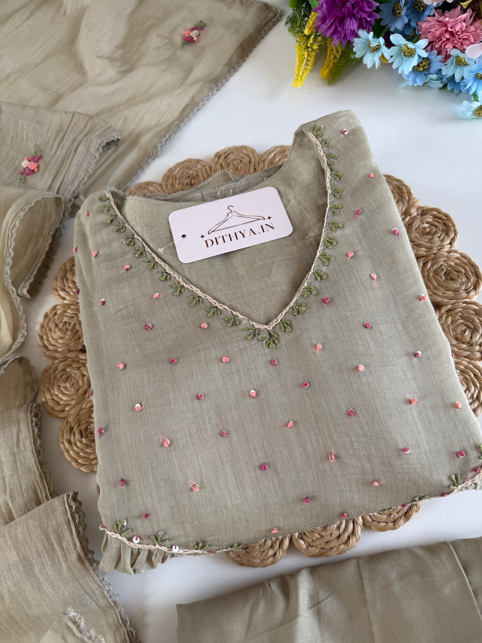 K154 - Mul chanderi embroidered Anarkali with pants and dupatta