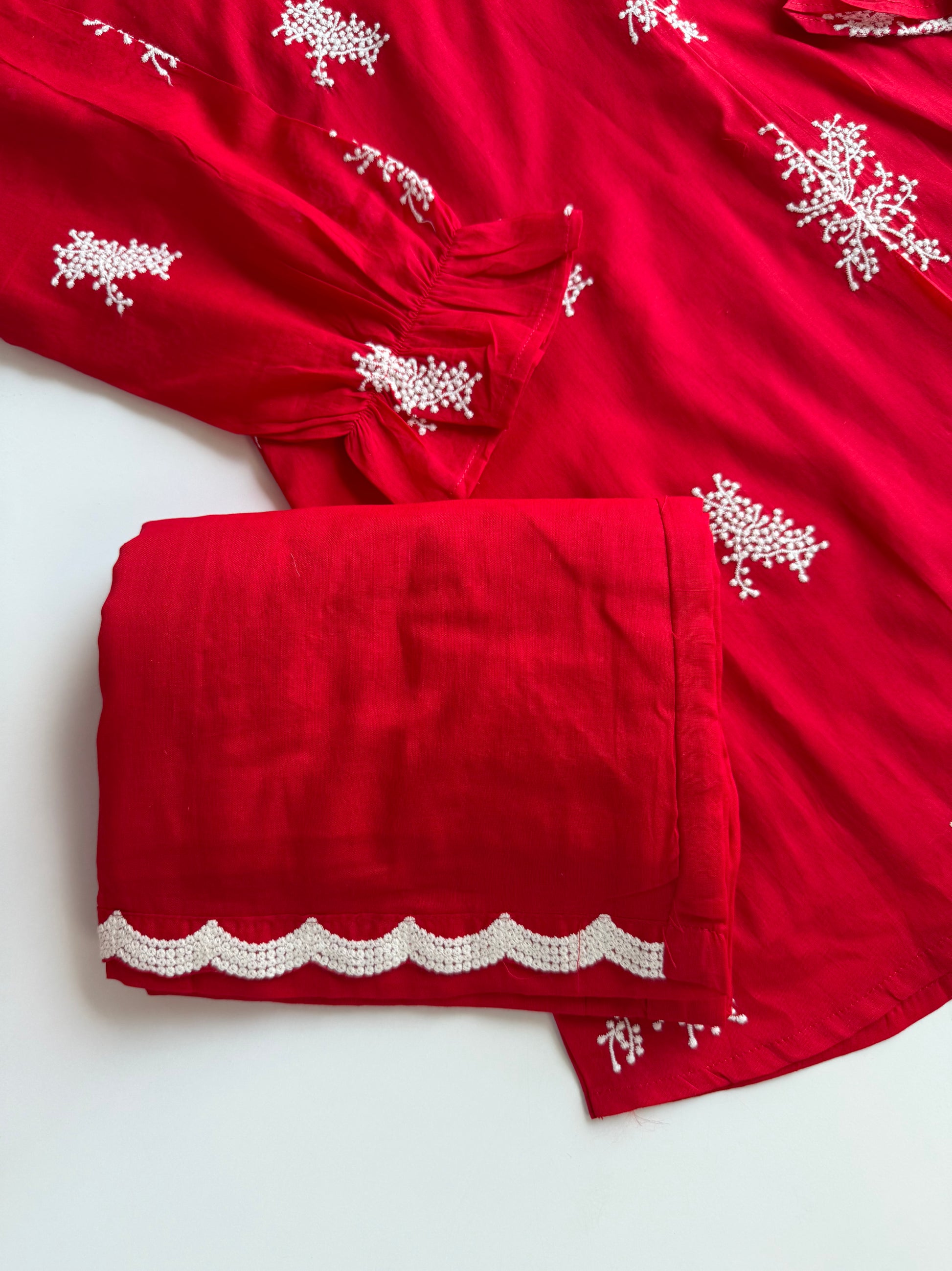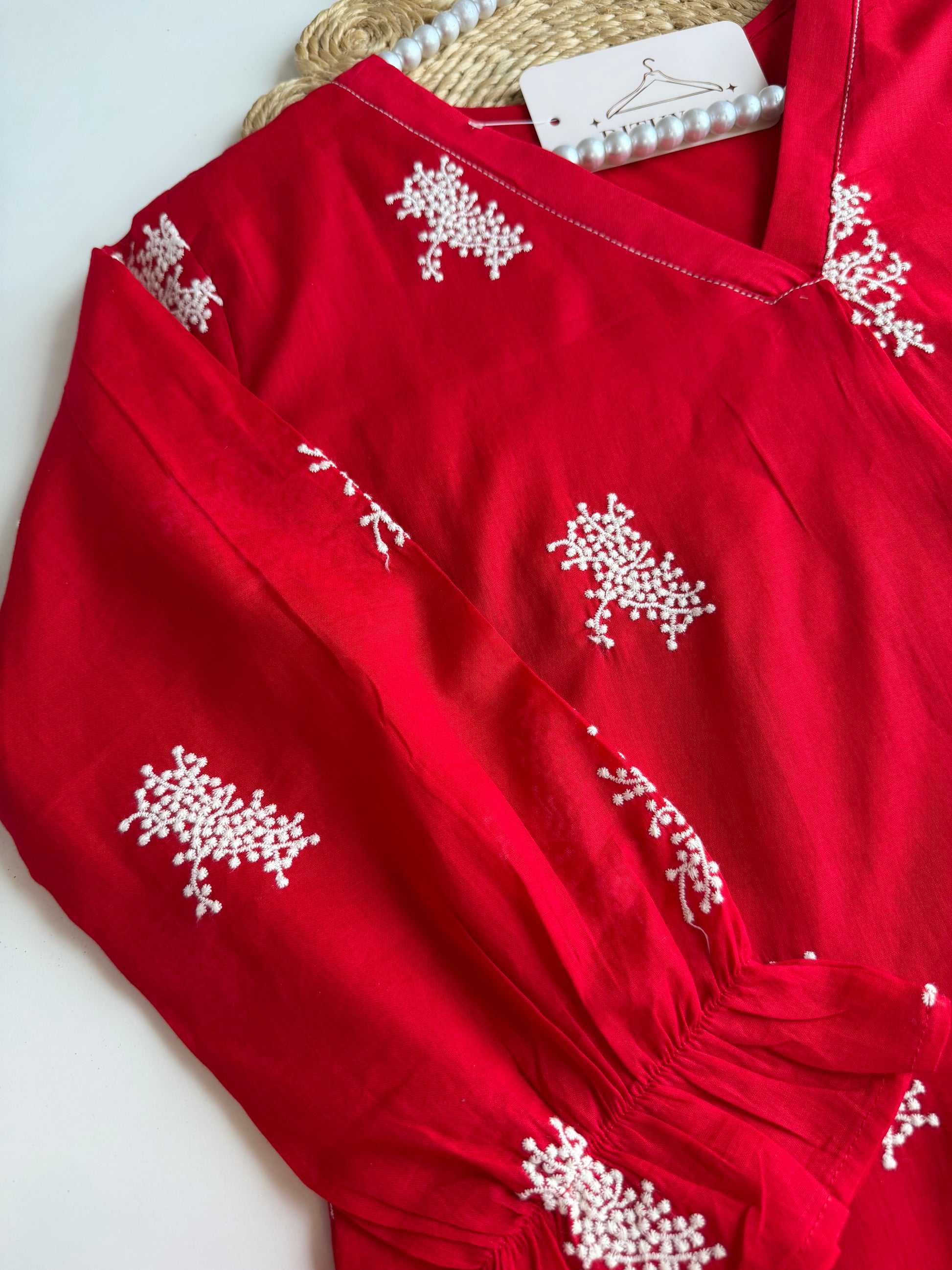 This Mul chanderi embroidered coord set adds an elegant touch to any wardrobe. Made from luxurious Mul chanderi fabric, this set features intricate embroidery that showcases the expert craftsmanship. Combining traditional design with modern style, this coord set is perfect for any occasion. Enhance your look and feel confident in this sophisticated ensemble.
