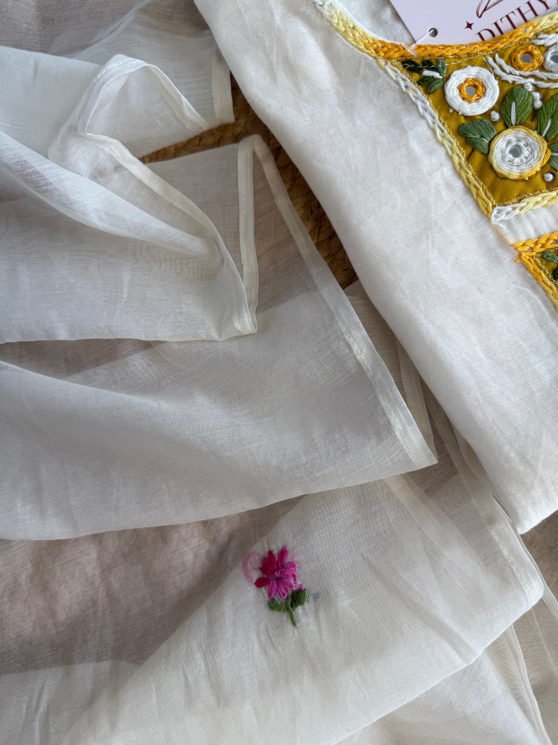 K504 - Mul chanderi embroidered straight Kurti with pants and dupatta