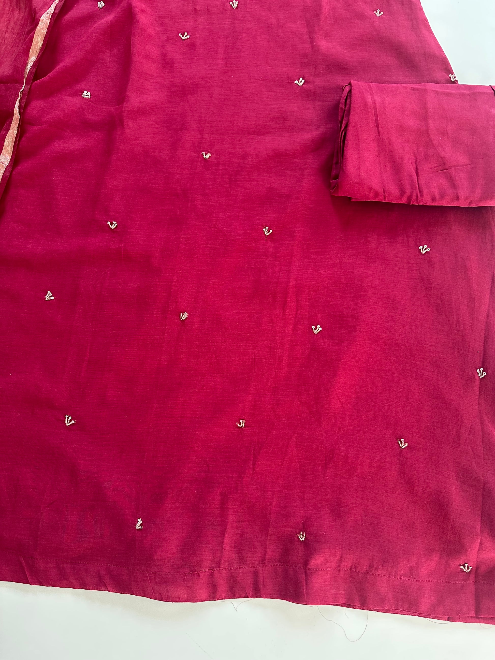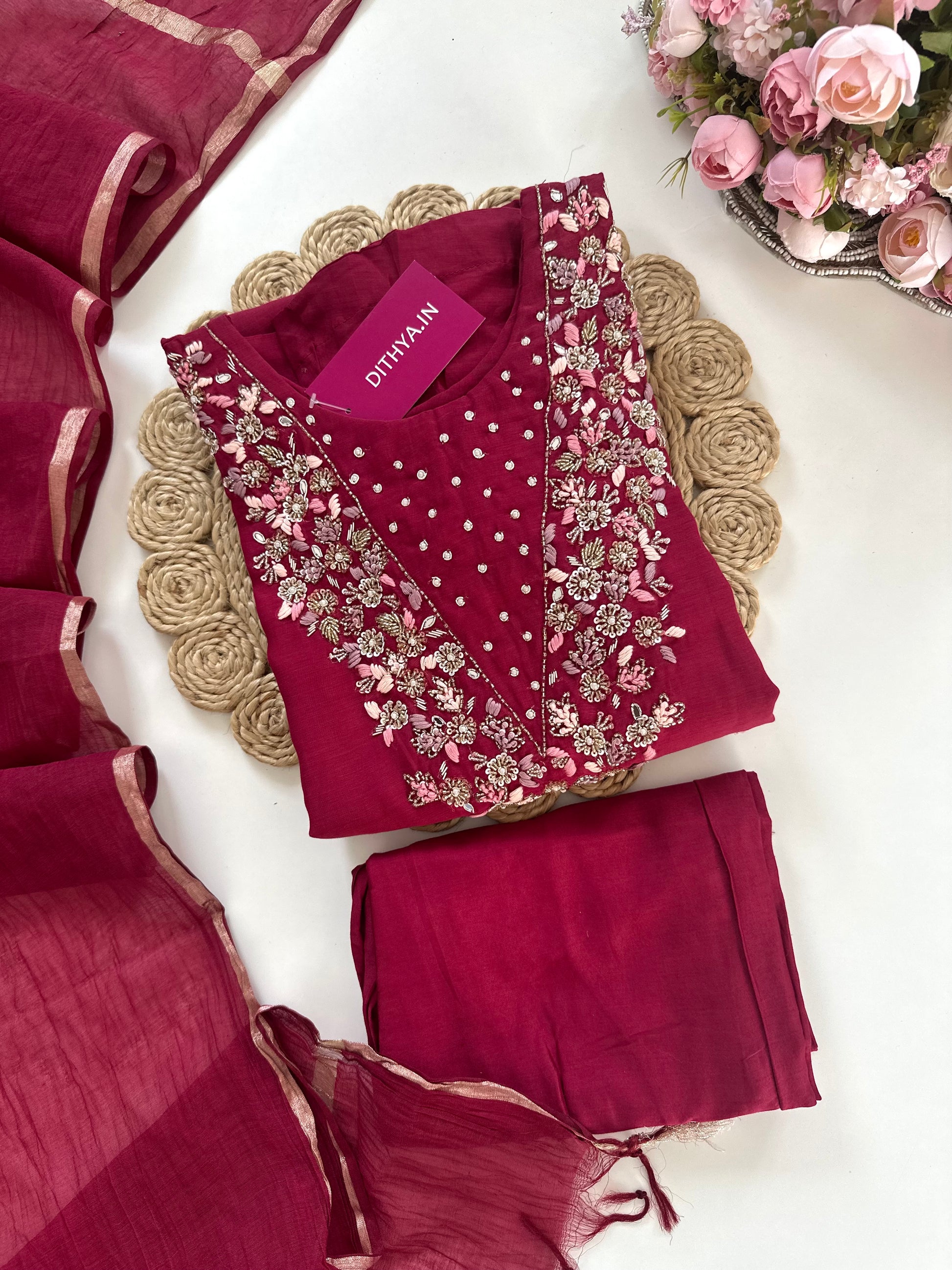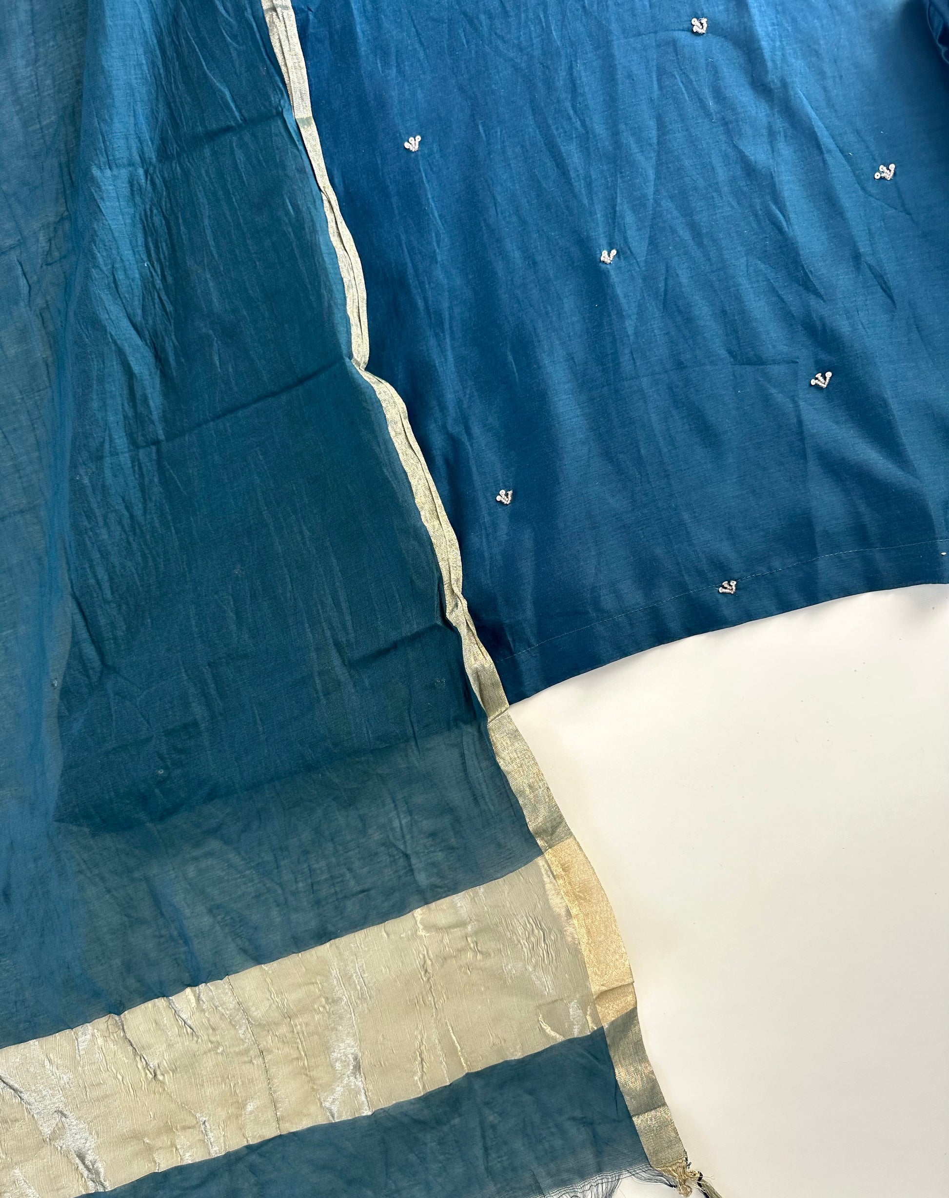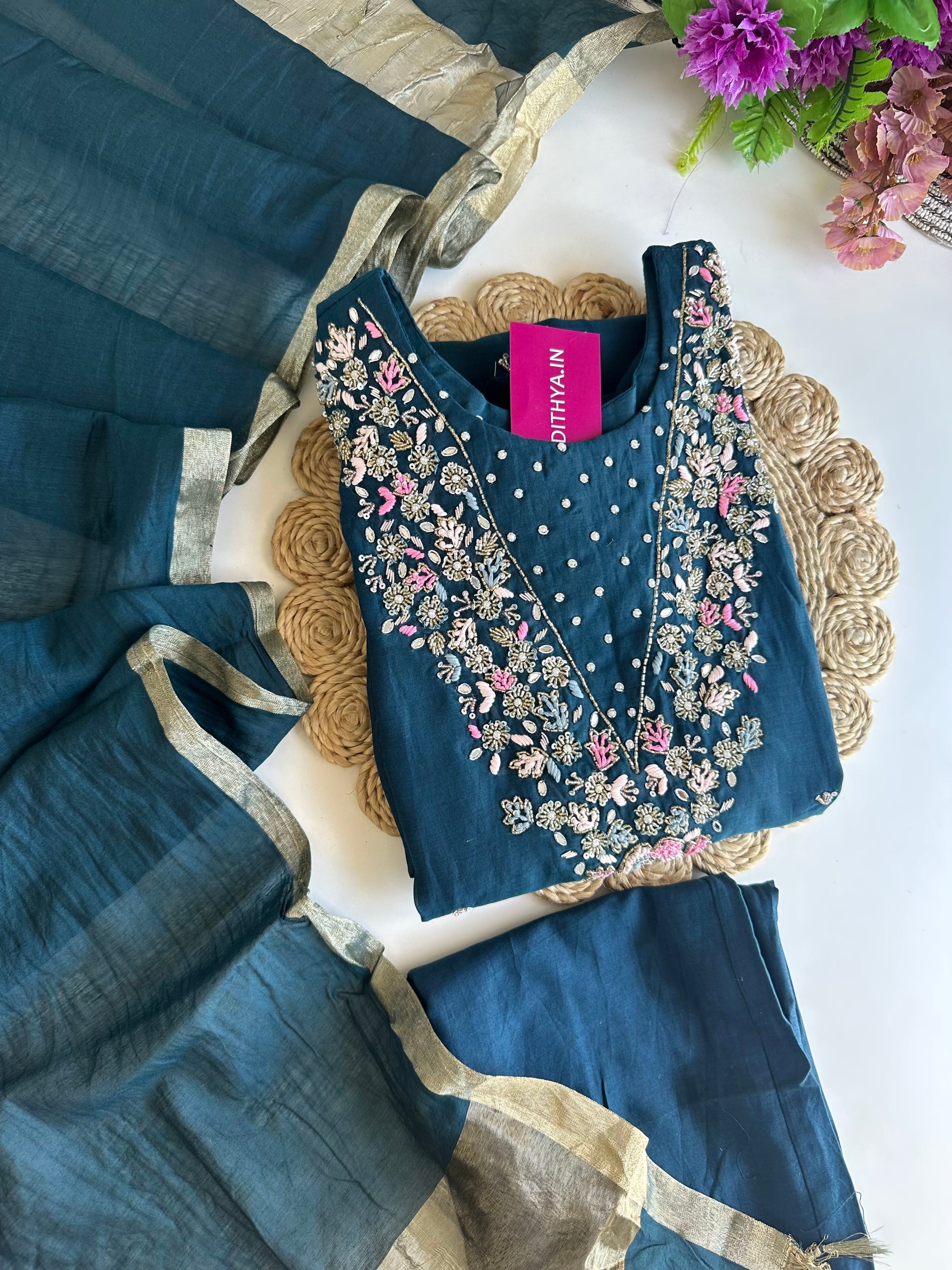 K021 - Mul Chanderi handwork Aline Kurti with pants and dupatta