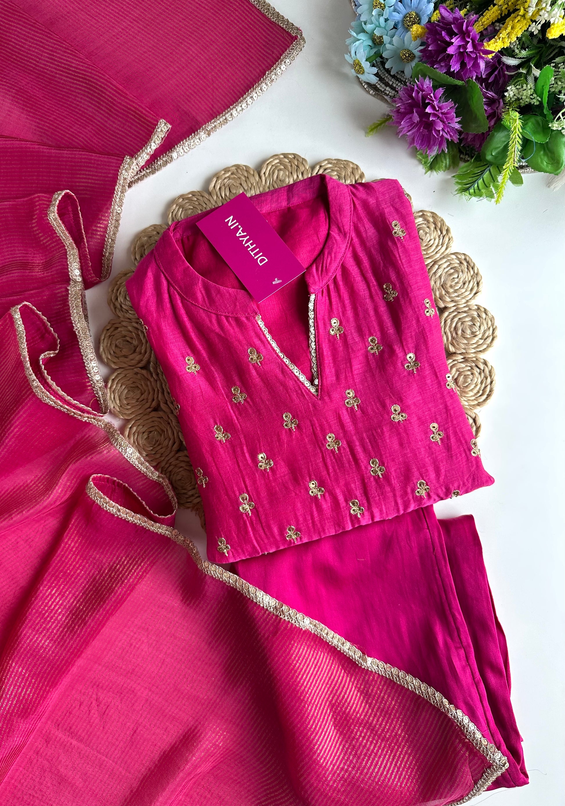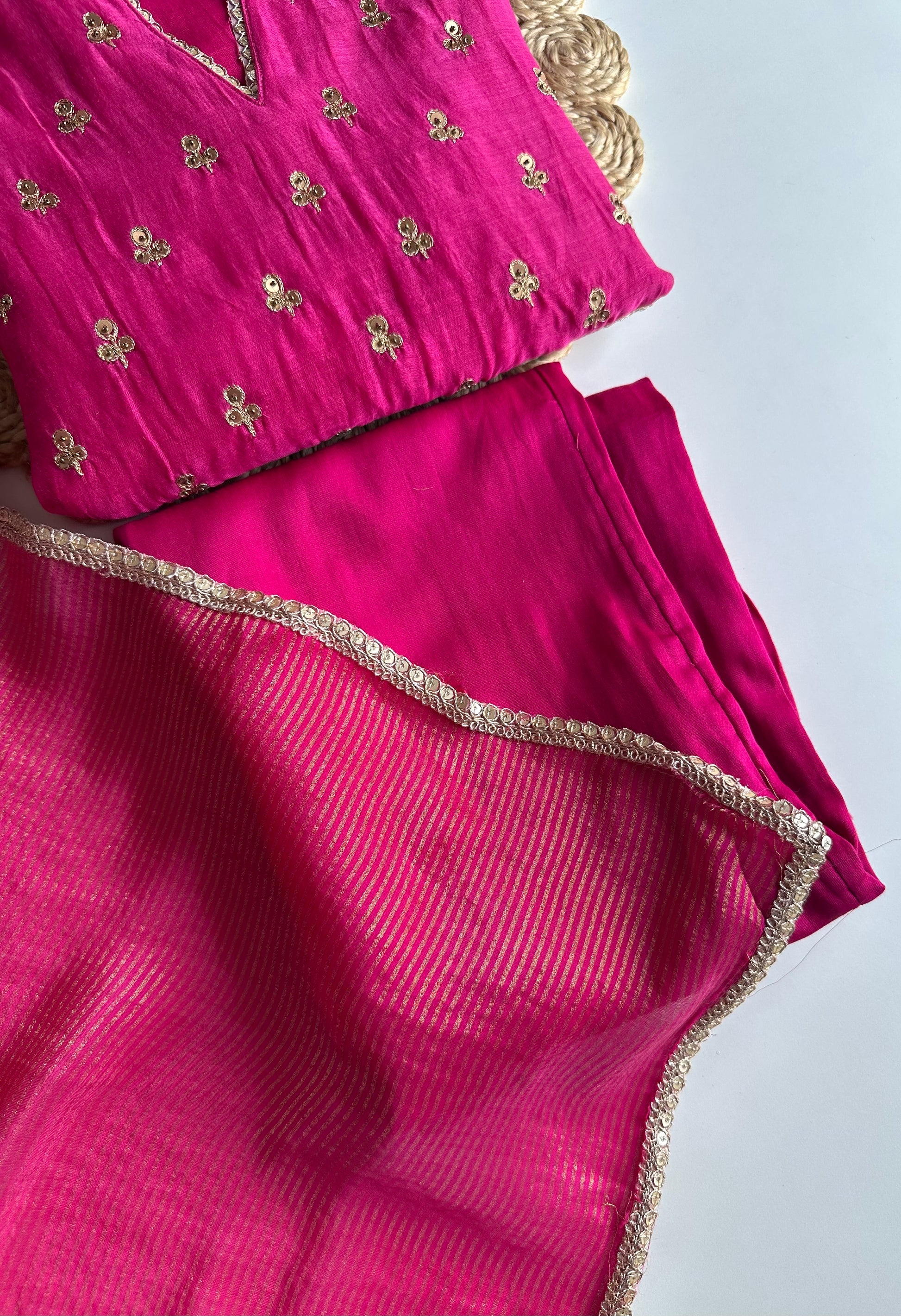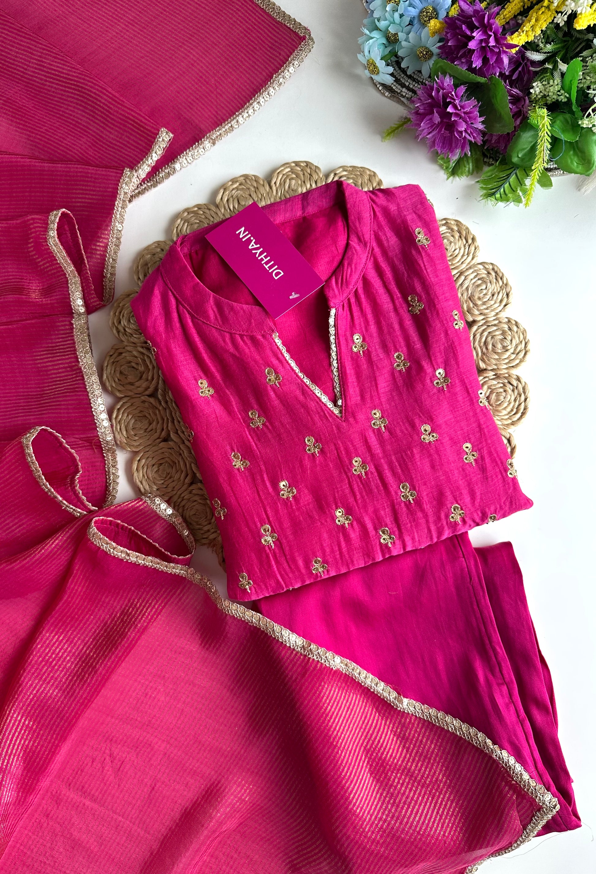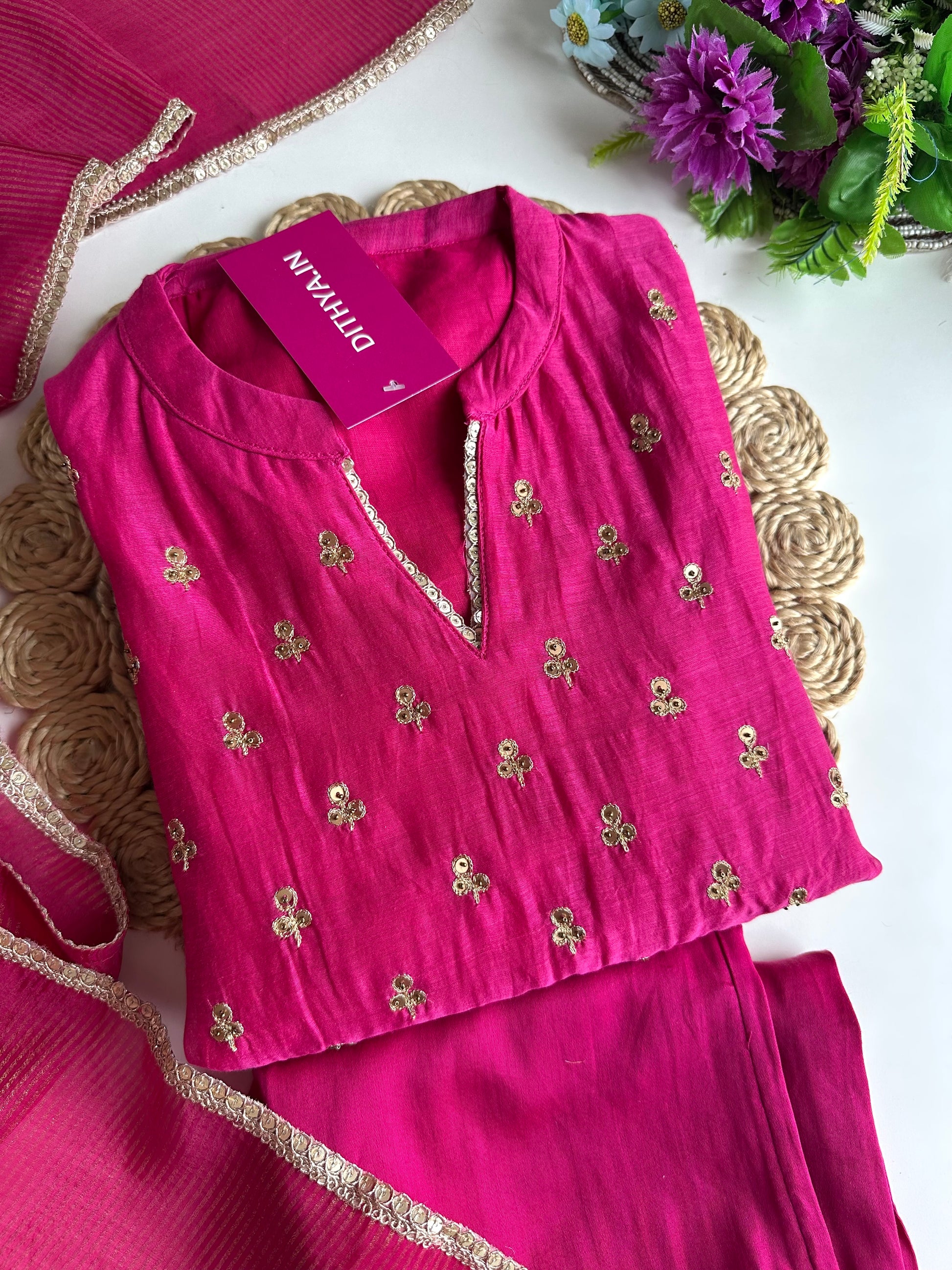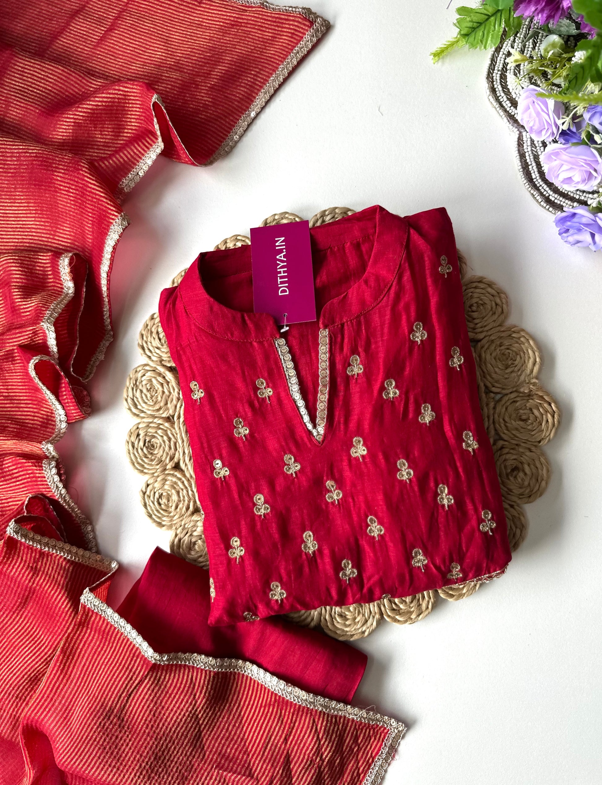 K013 - Mul Chanderi handwork Aline Kurti with pants and dupatta