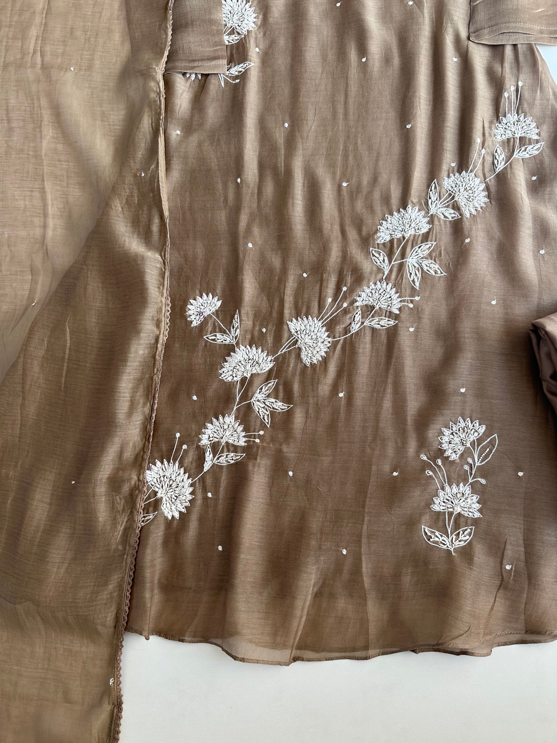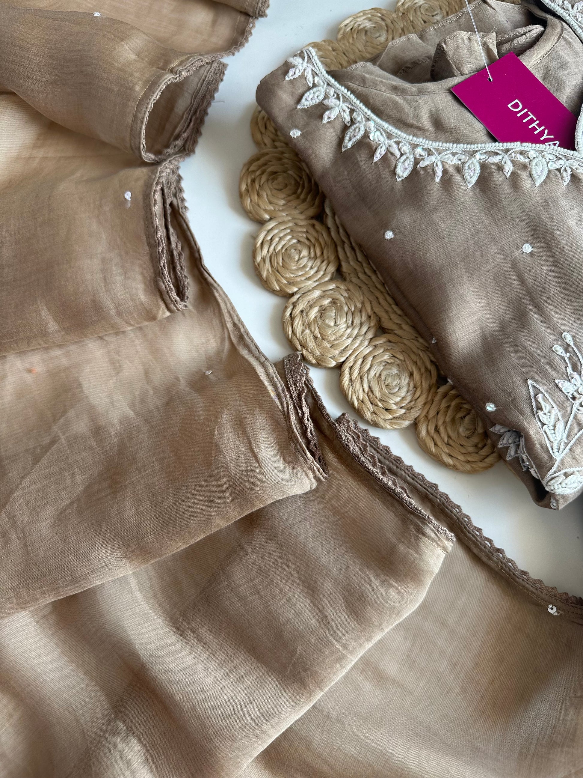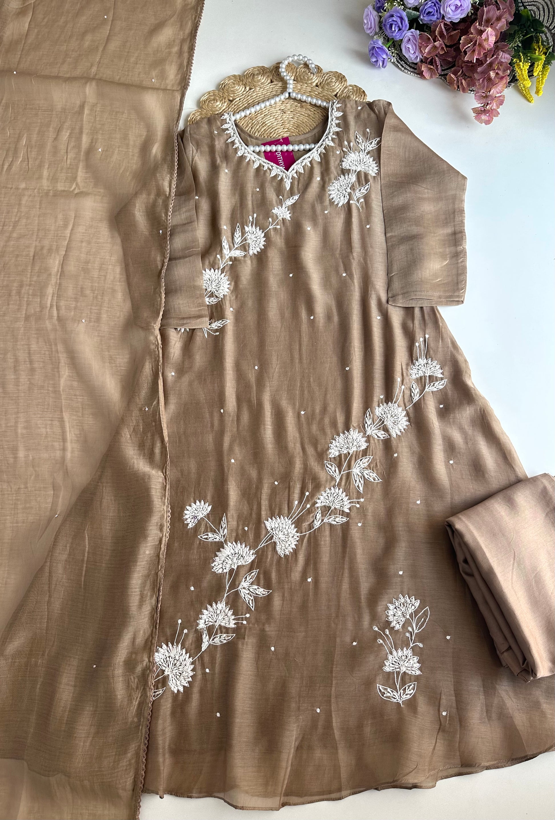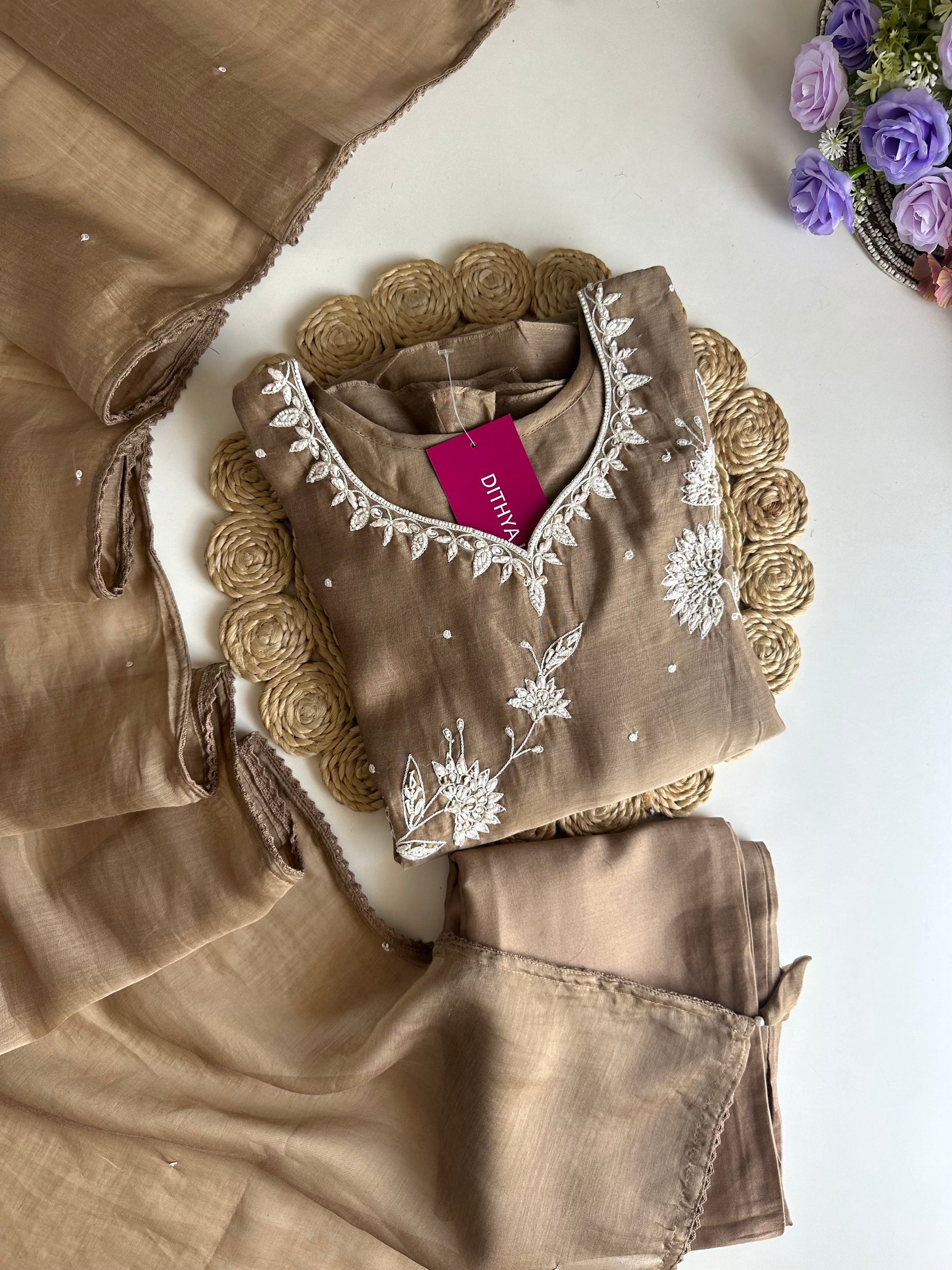 K079 - Mul Chanderi Handwork Aline Kurti with pants and dupatta