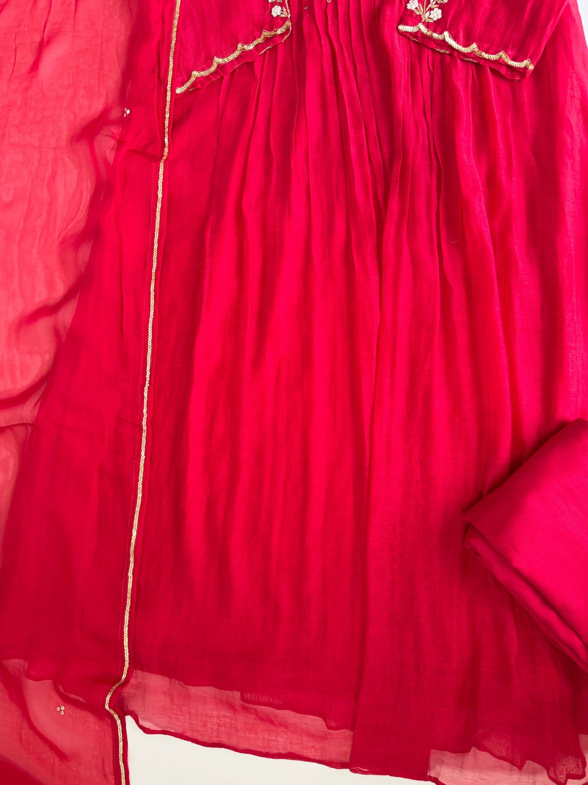 K537 - Mul chanderi handwork Aline Kurti with pants and dupatta