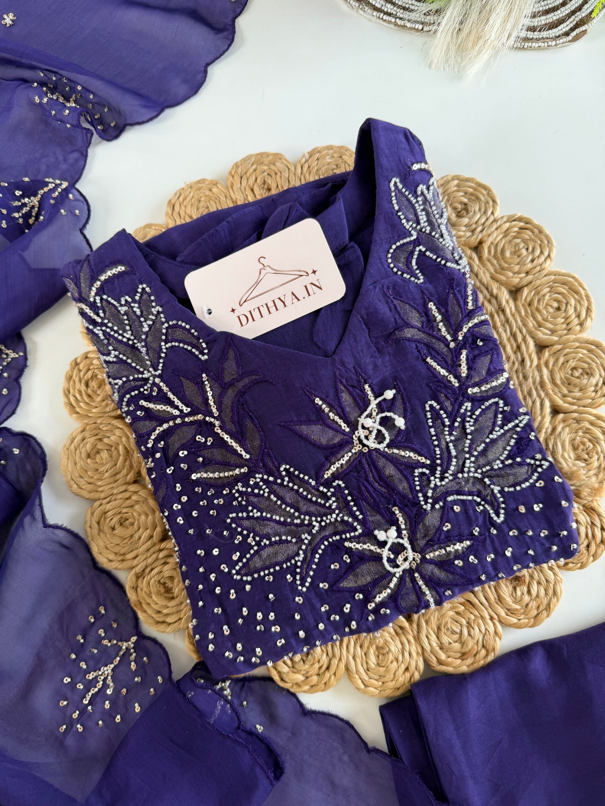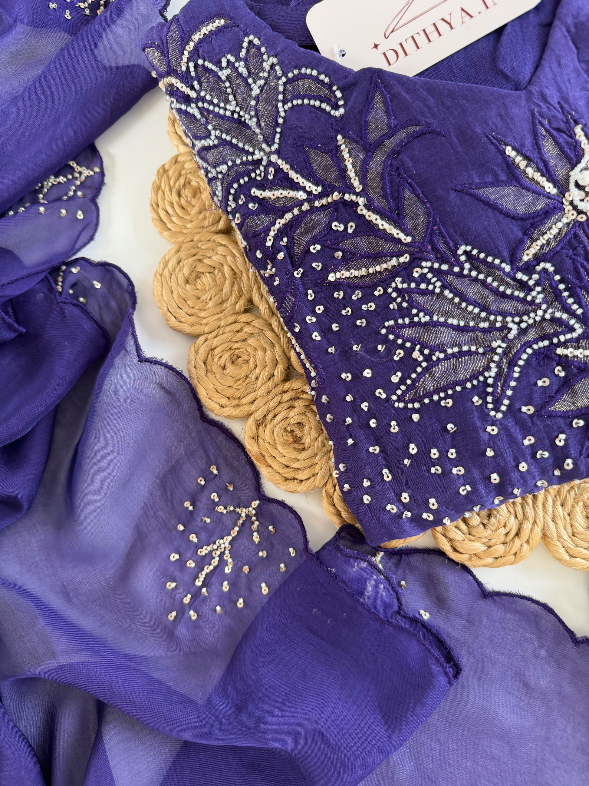 K612 - Mul chanderi handwork aline Kurti with pants and dupatta