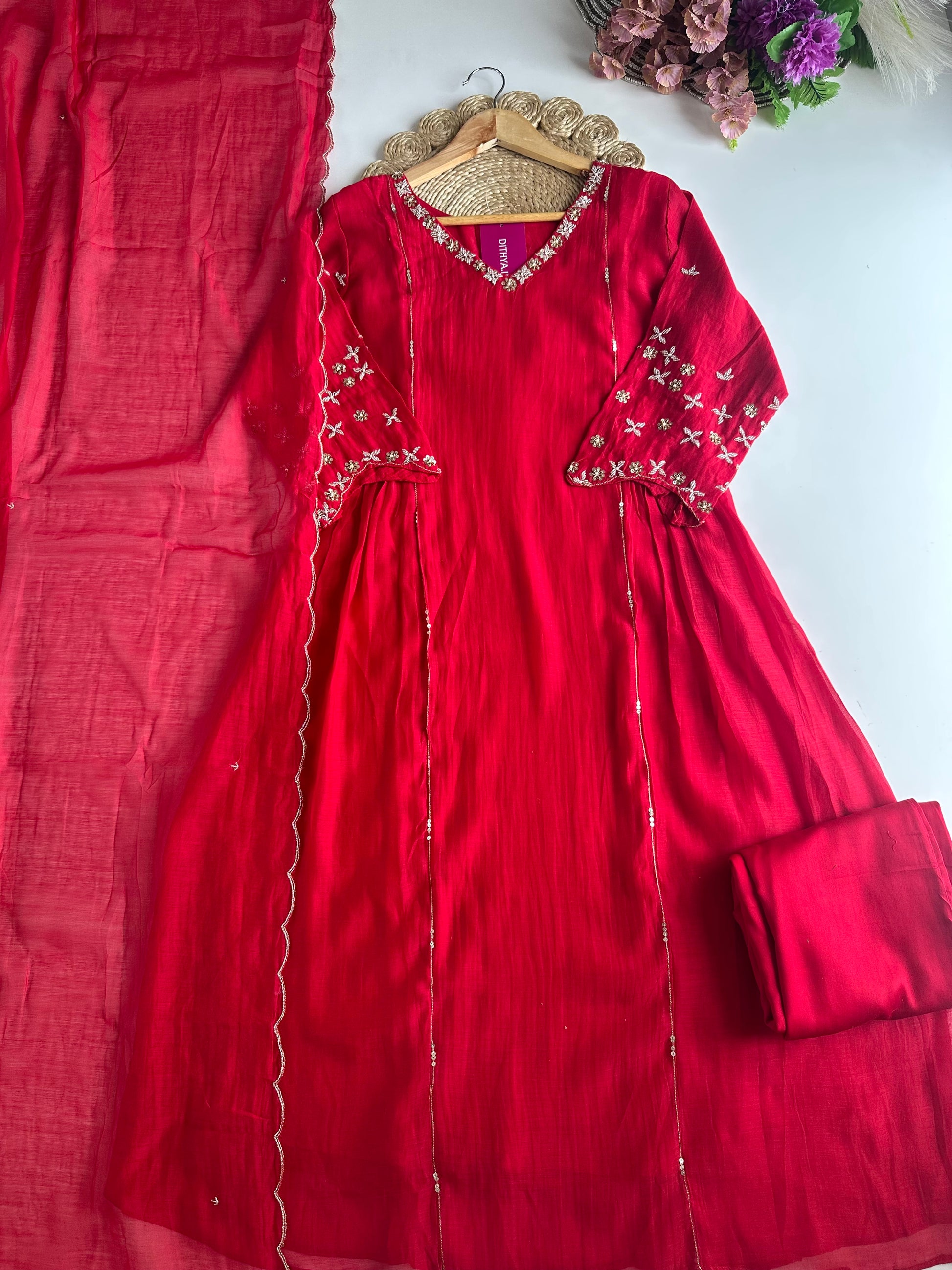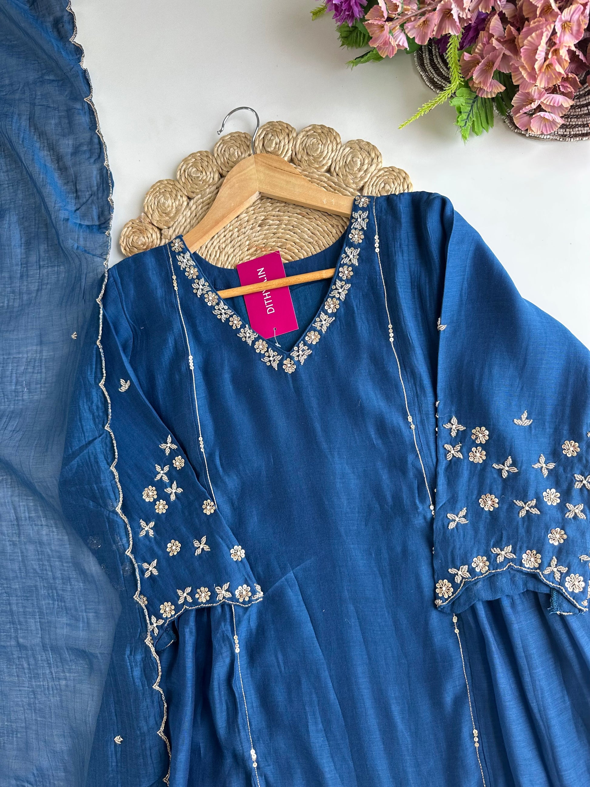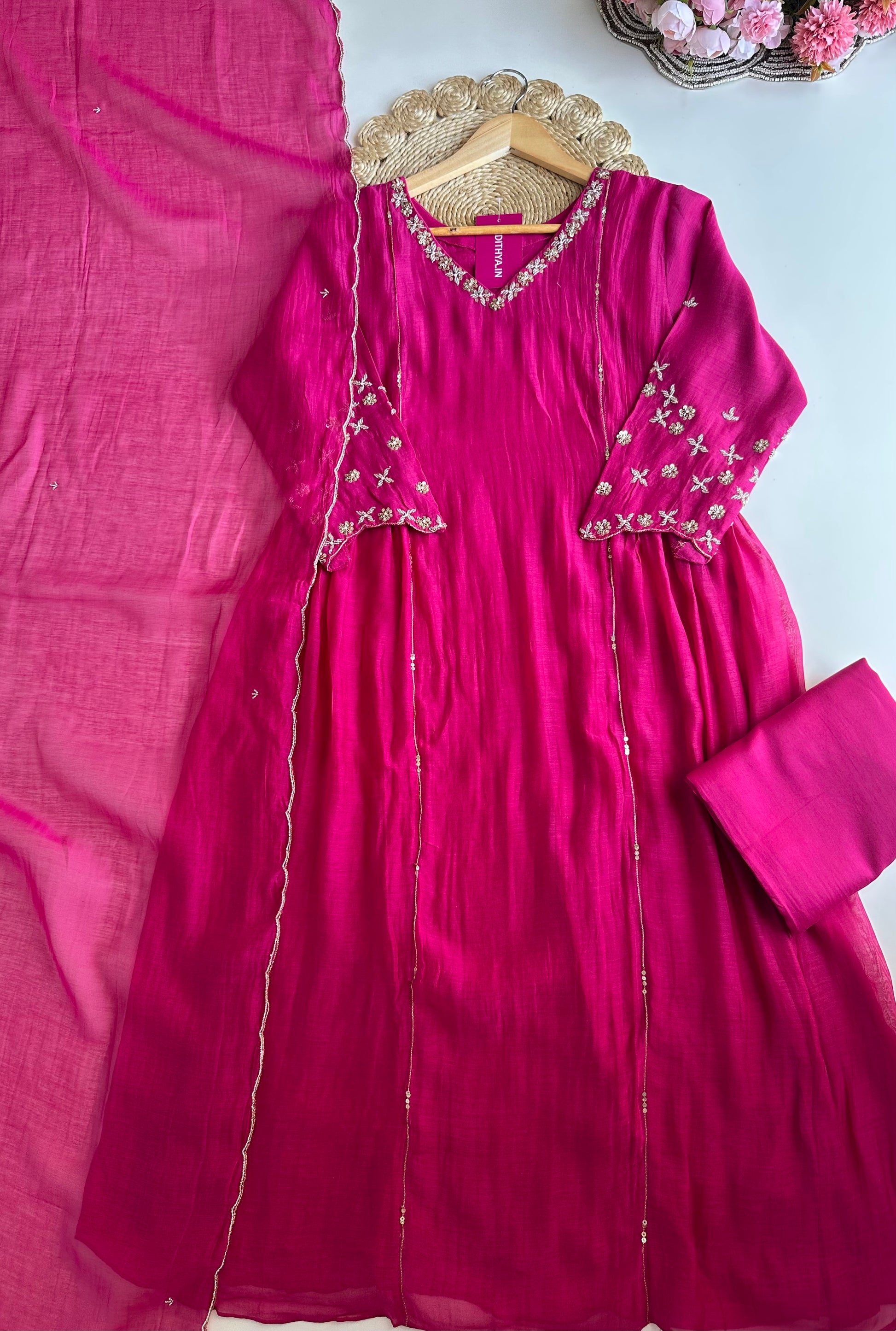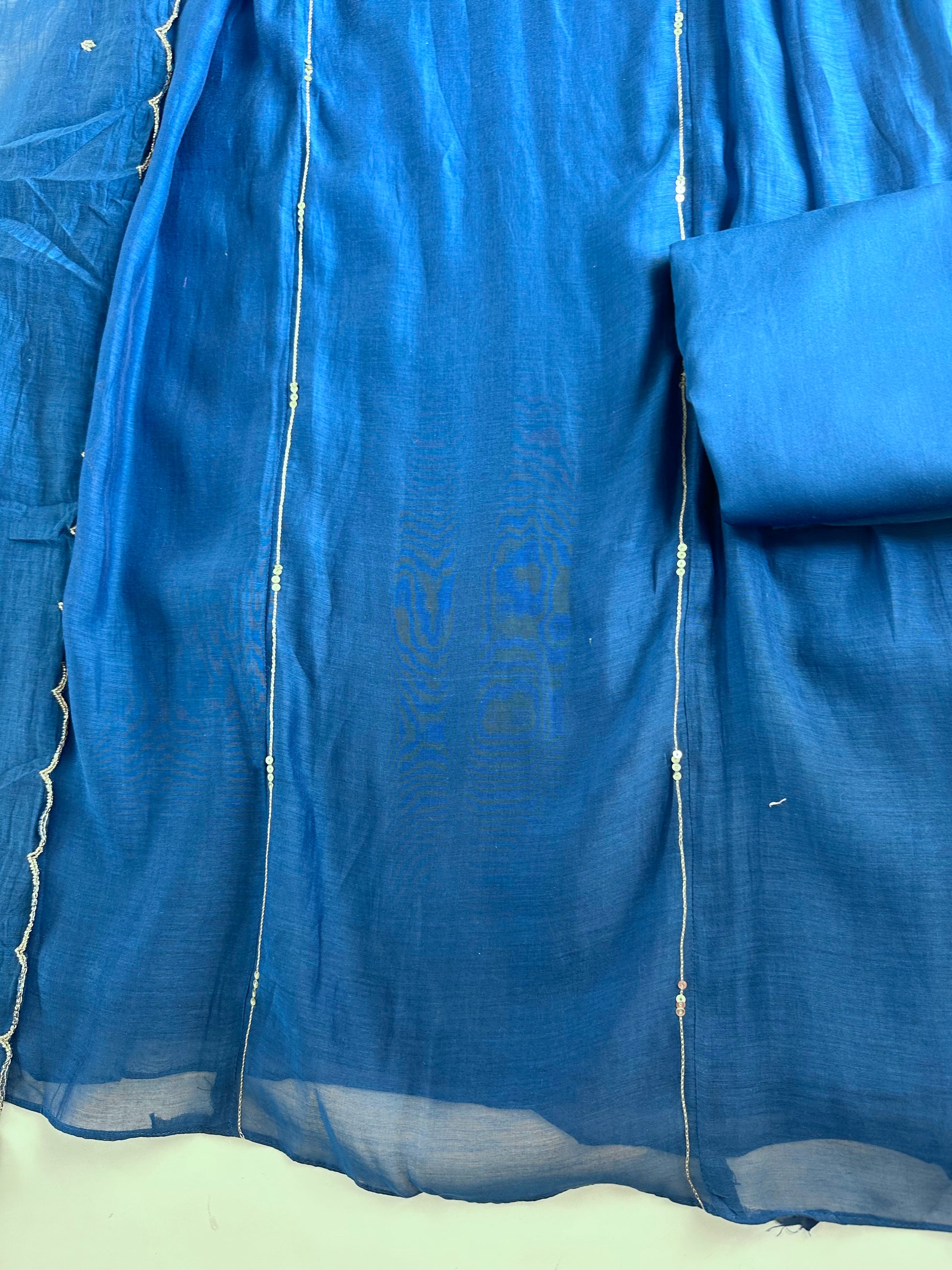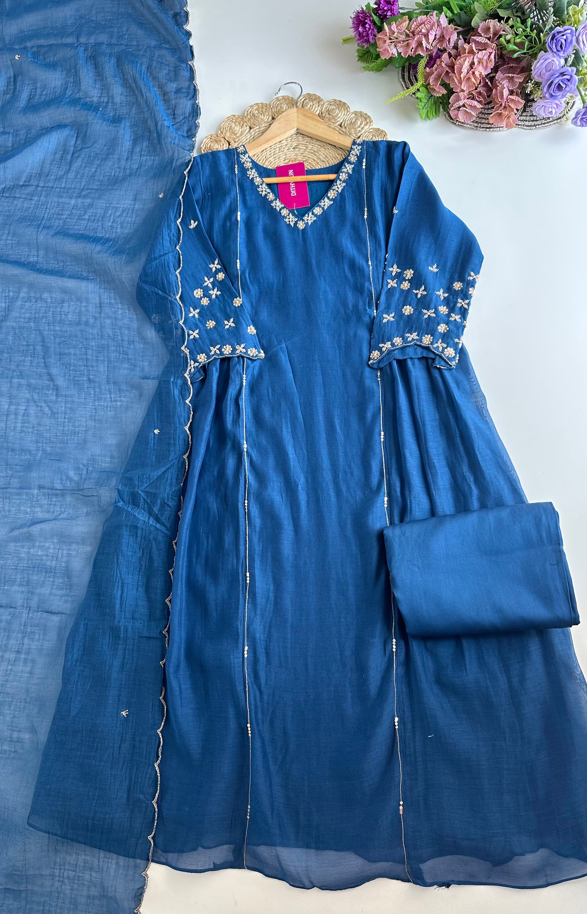 K309 - Mul Chanderi handwork Anarkali with pants and dupatta in 3 colours