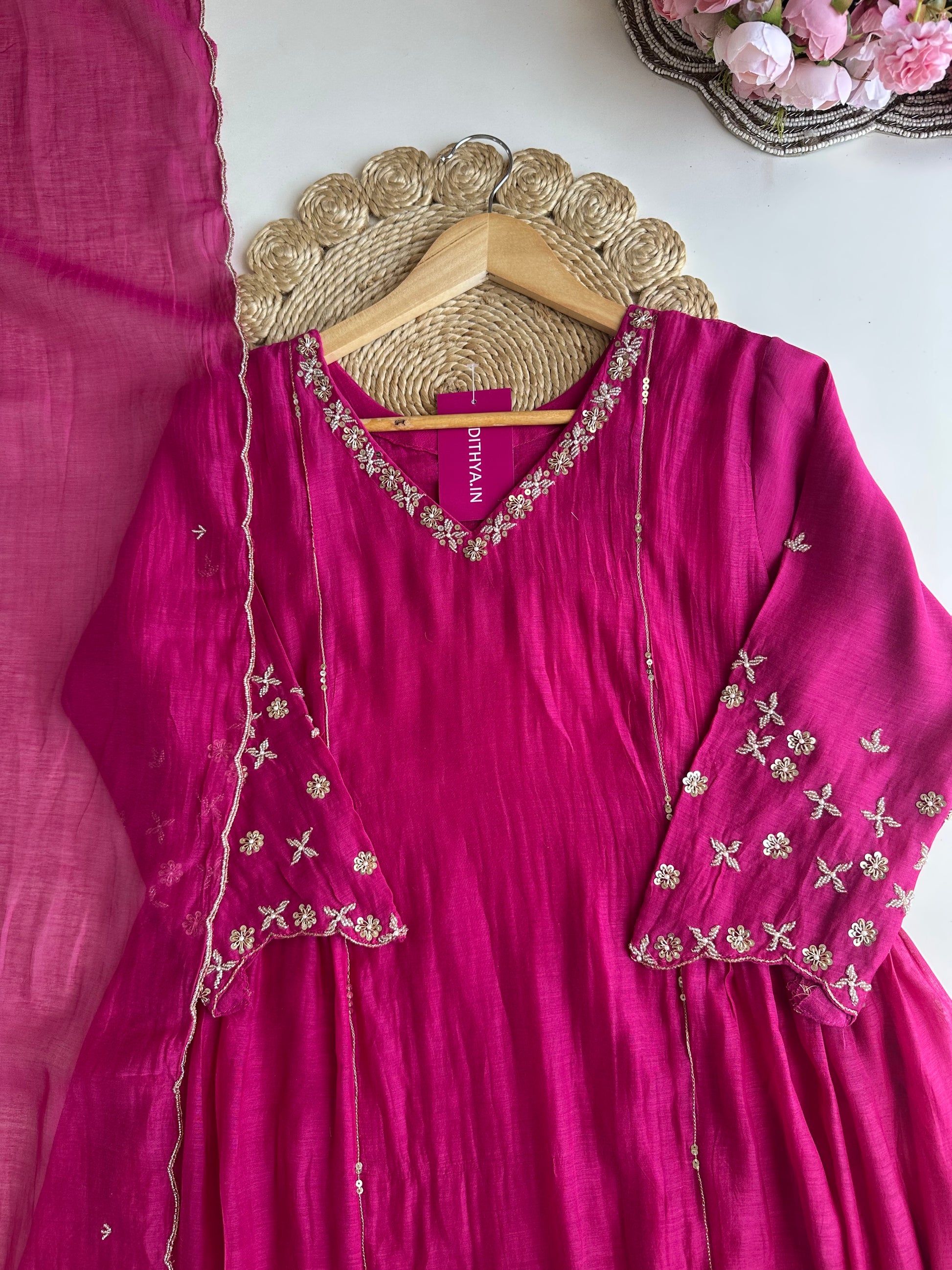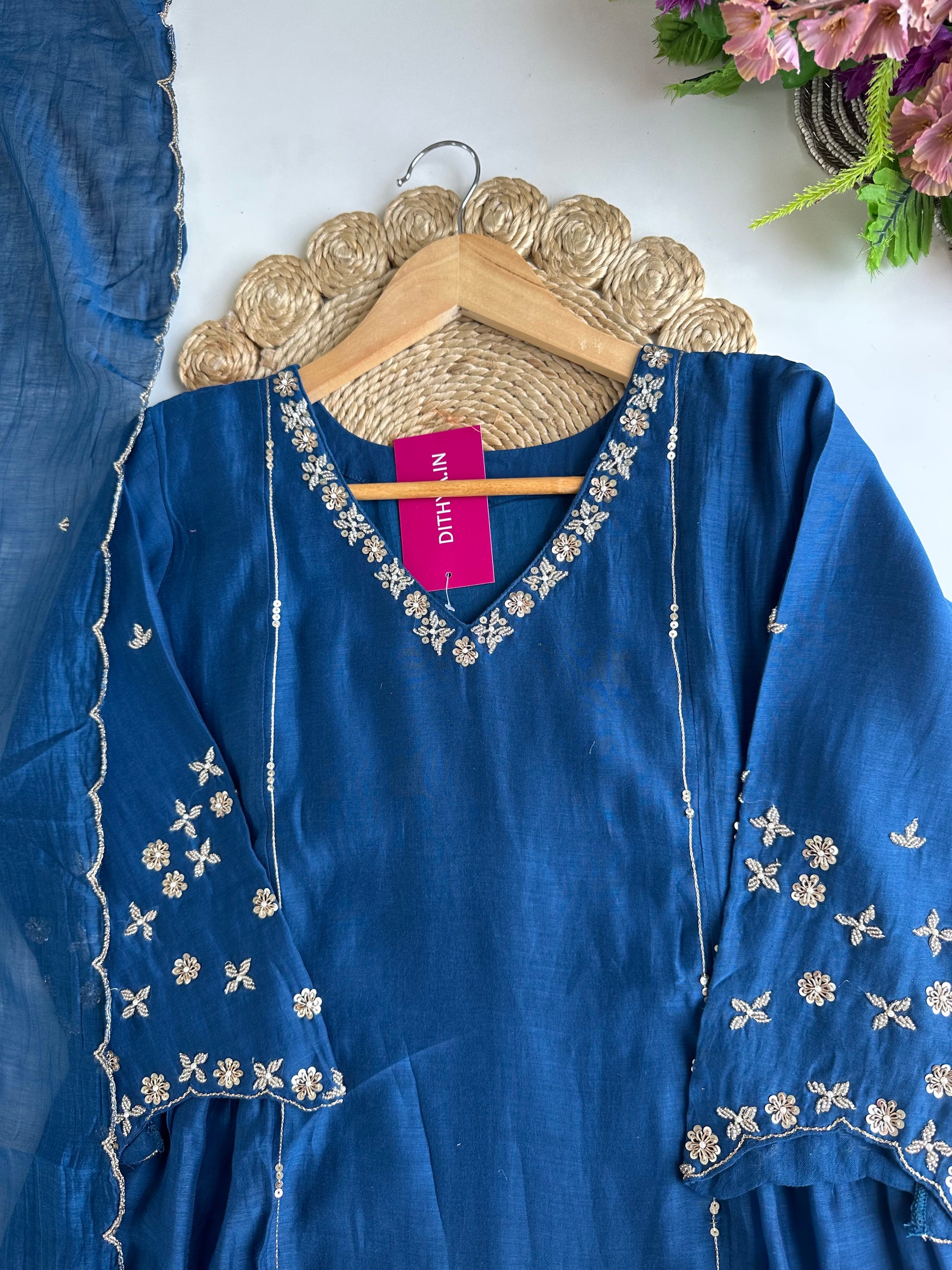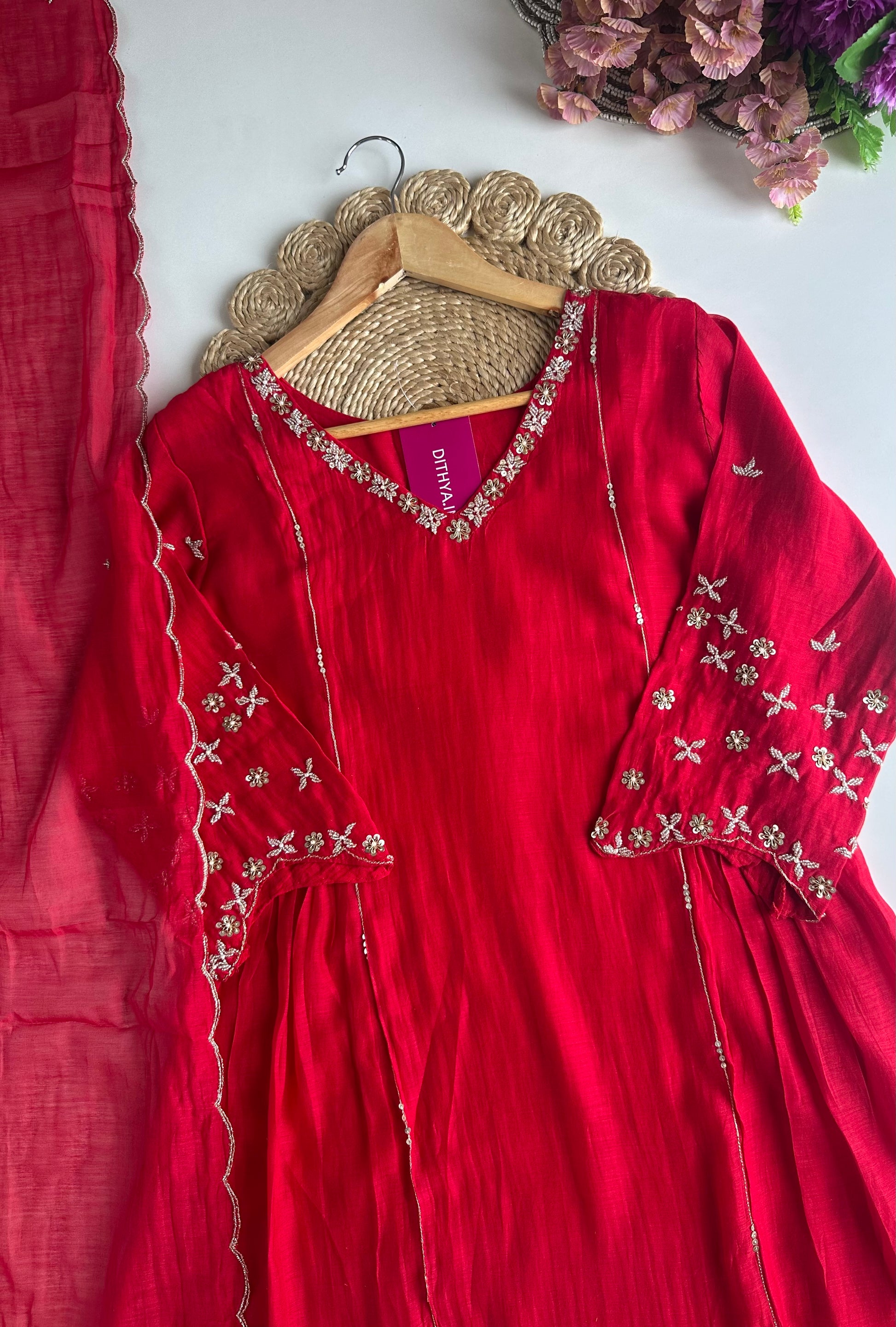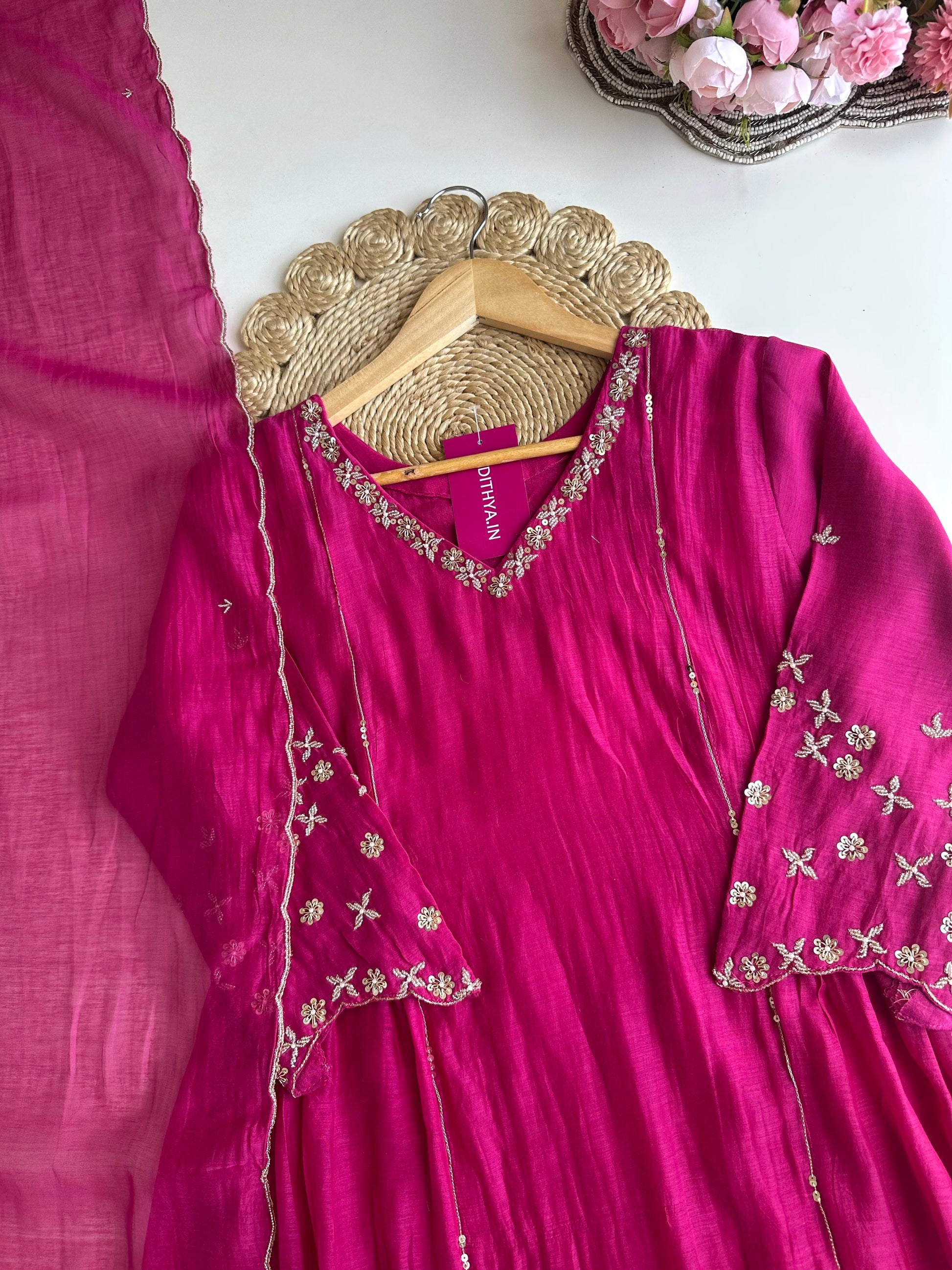 K309 - Mul Chanderi handwork Anarkali with pants and dupatta in 3 colours