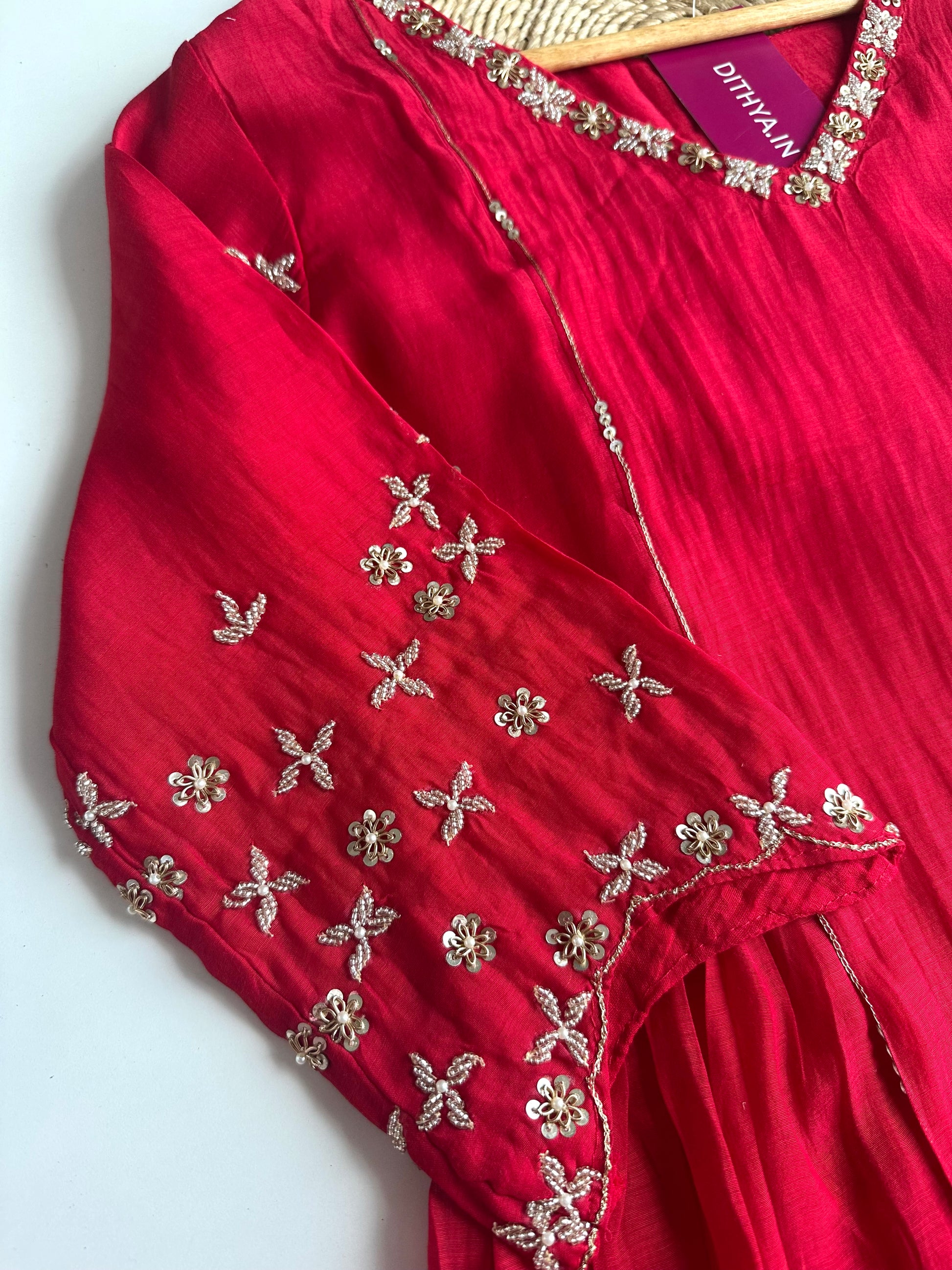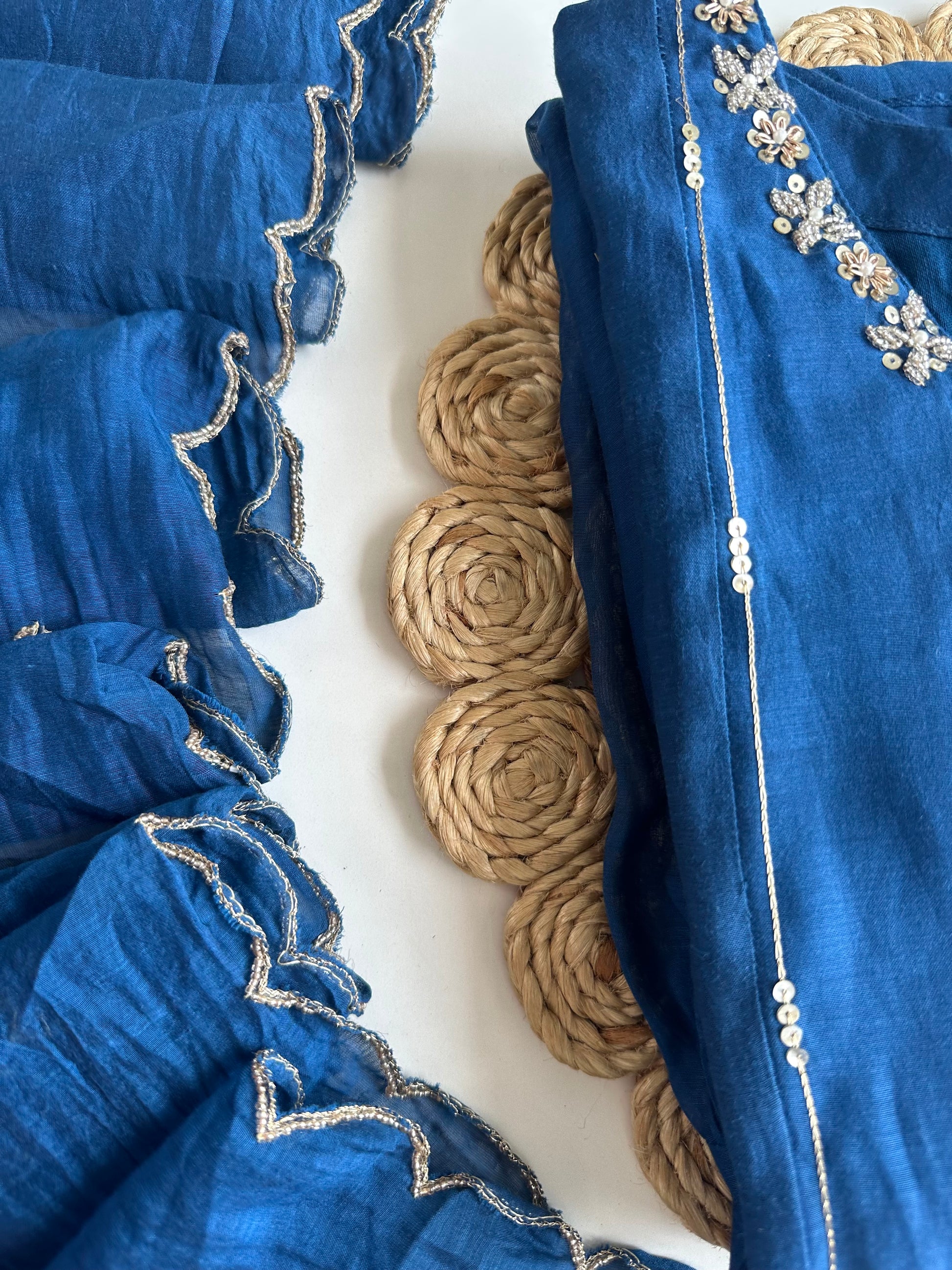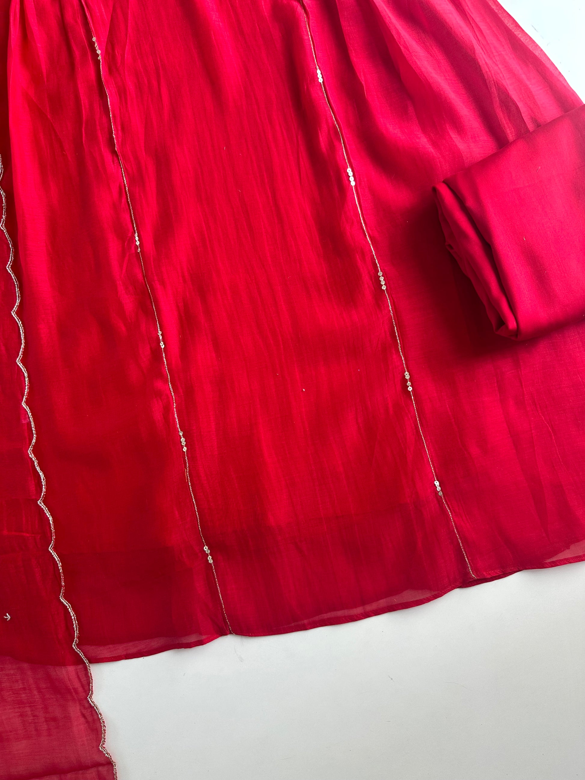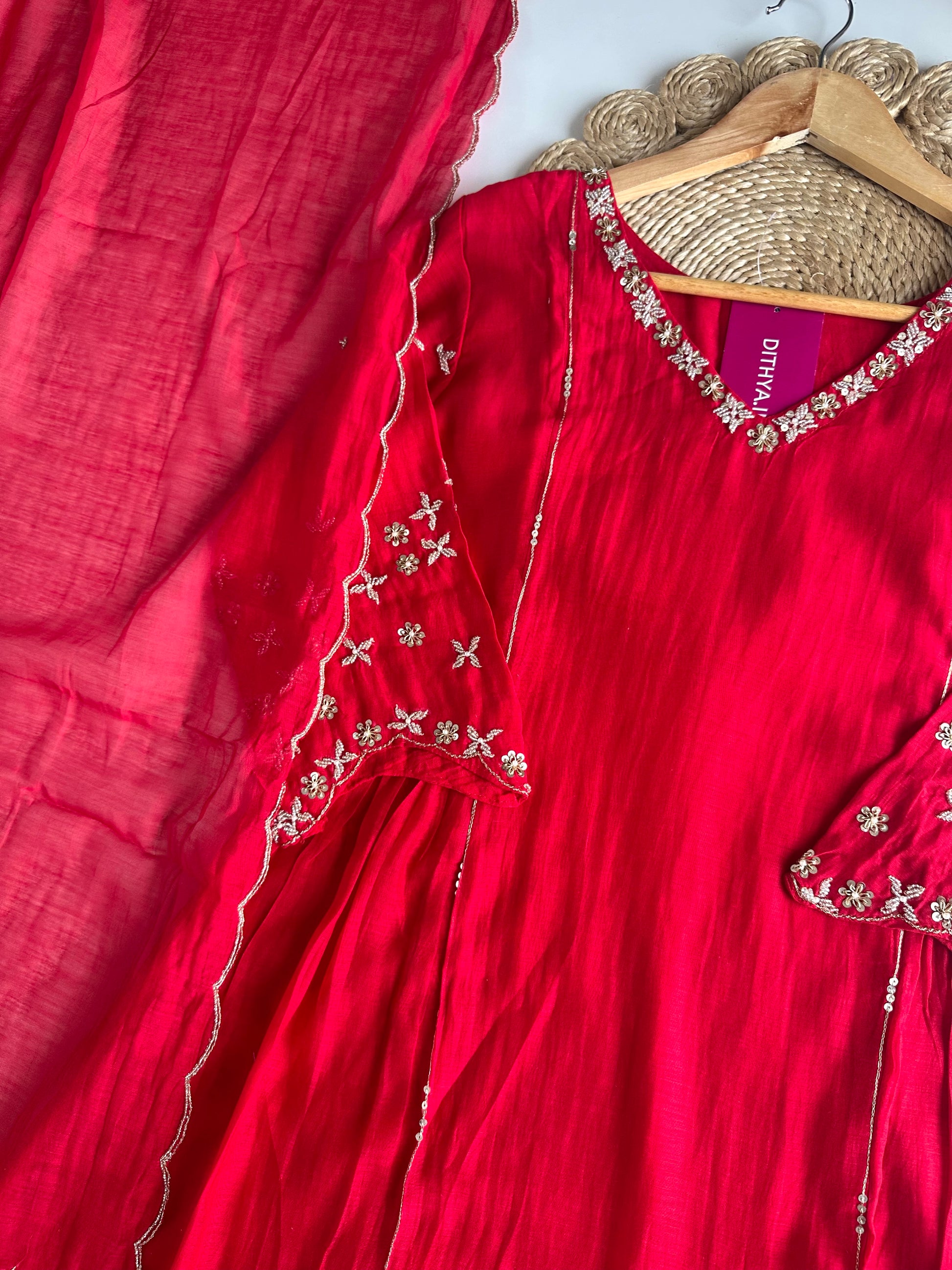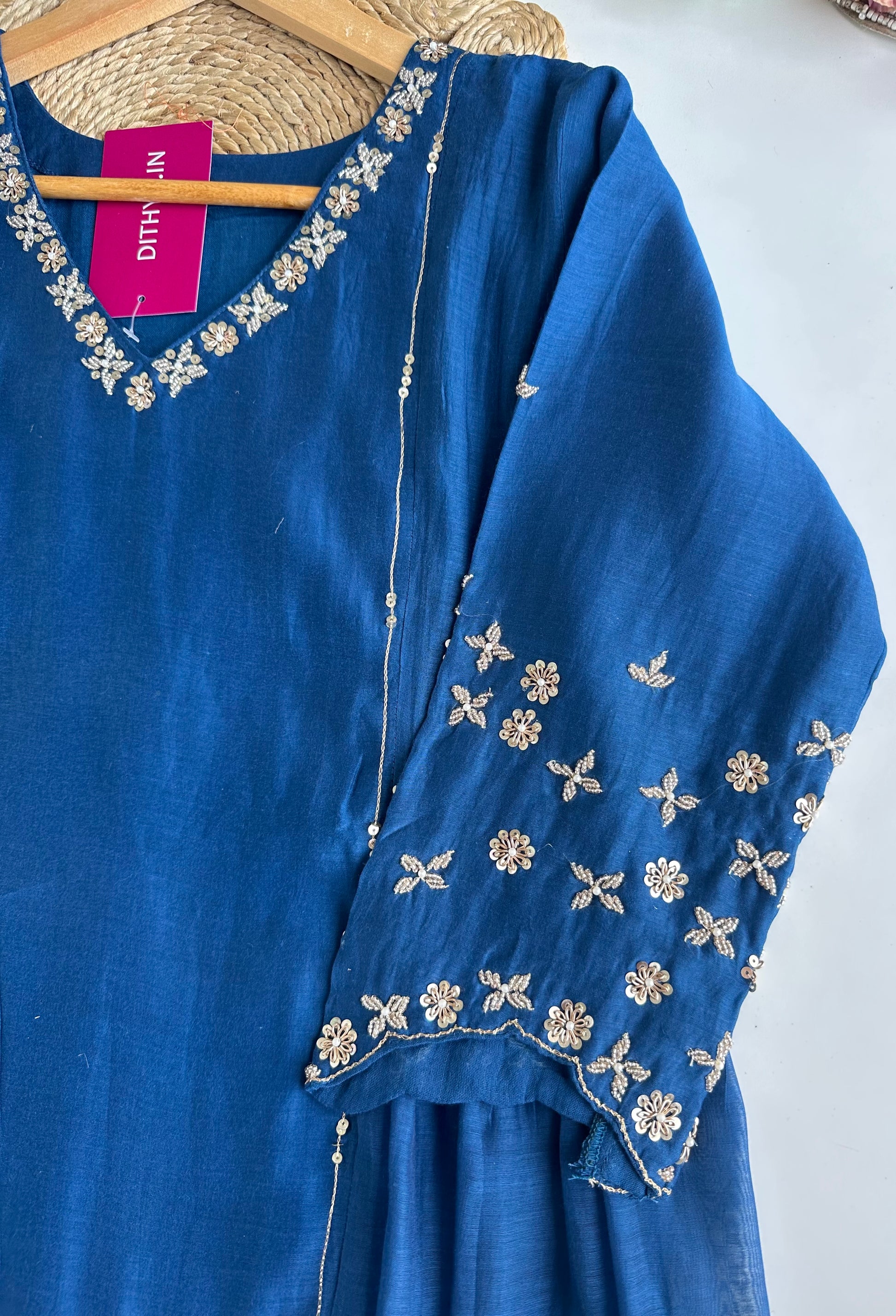 K309 - Mul Chanderi handwork Anarkali with pants and dupatta in 3 colours