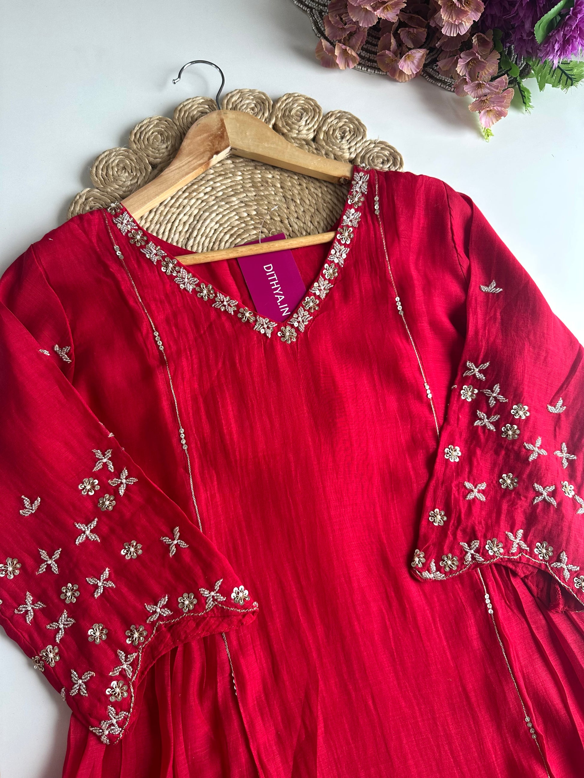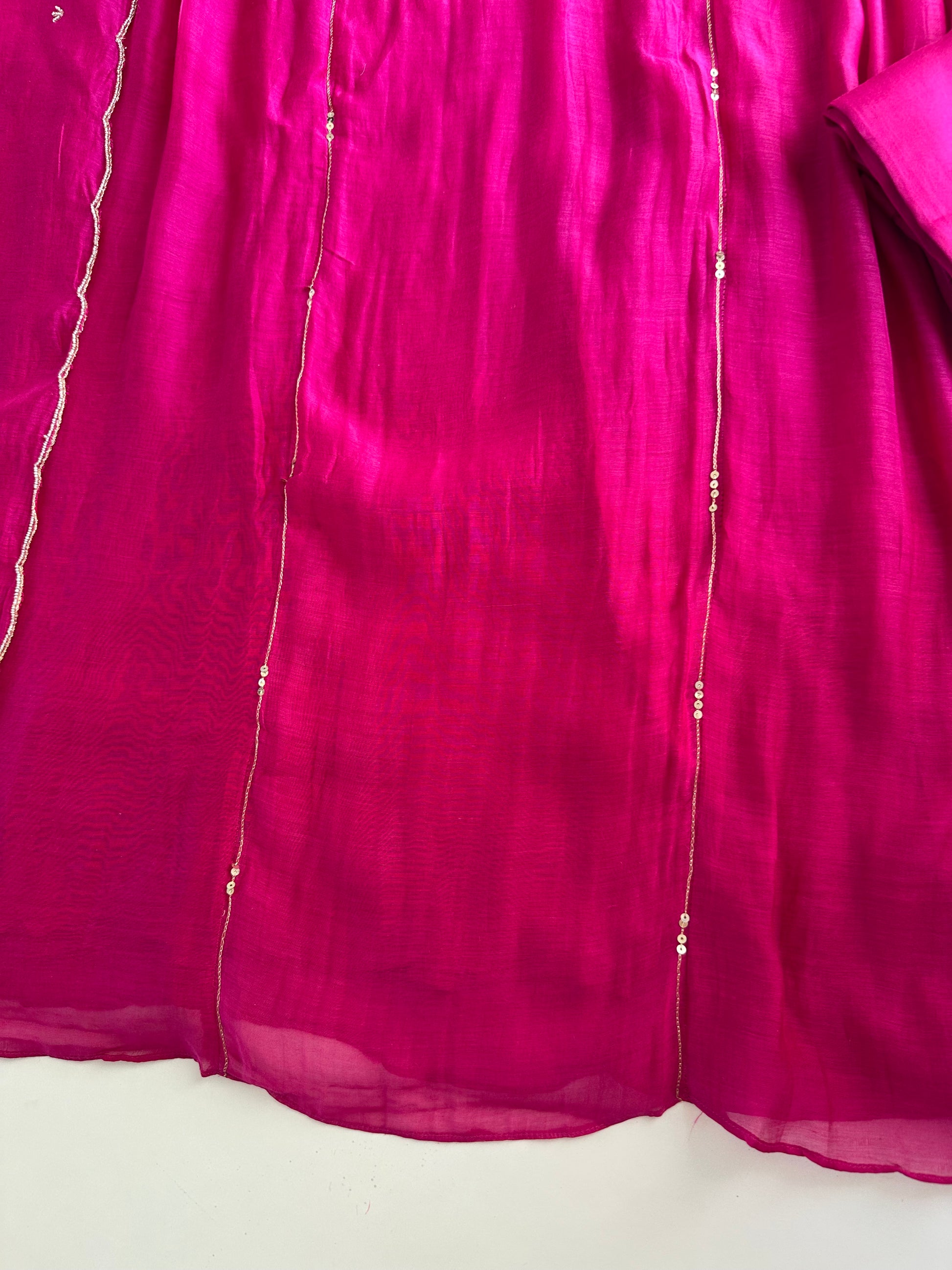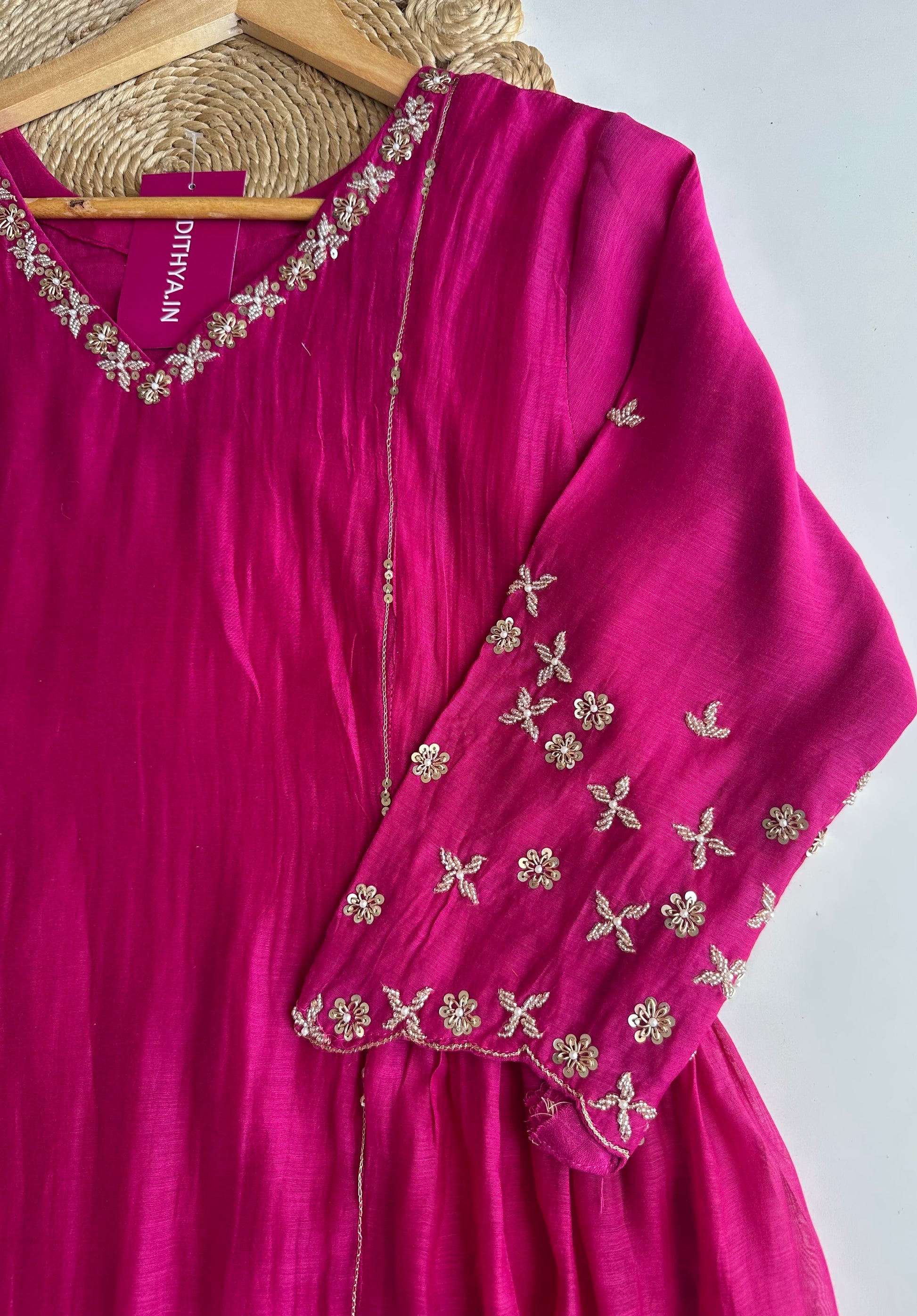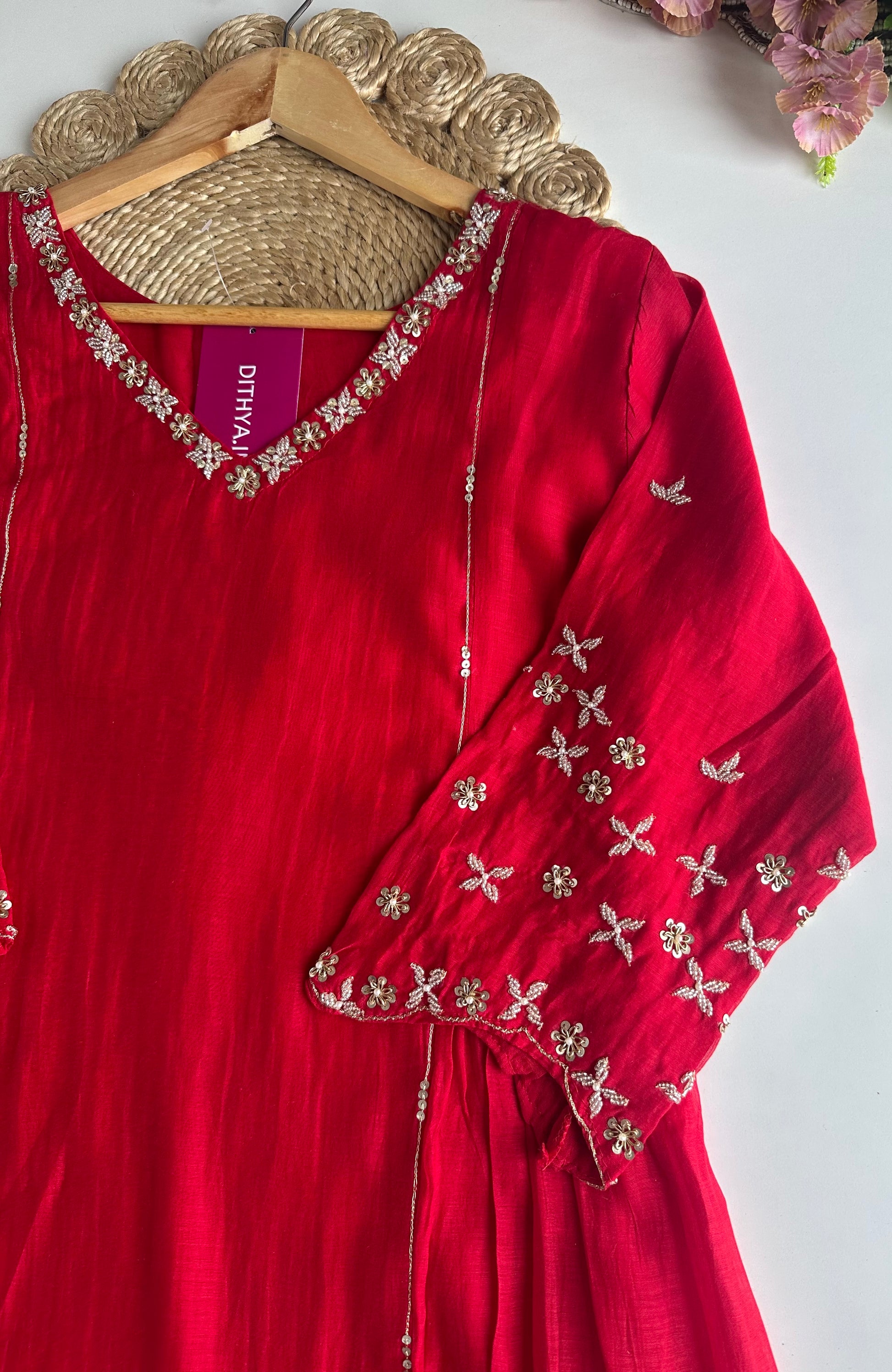 K309 - Mul Chanderi handwork Anarkali with pants and dupatta in 3 colours