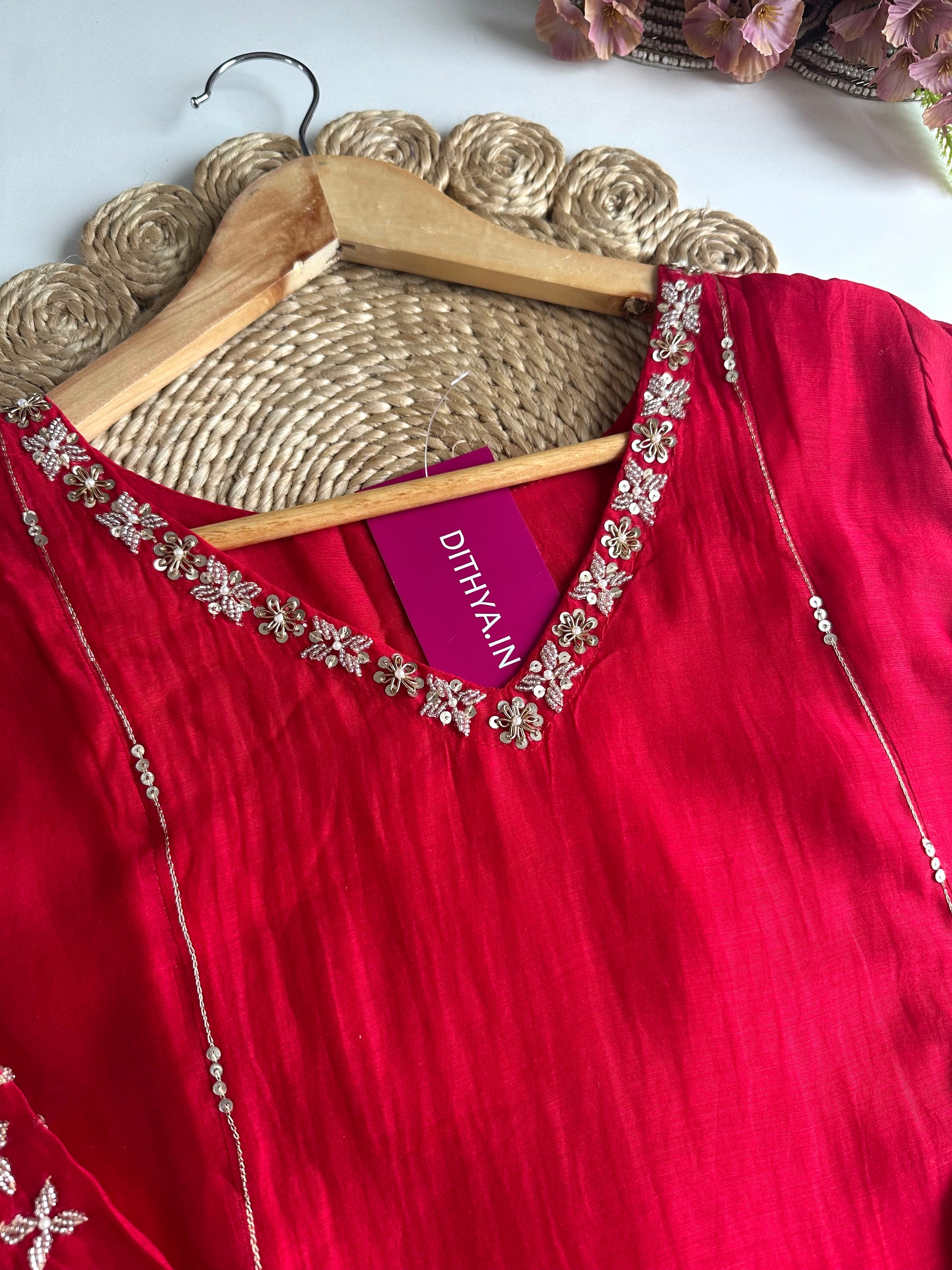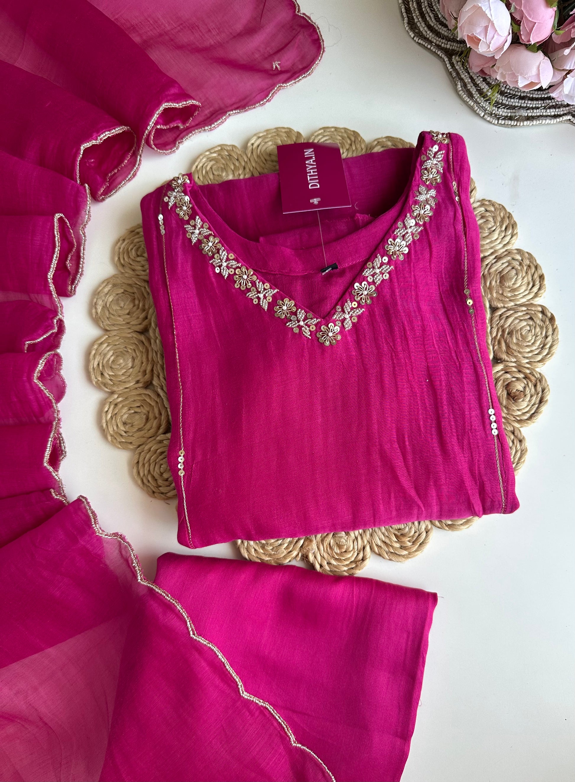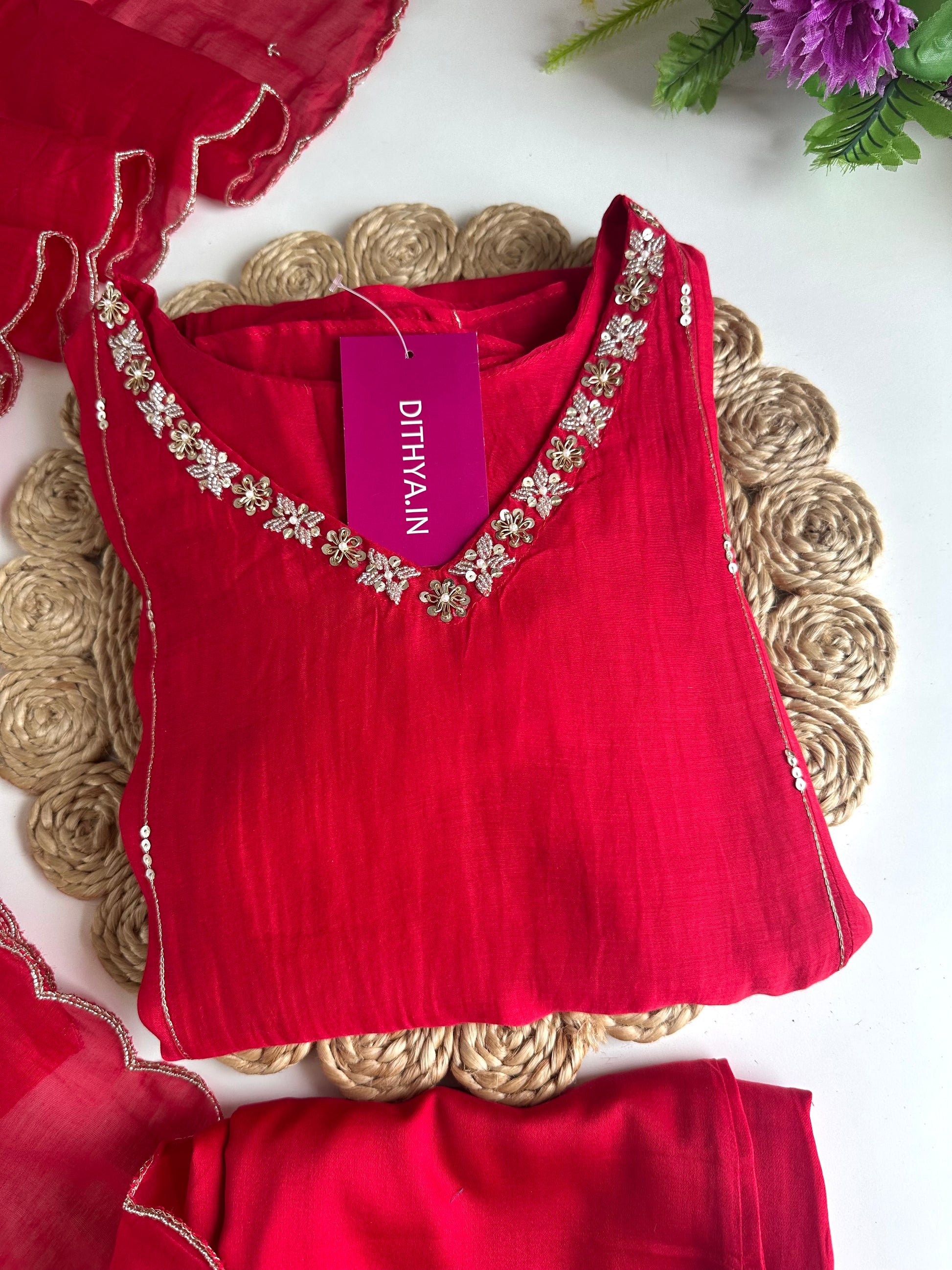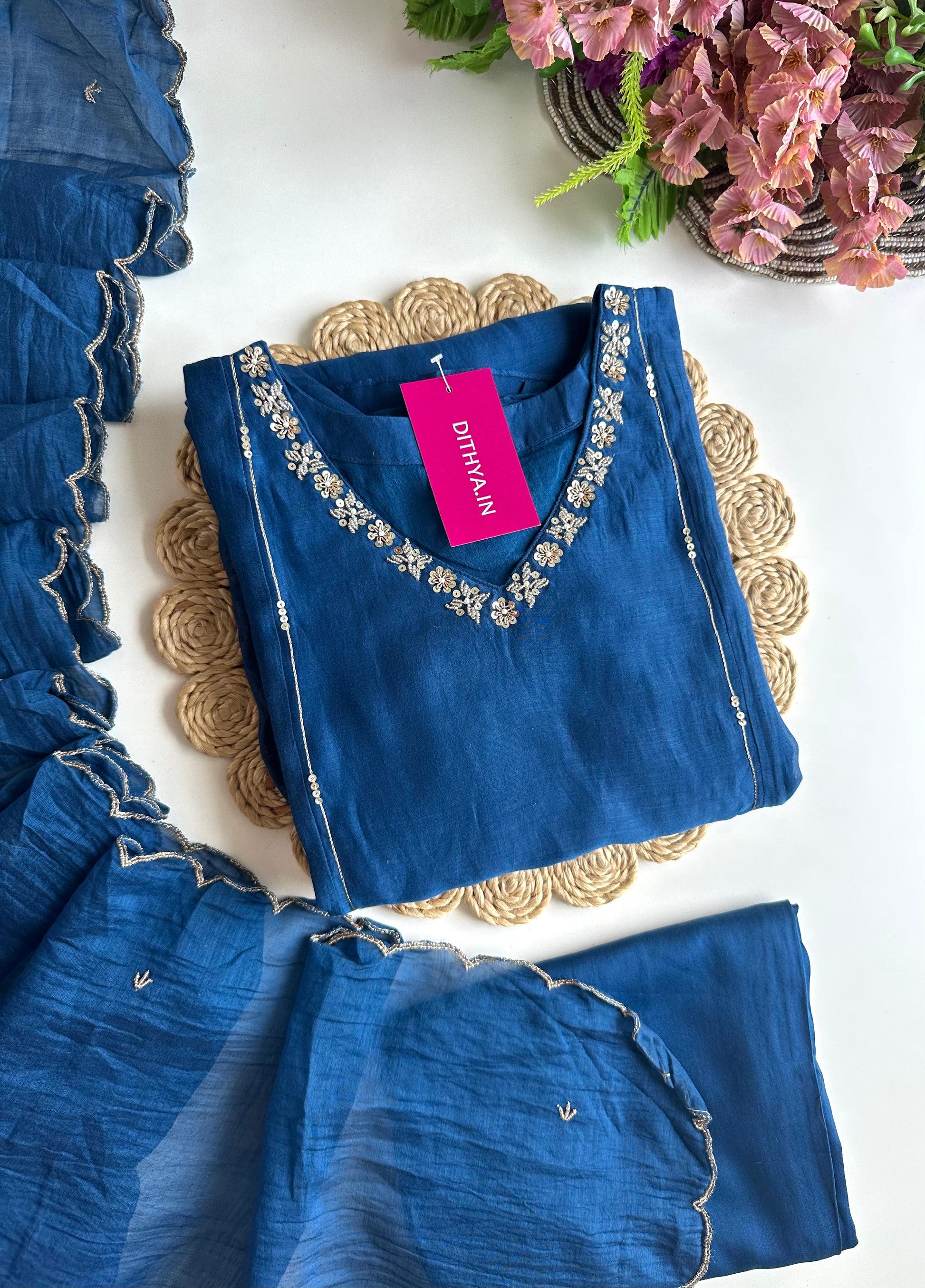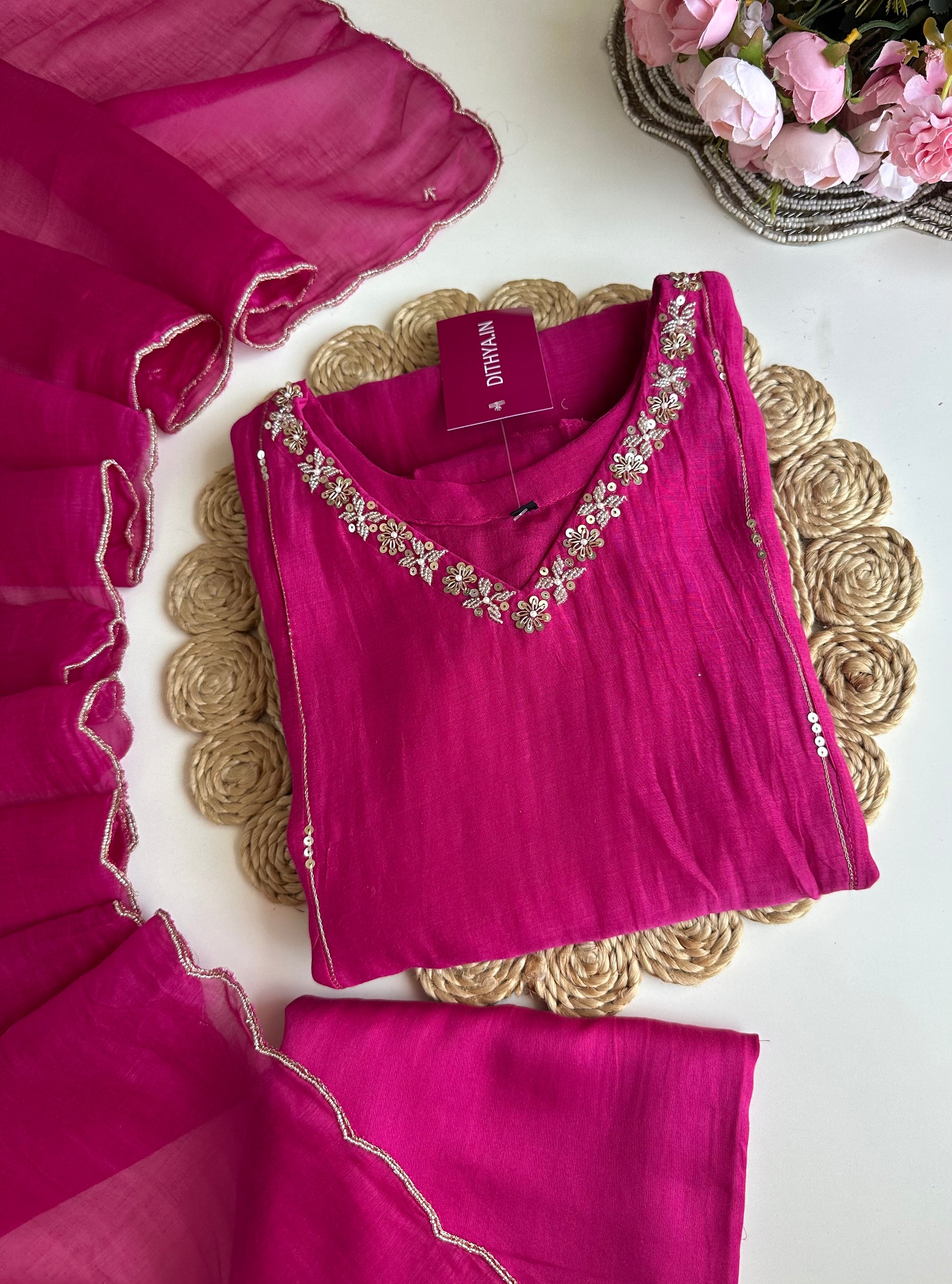 K309 - Mul Chanderi handwork Anarkali with pants and dupatta in 3 colours