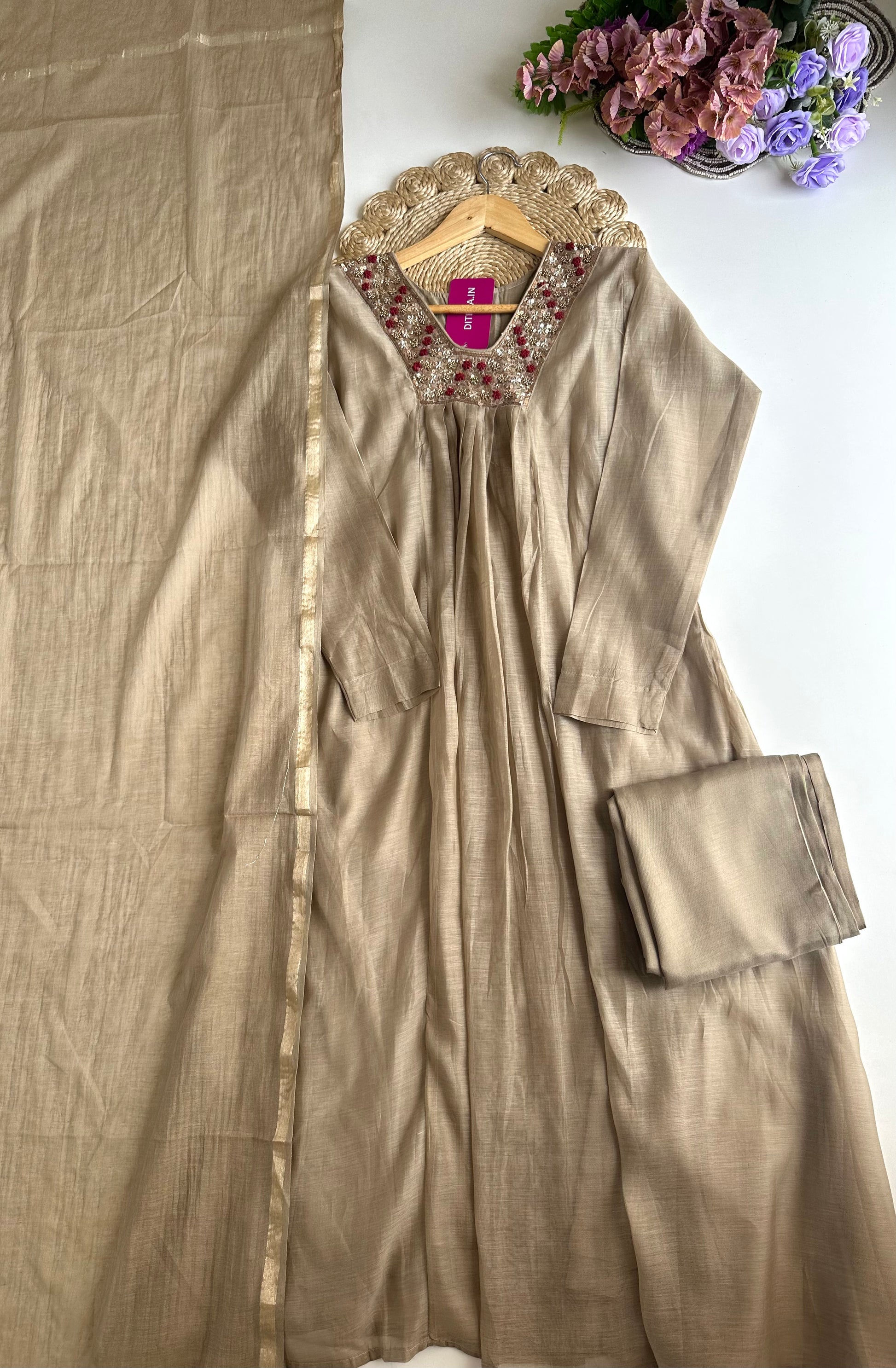 K347 - Mul Chanderi handwork Anarkali with pants and dupatta
