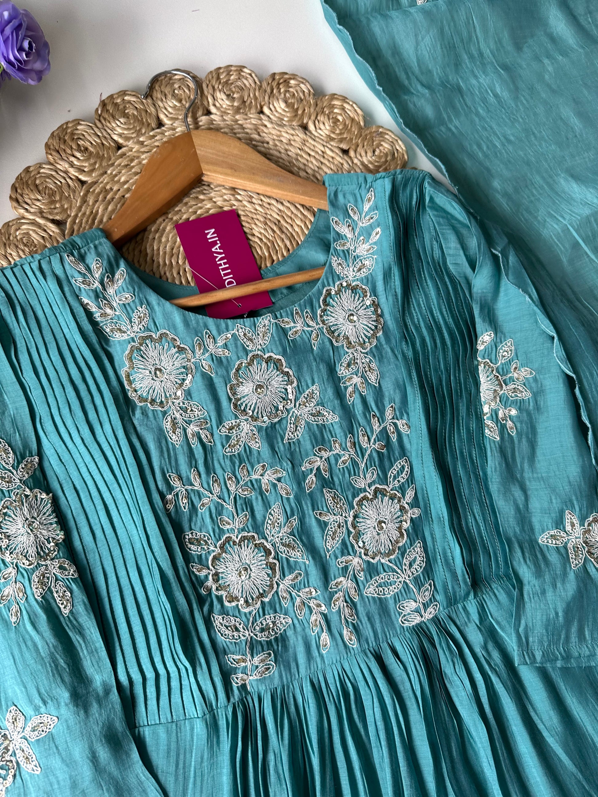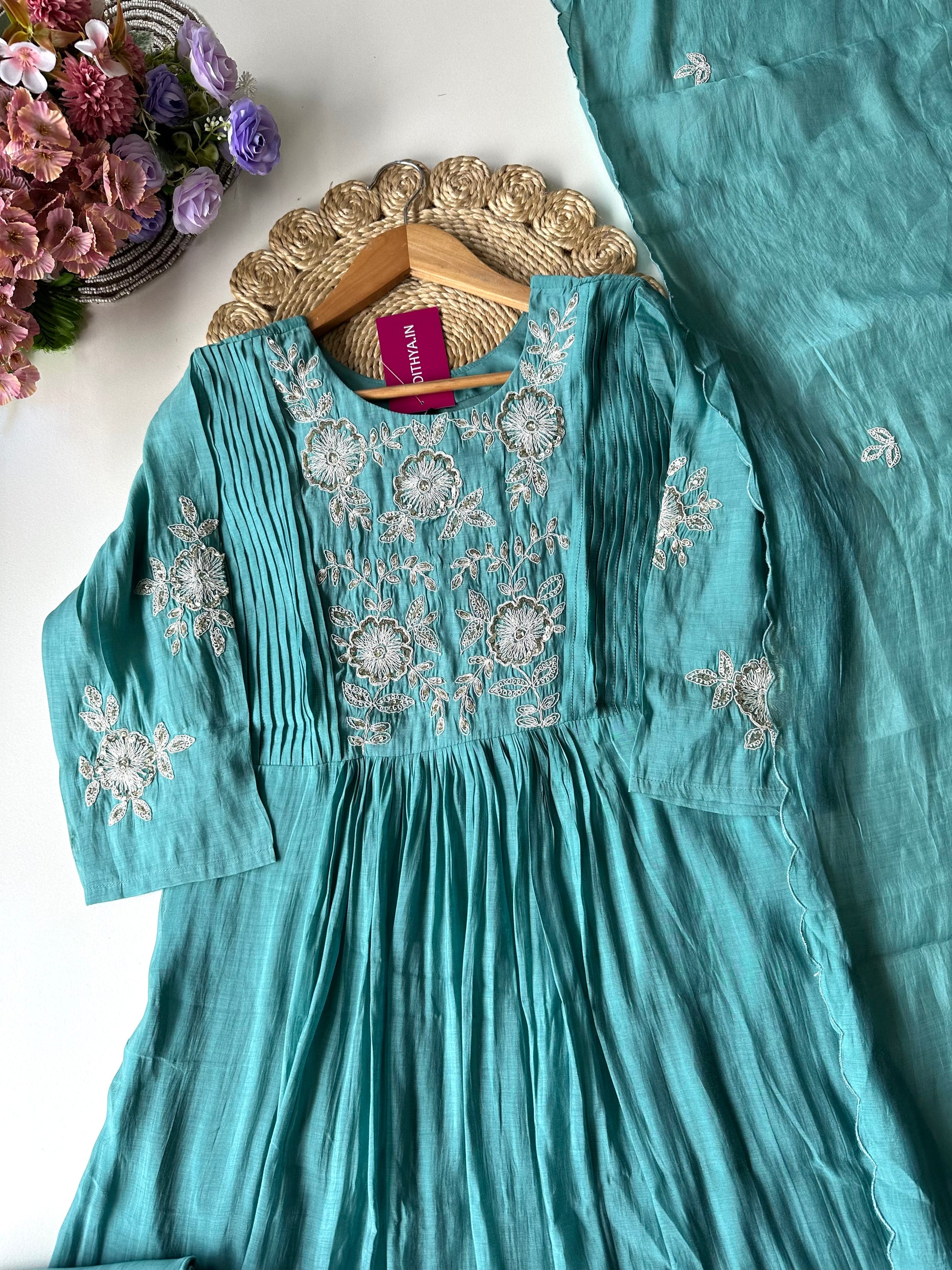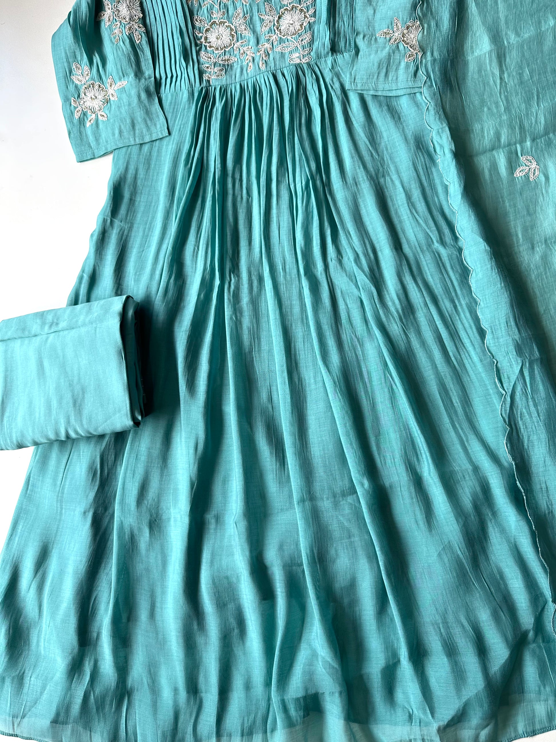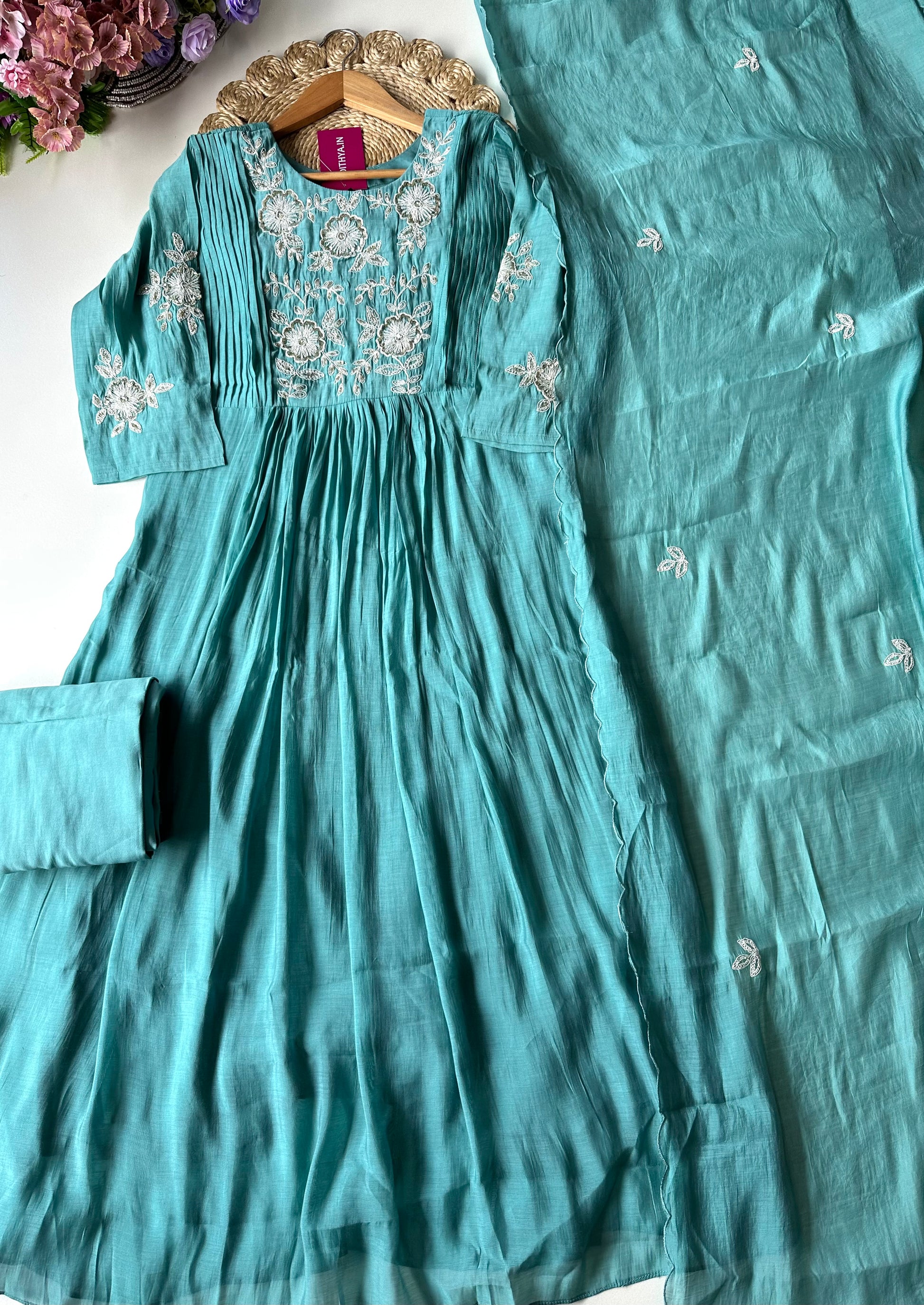K350 - Mul Chanderi handwork Anarkali with pants and dupatta