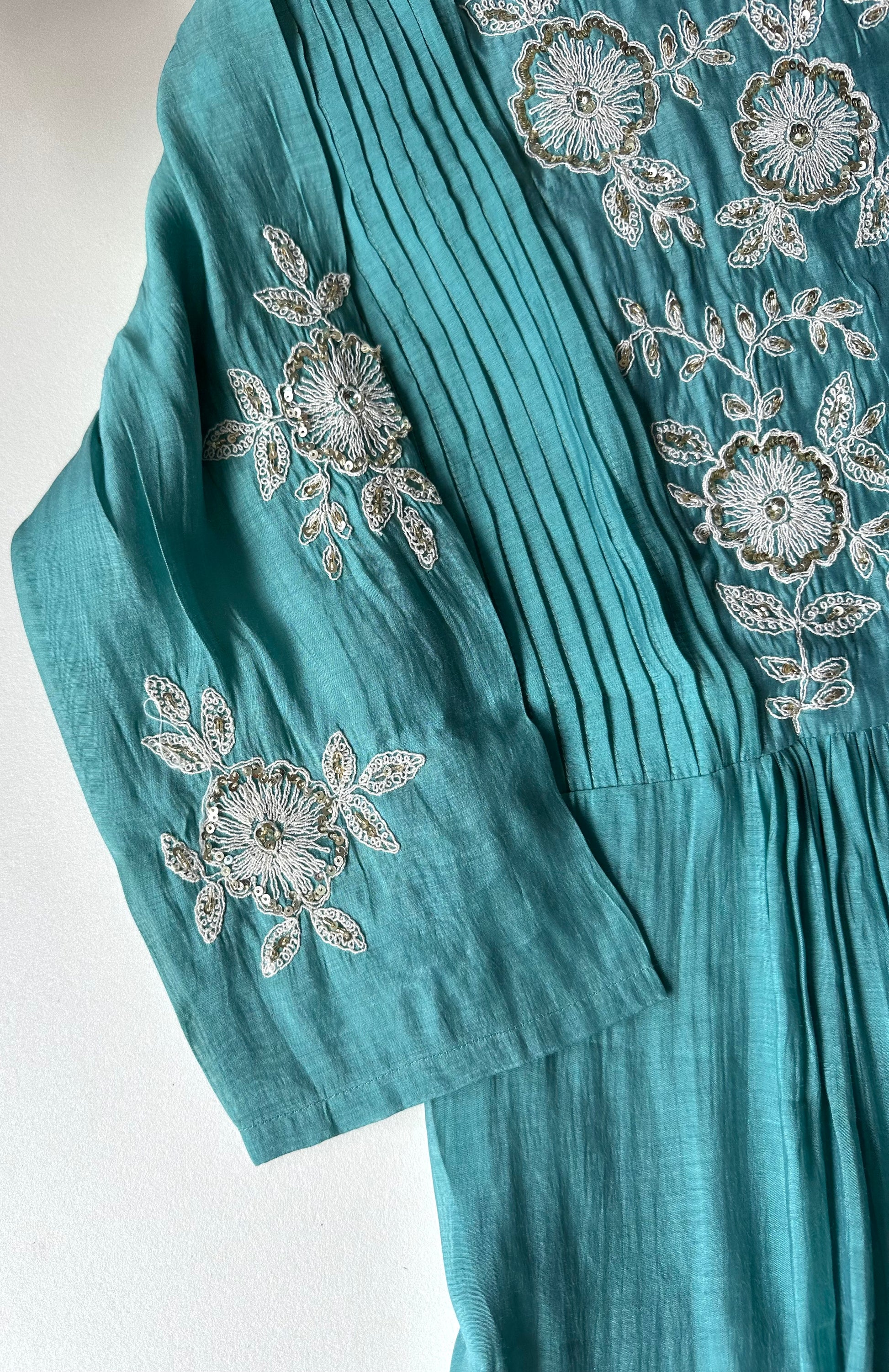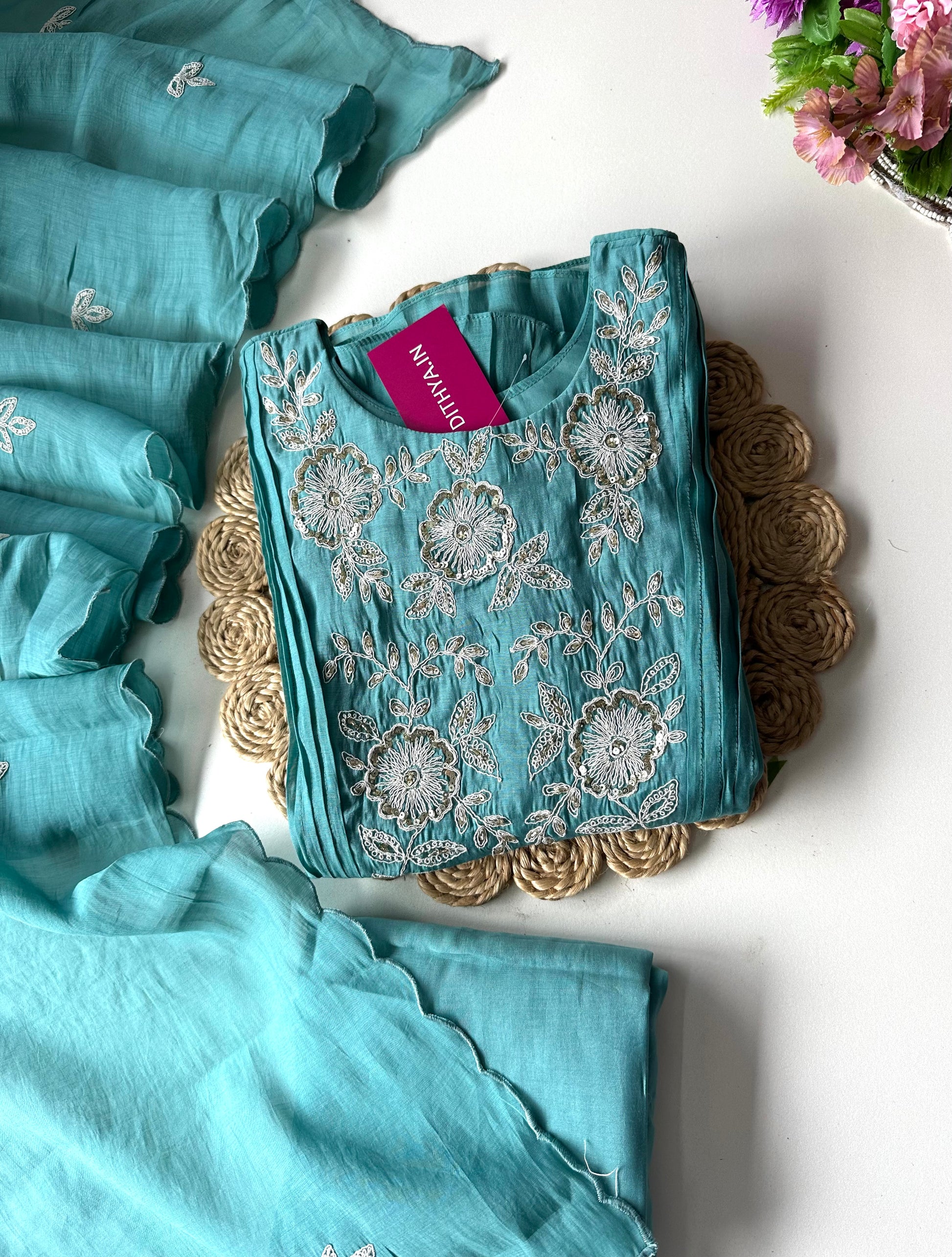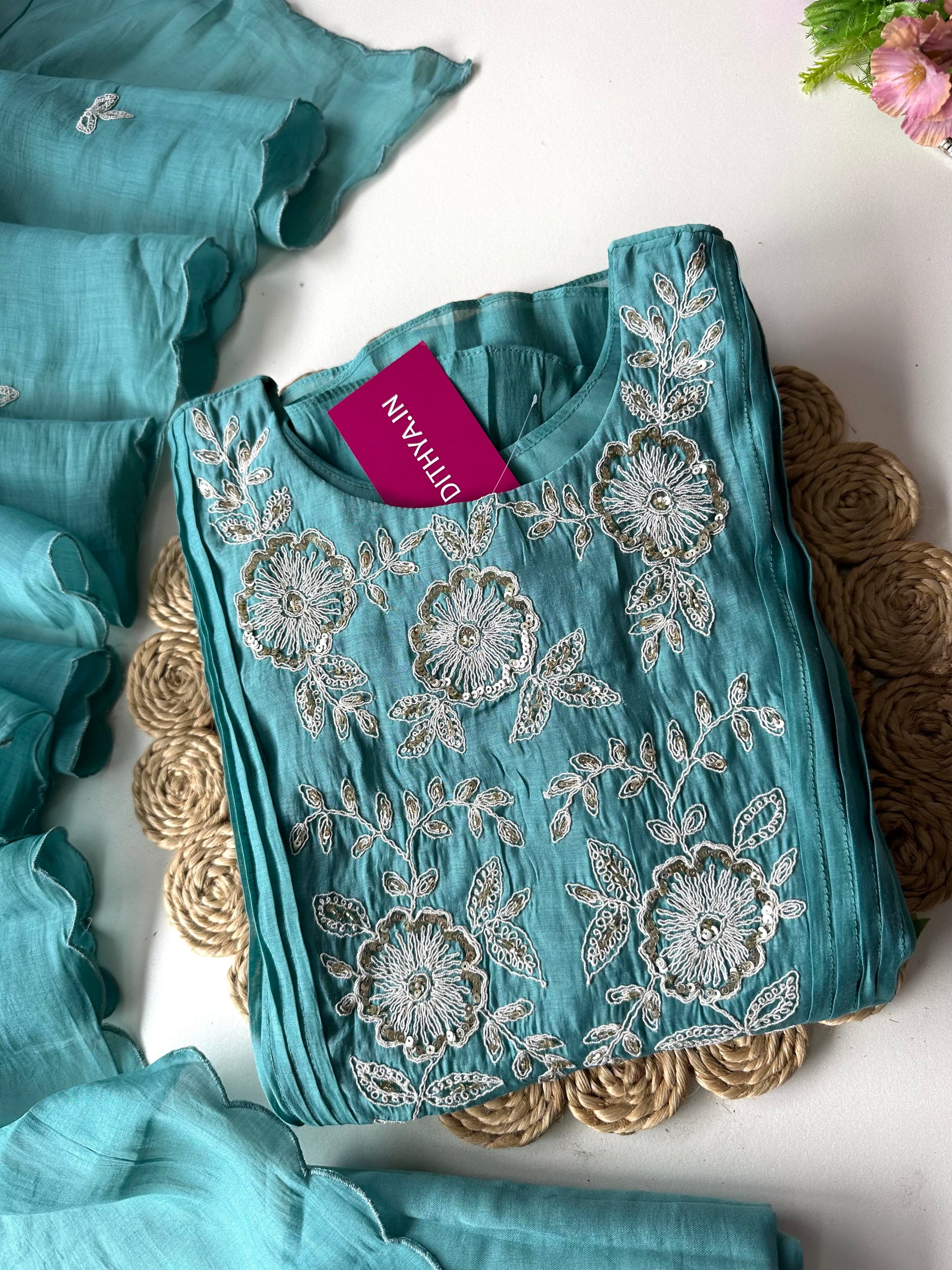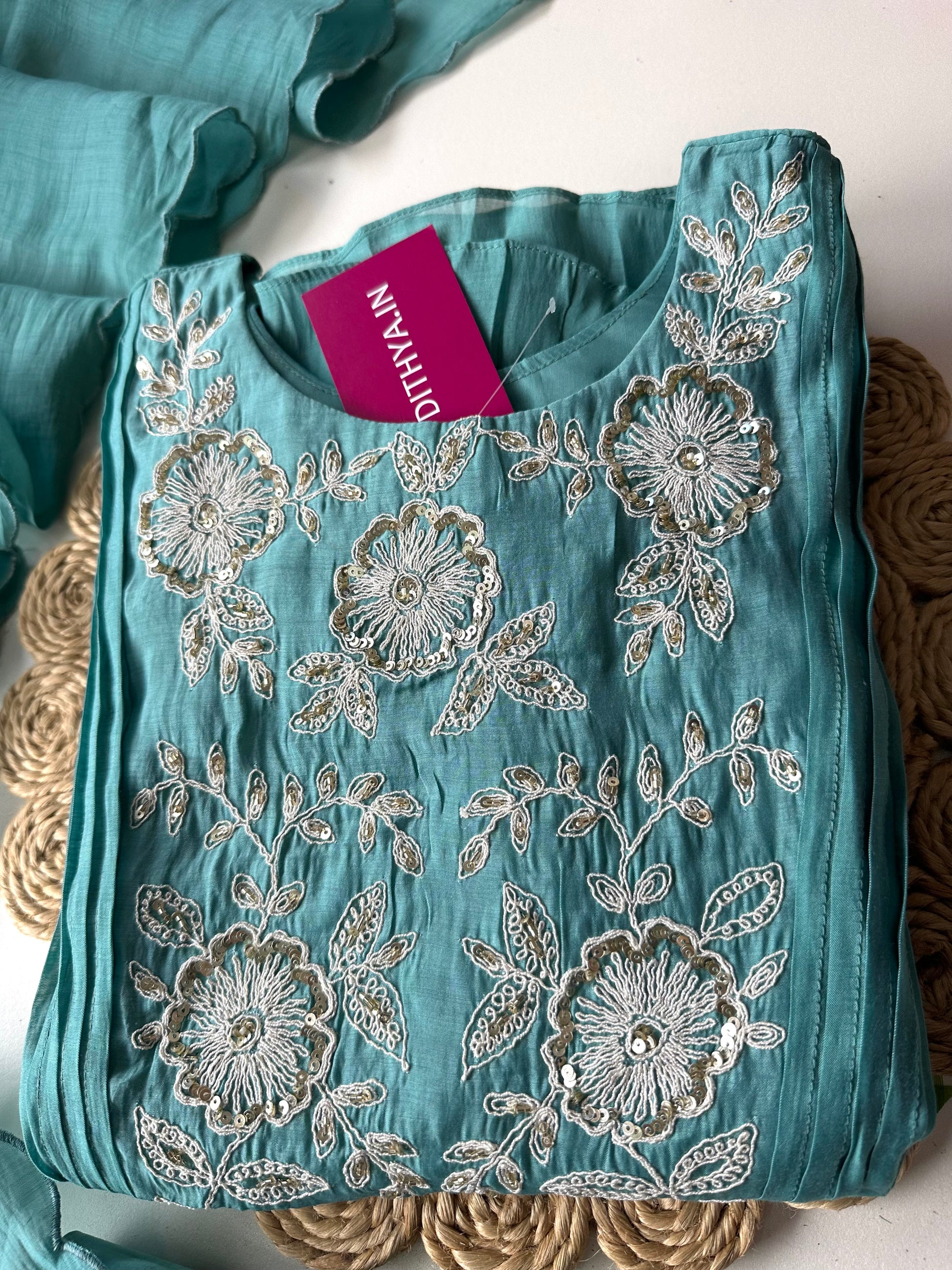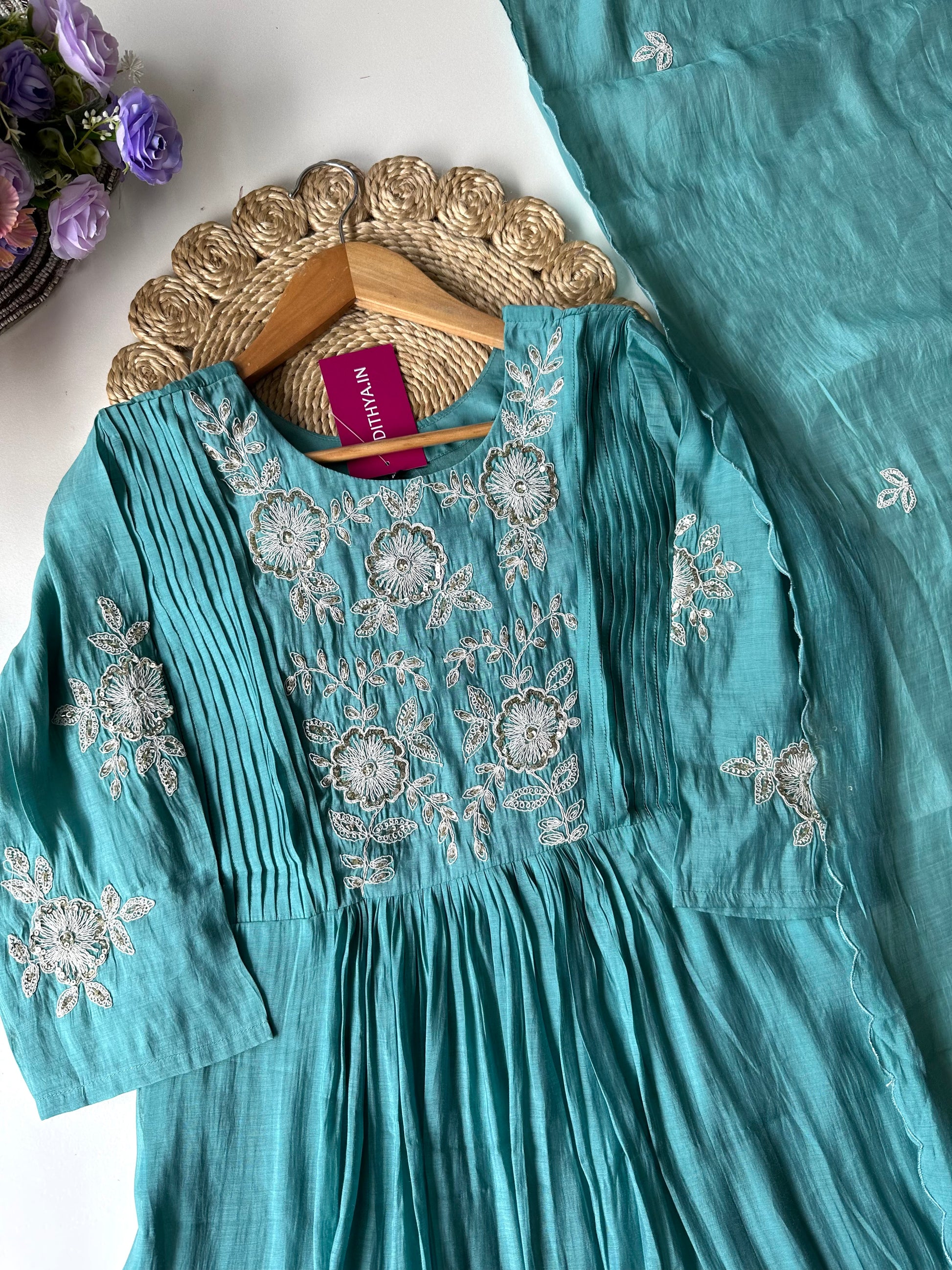 K350 - Mul Chanderi handwork Anarkali with pants and dupatta
