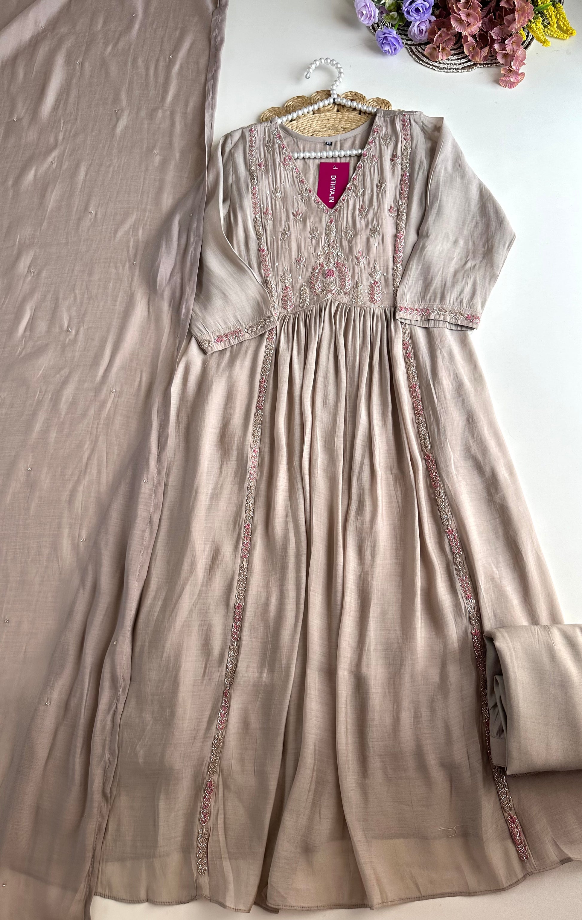 K283 - Mul Chanderi Handwork Anarkali with pants and dupatta