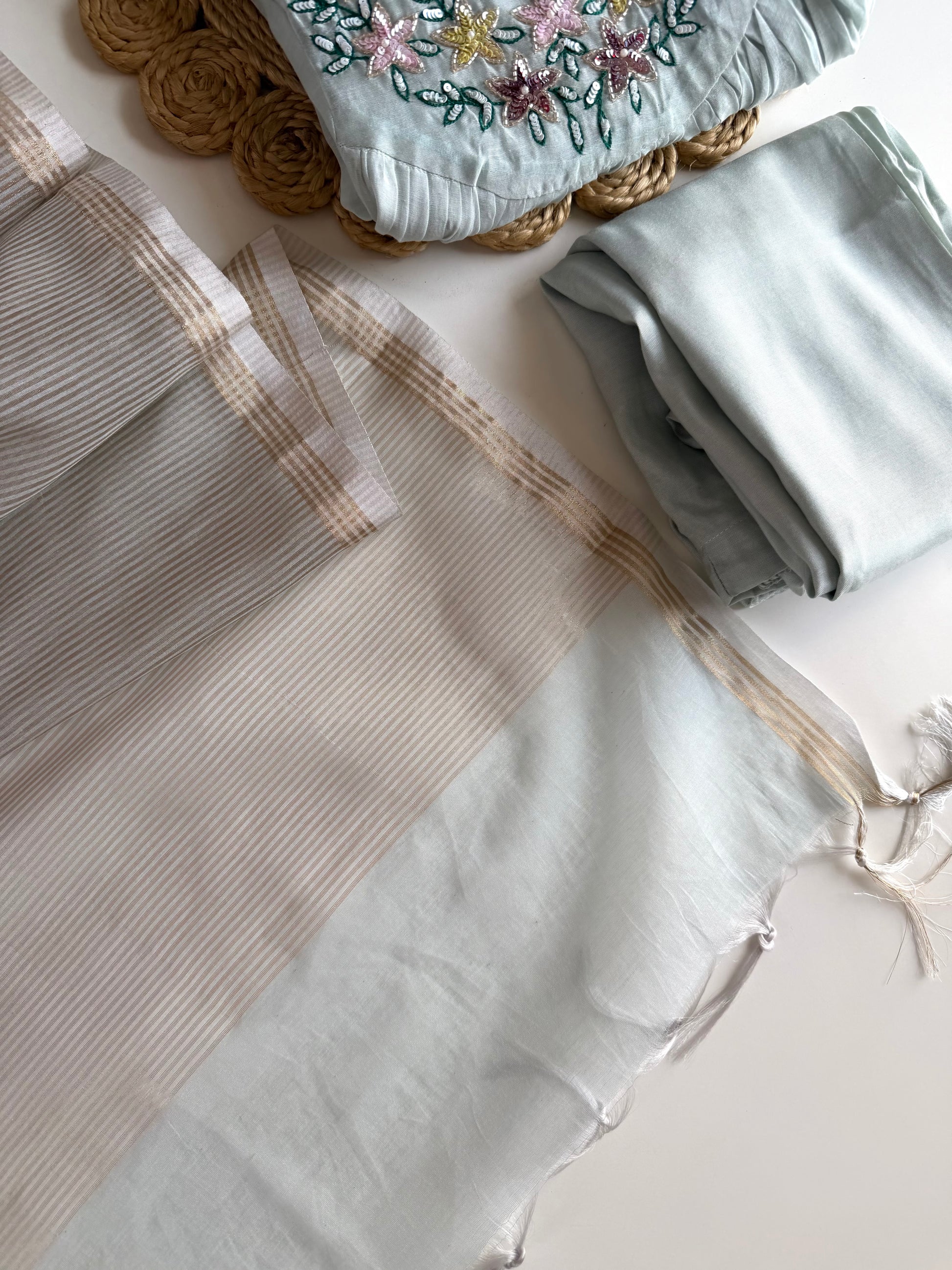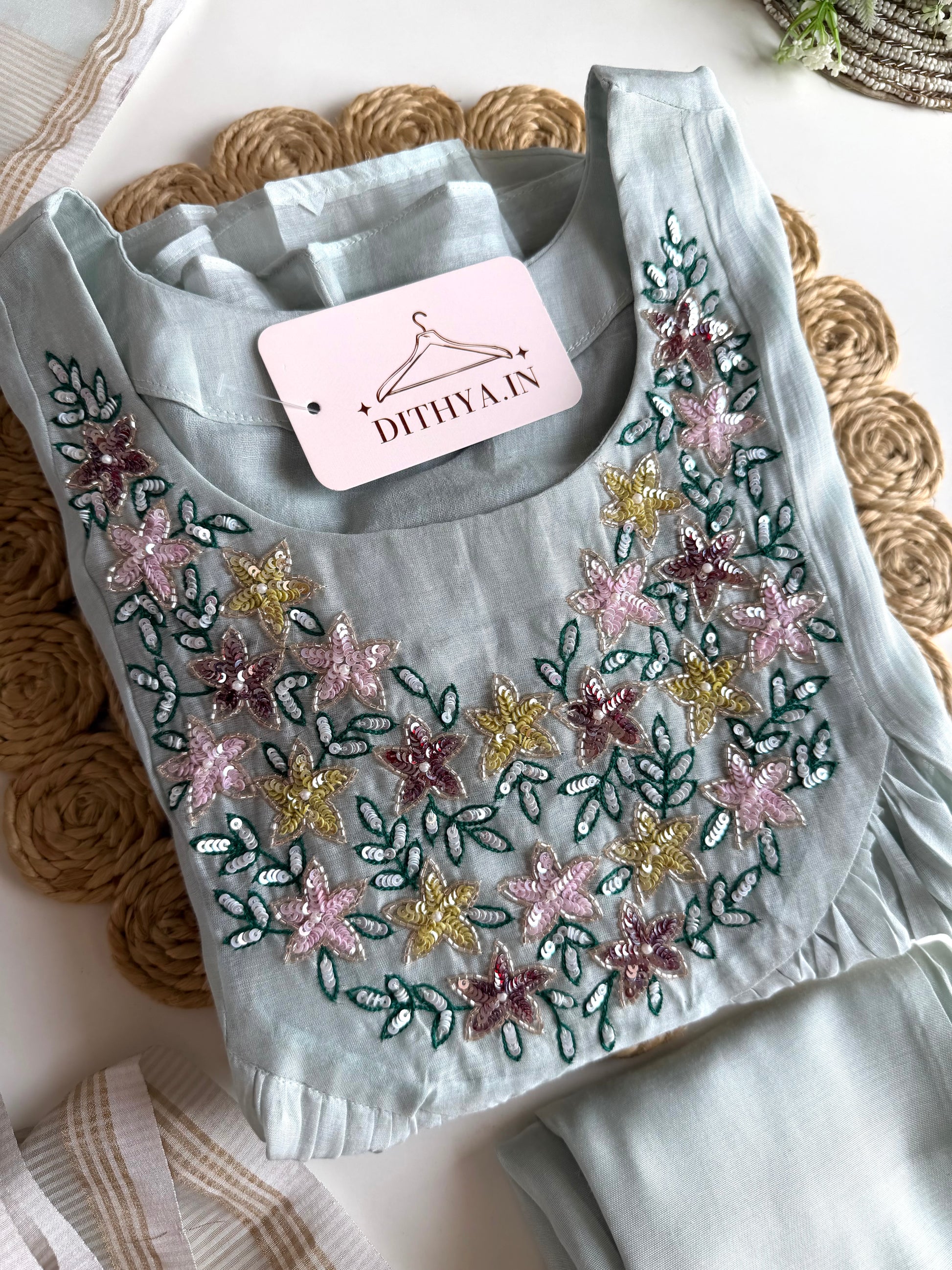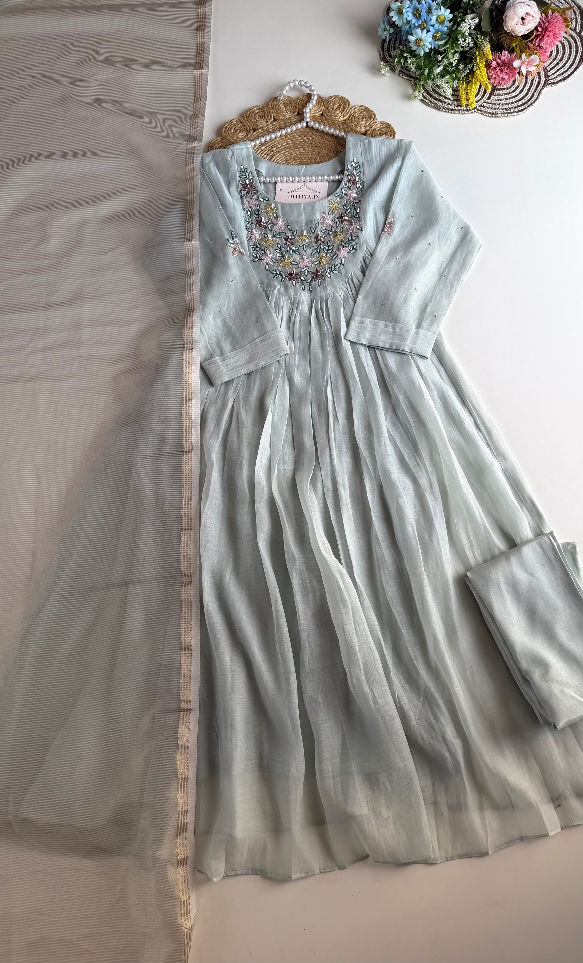 K485 - Mul chanderi handwork Anarkali with pants and dupatta