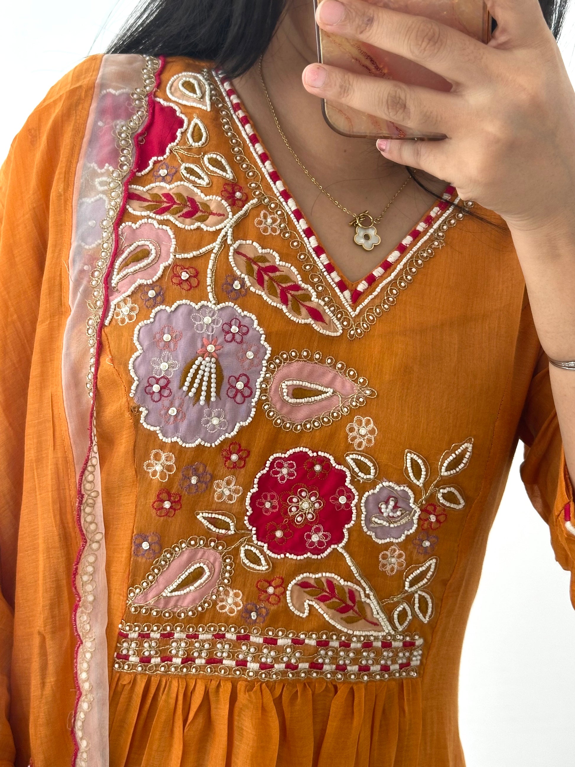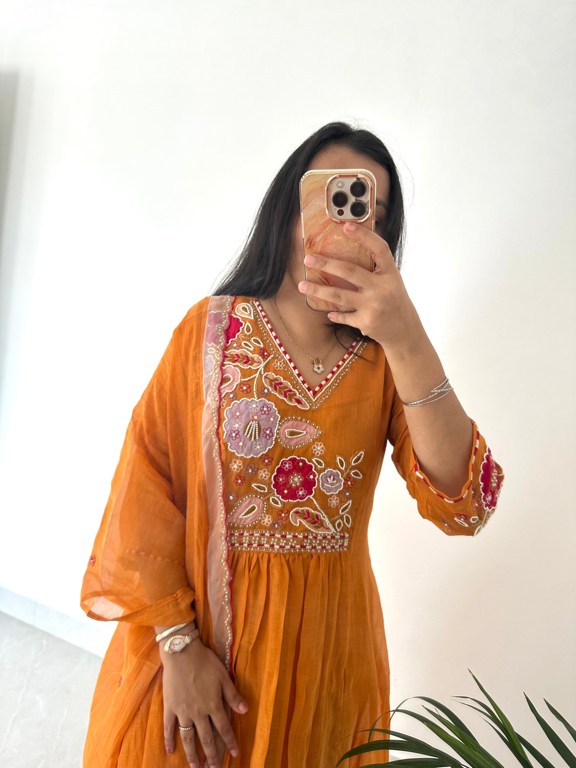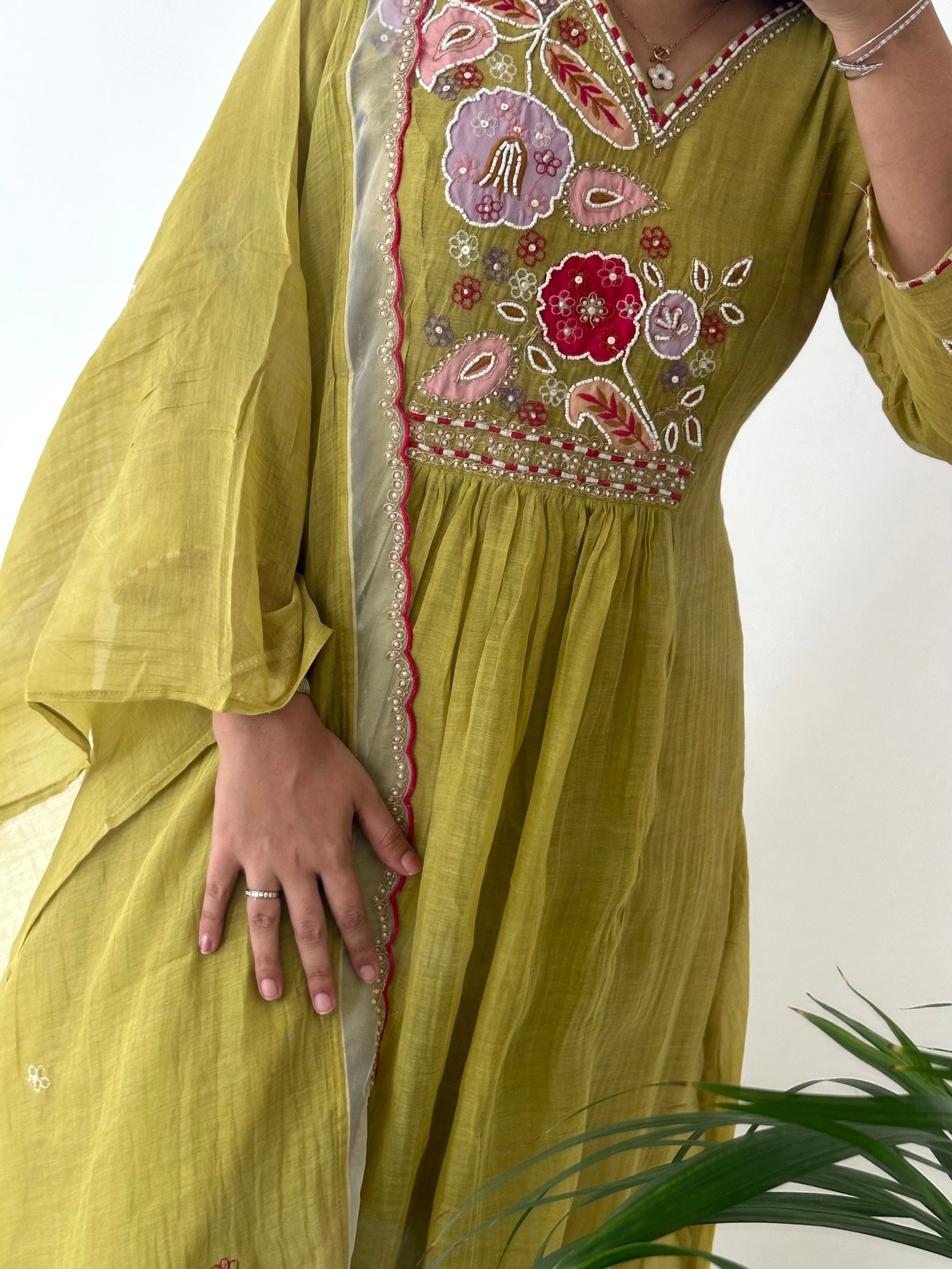K366 - Mul Chanderi handwork Anarkali with pants and dupatta