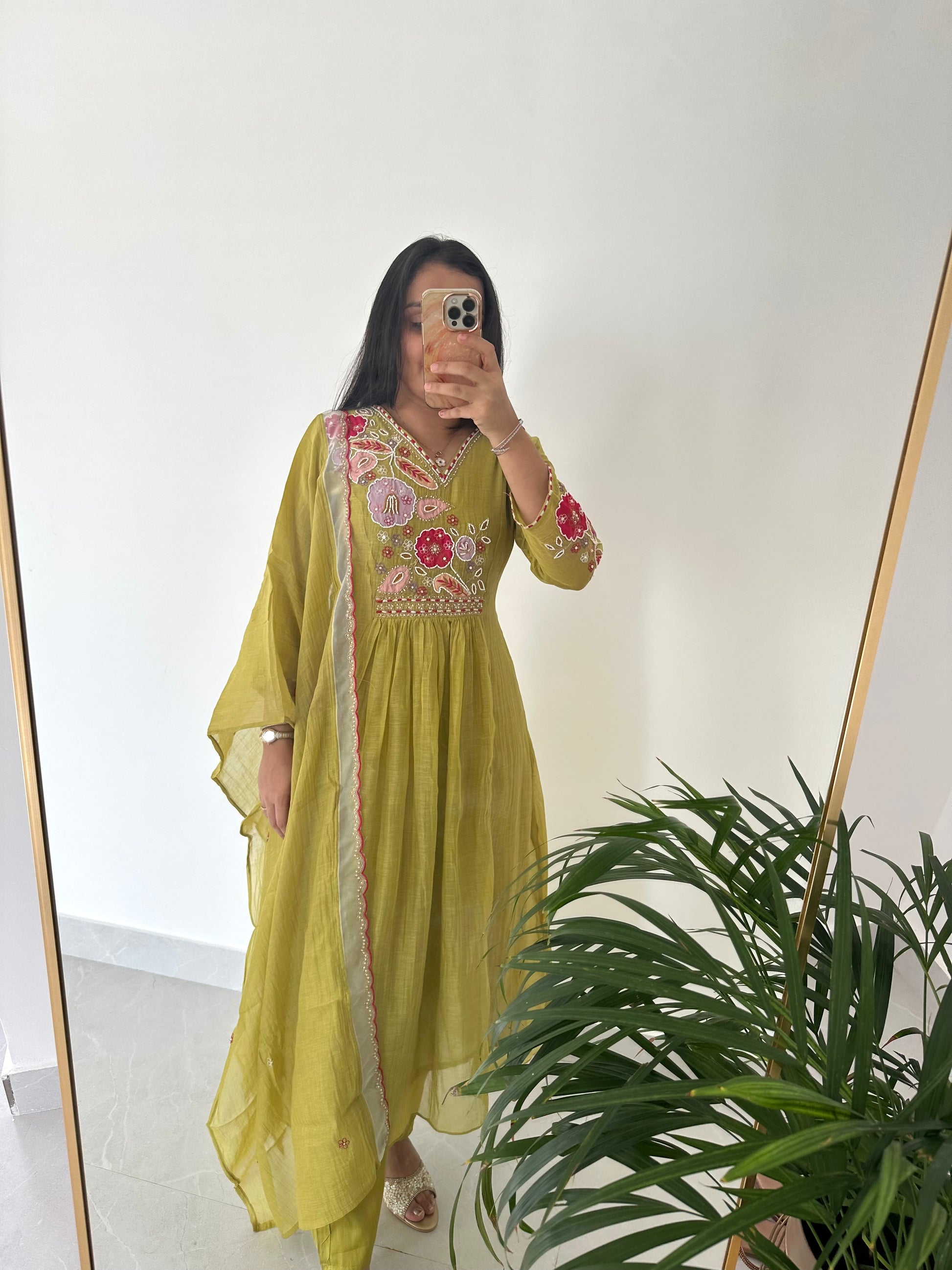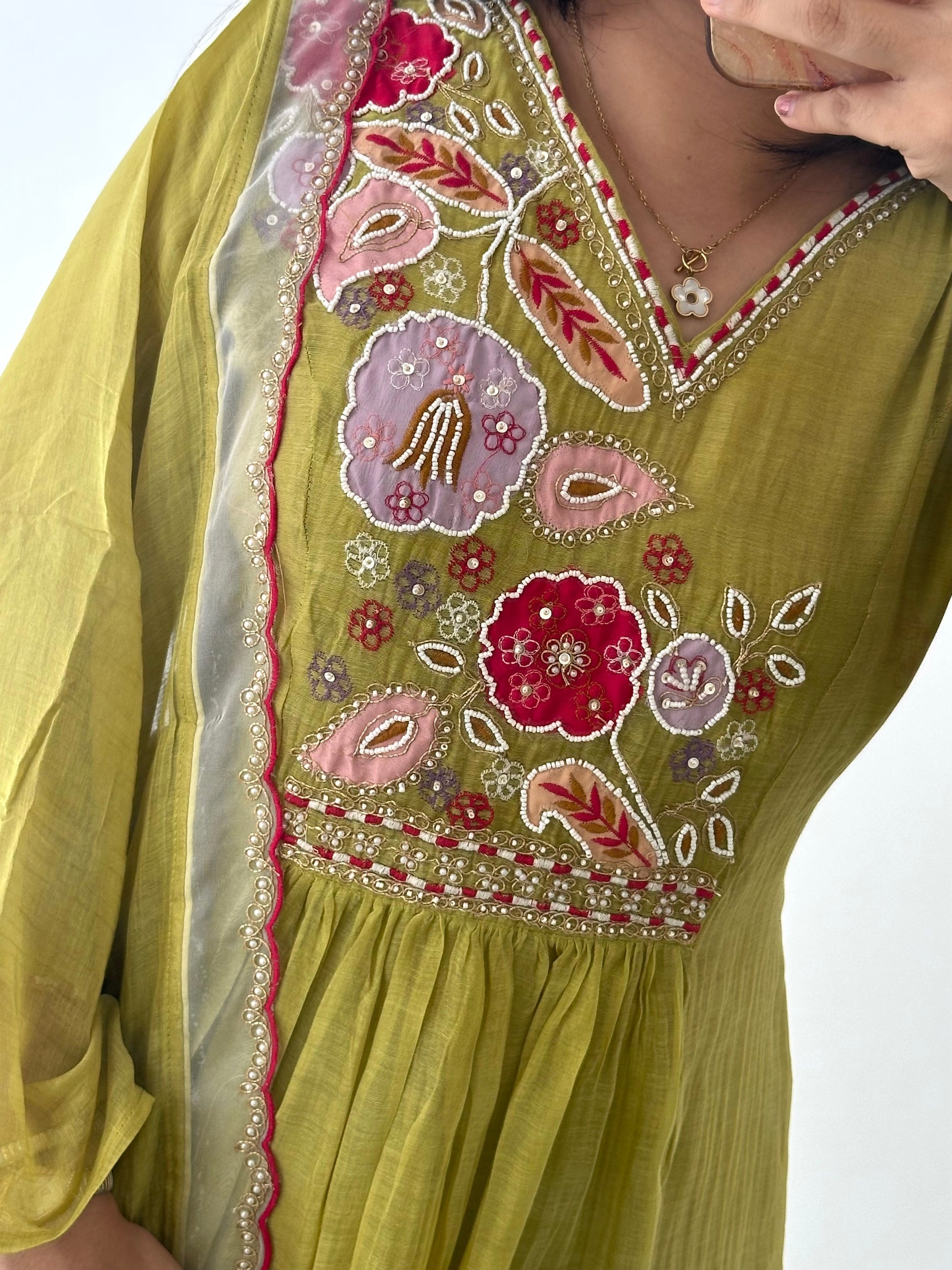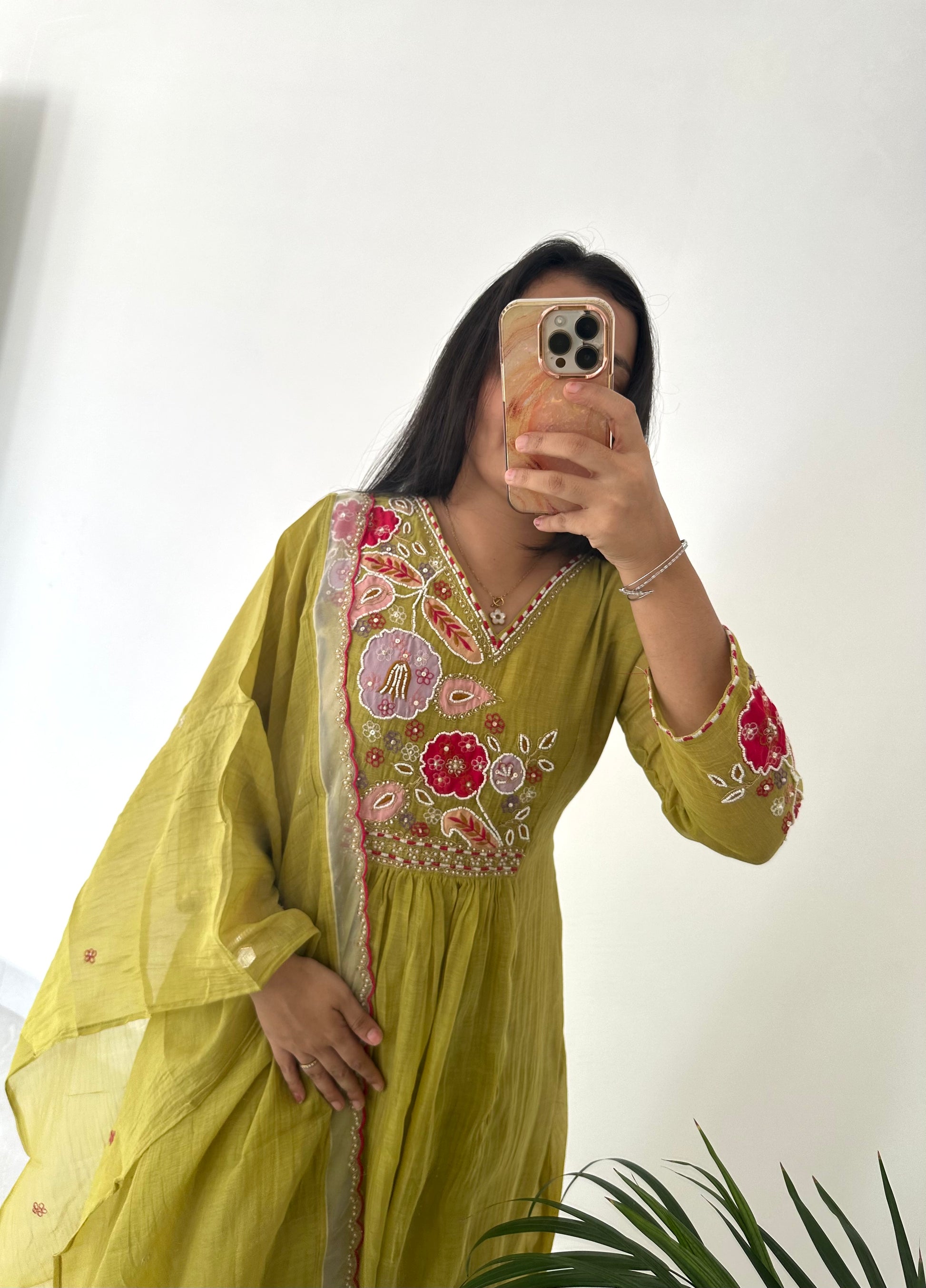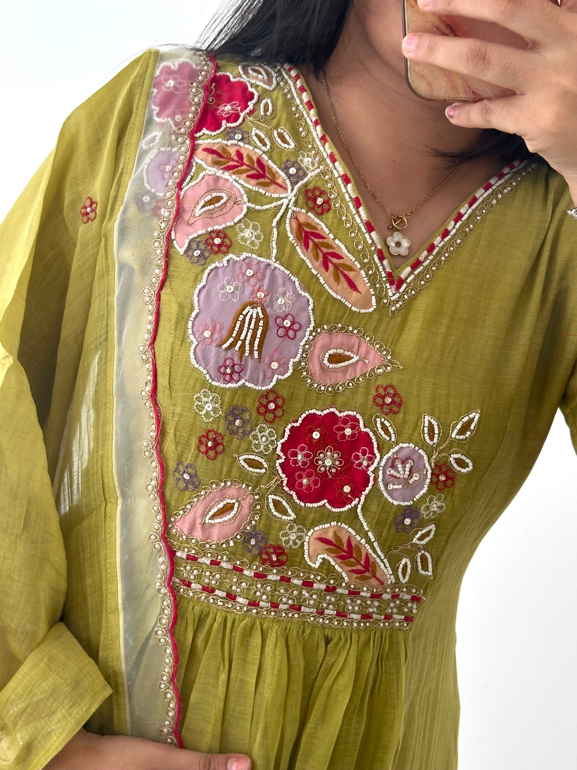 K366 - Mul Chanderi handwork Anarkali with pants and dupatta