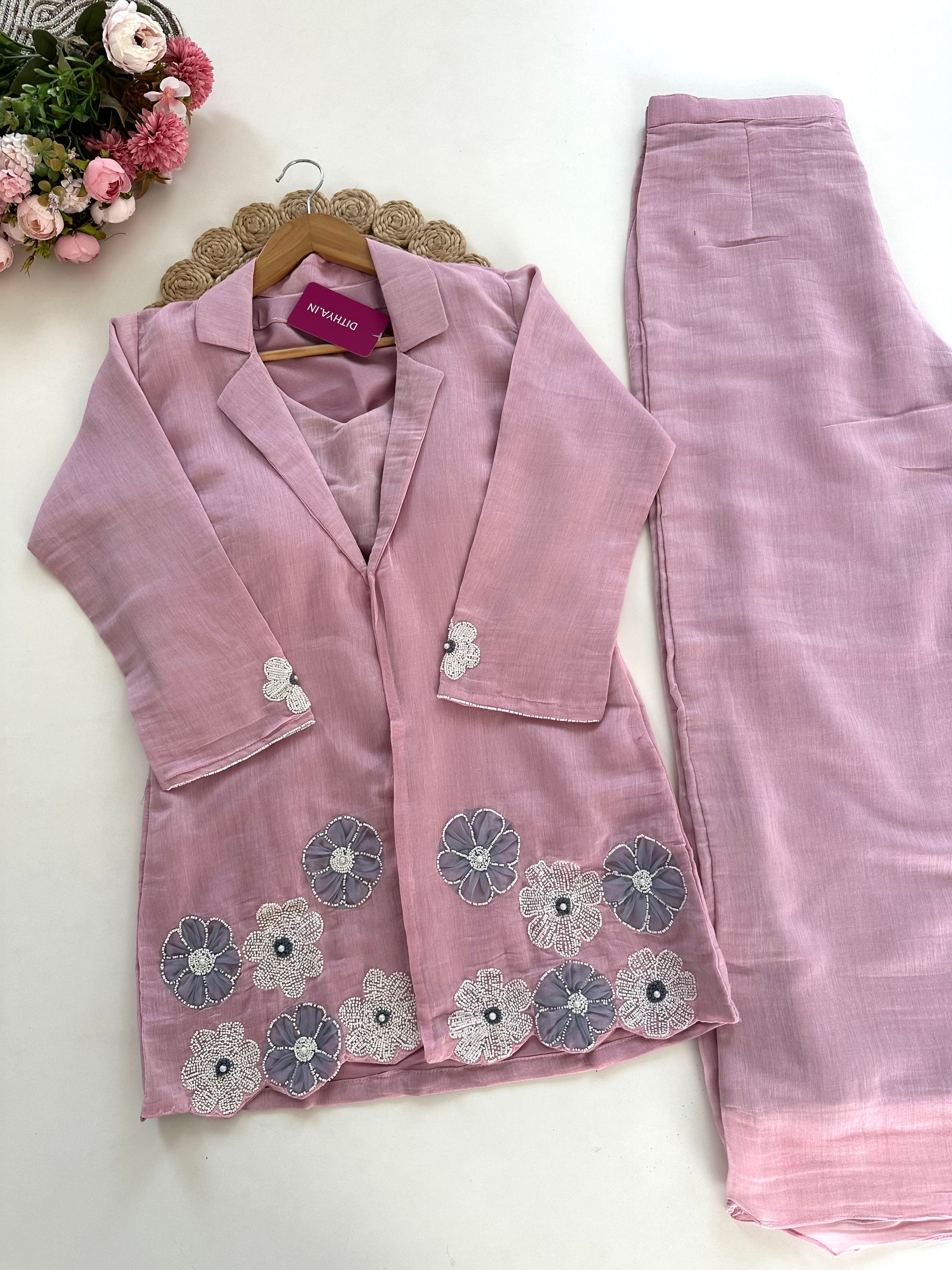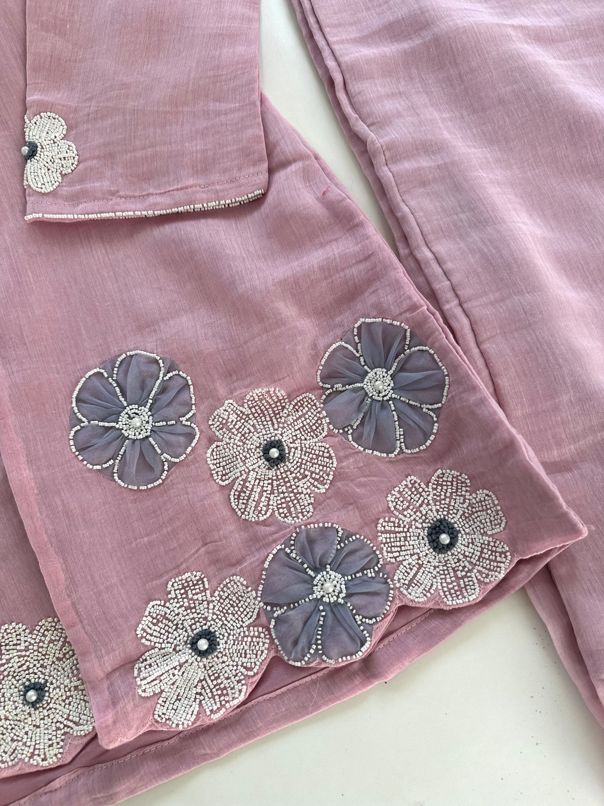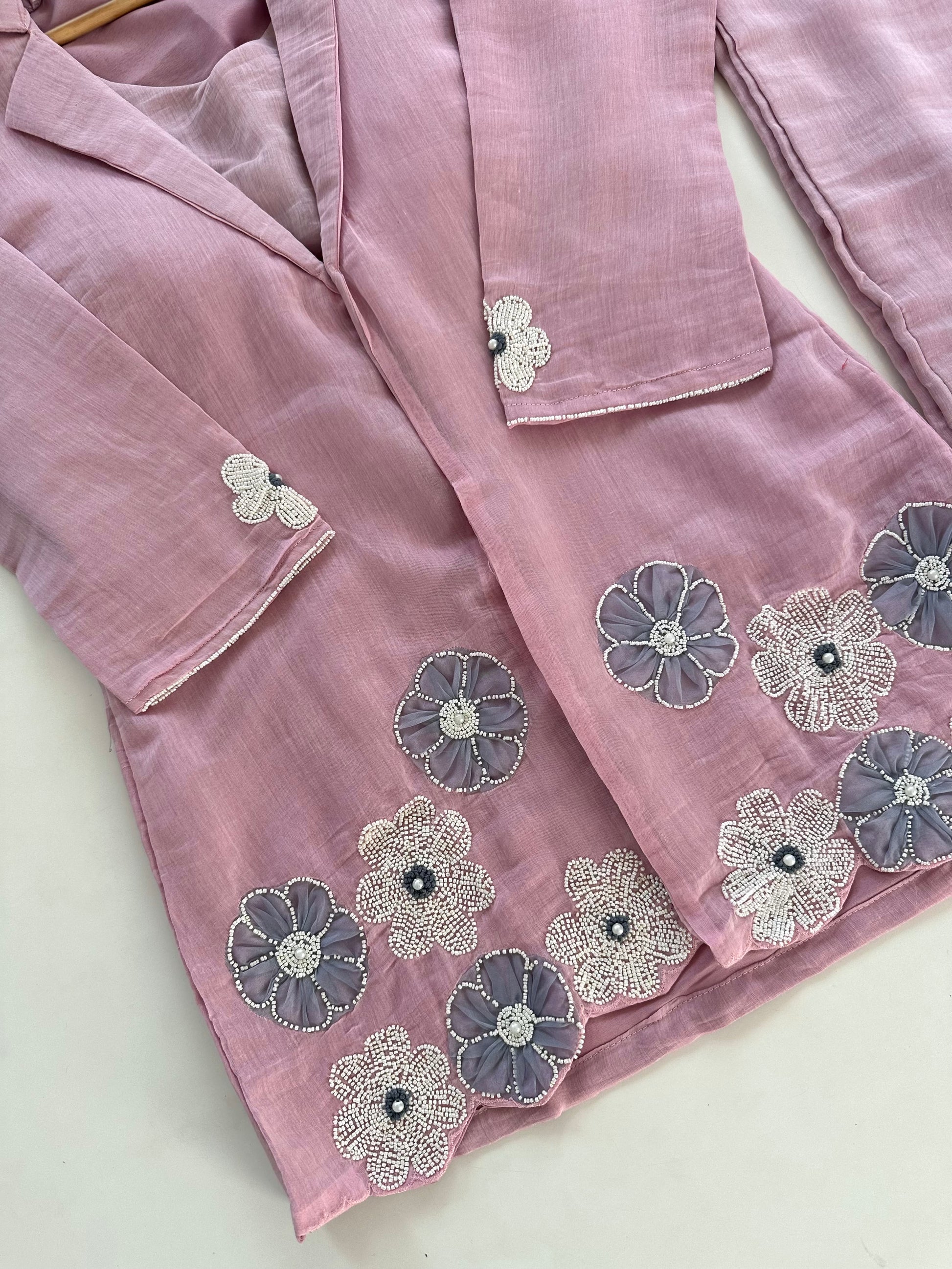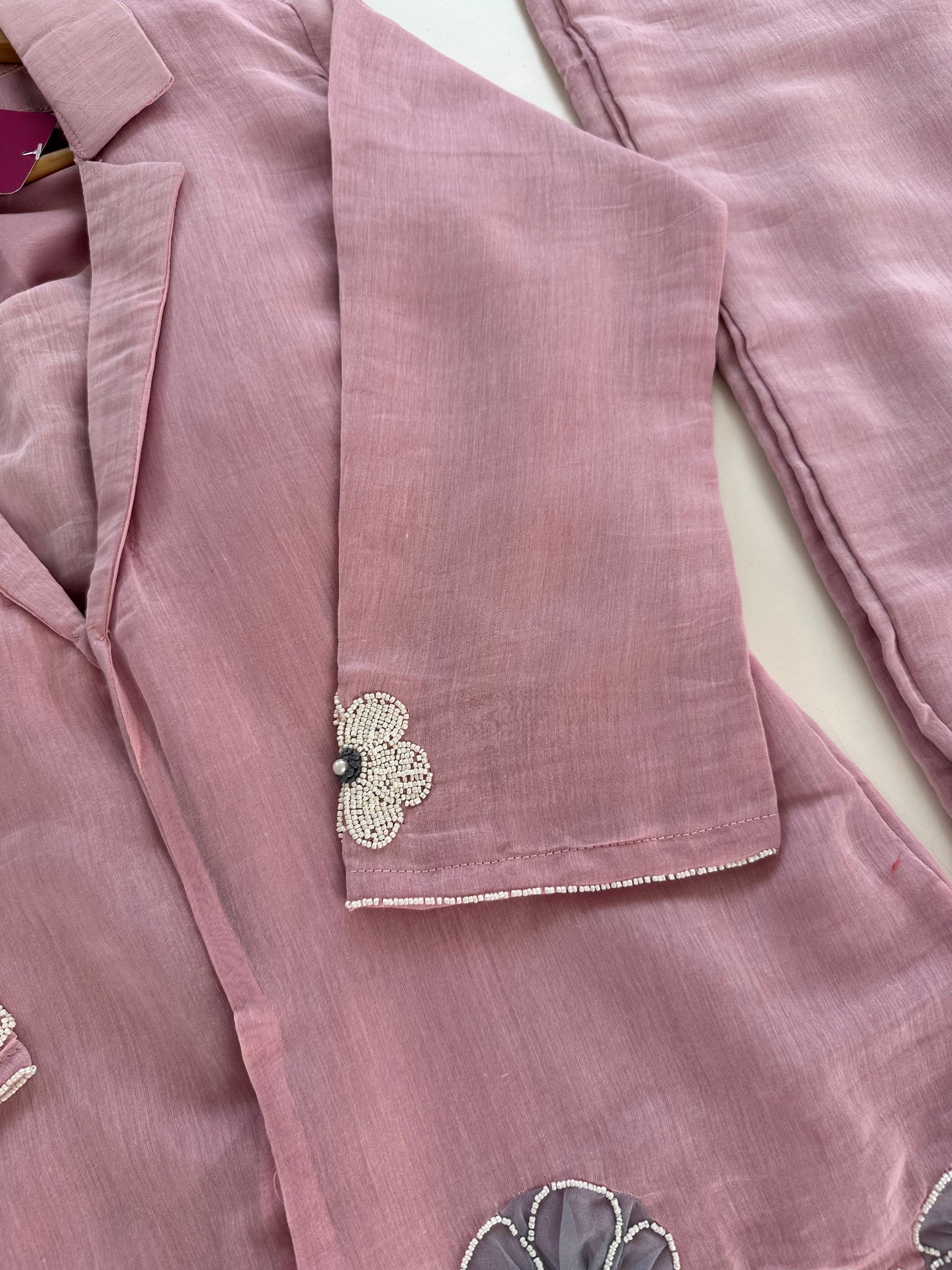 K171 - Mul Chanderi pearl work blazer set with palazzo in 2 colours
