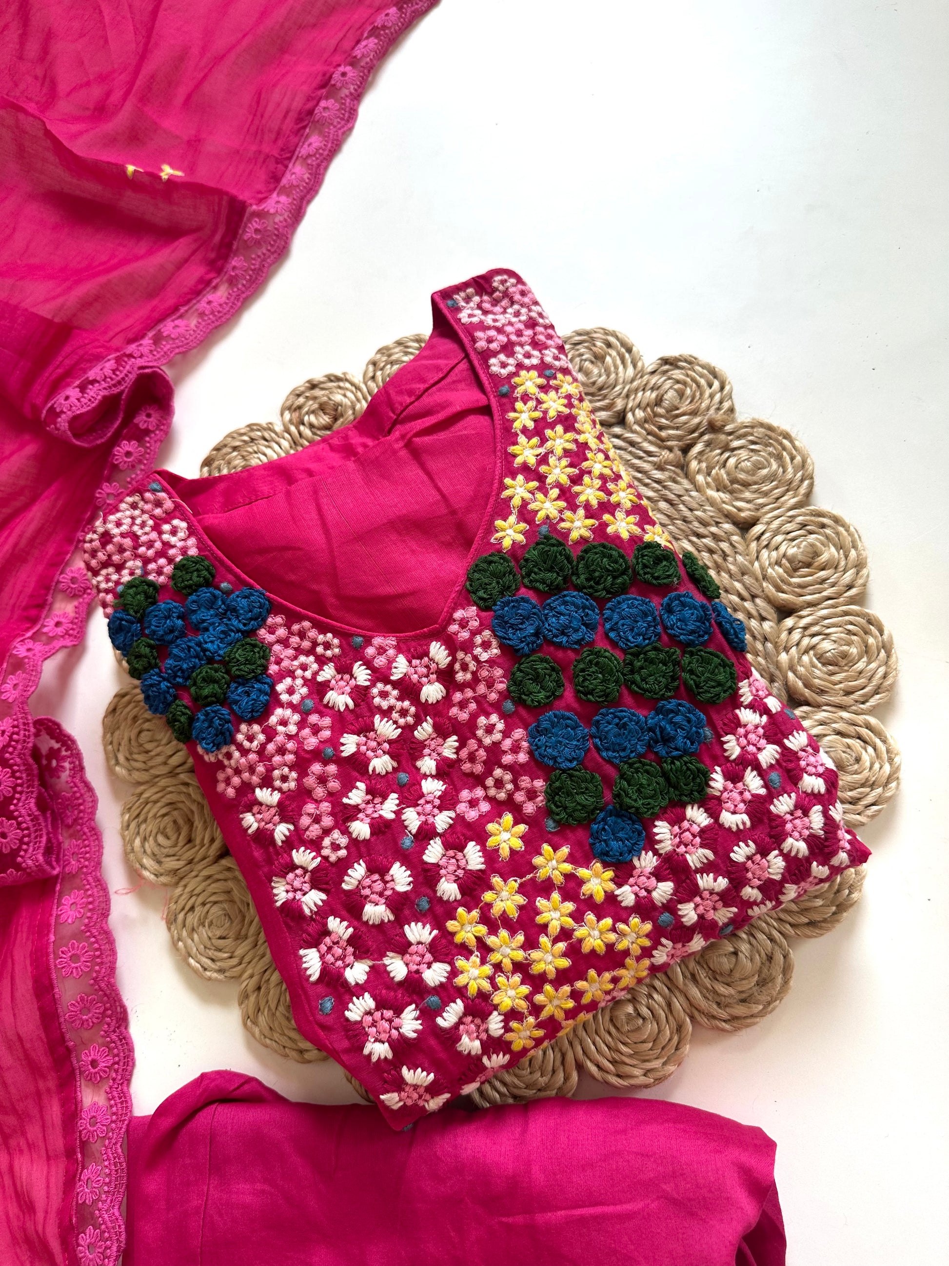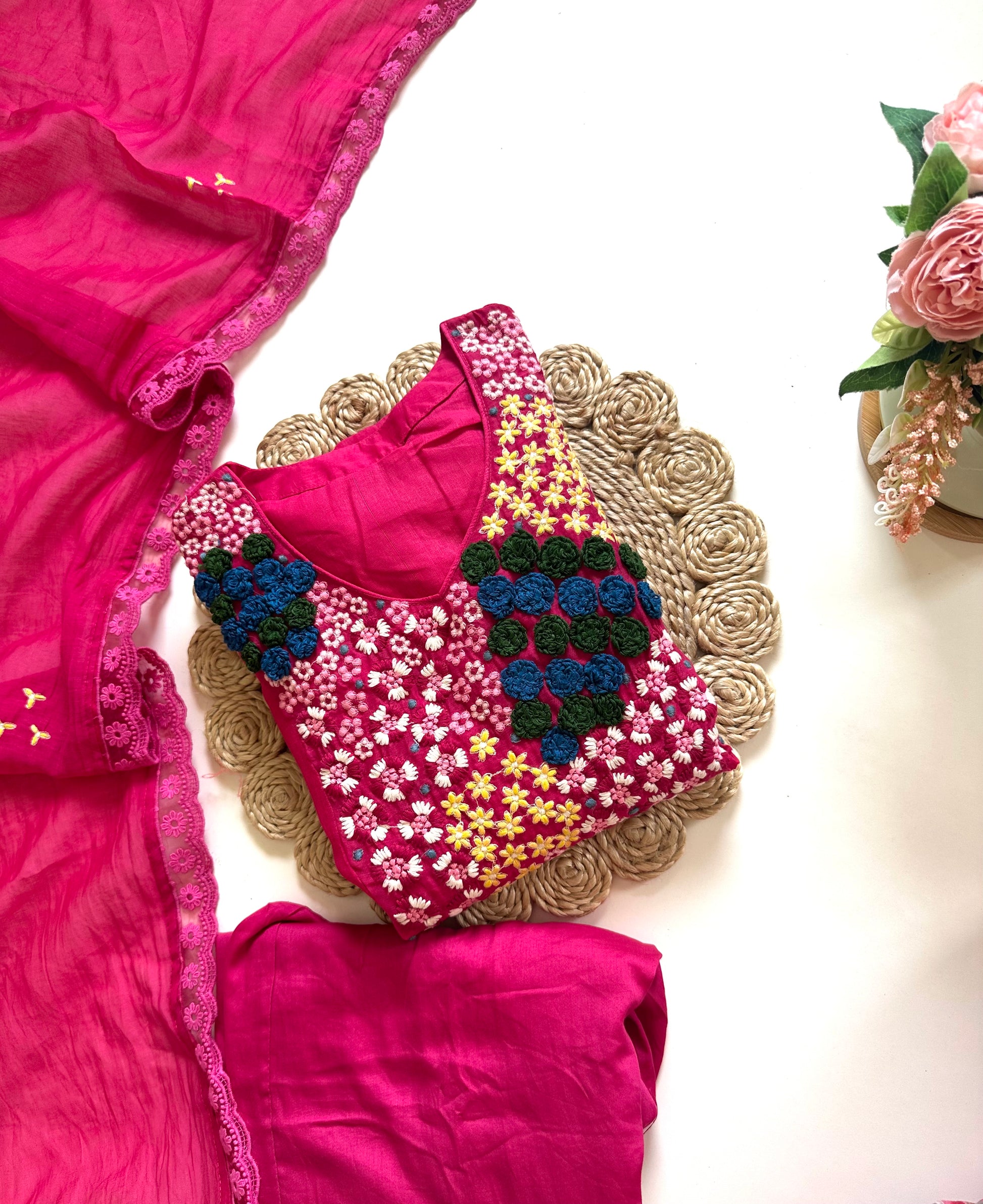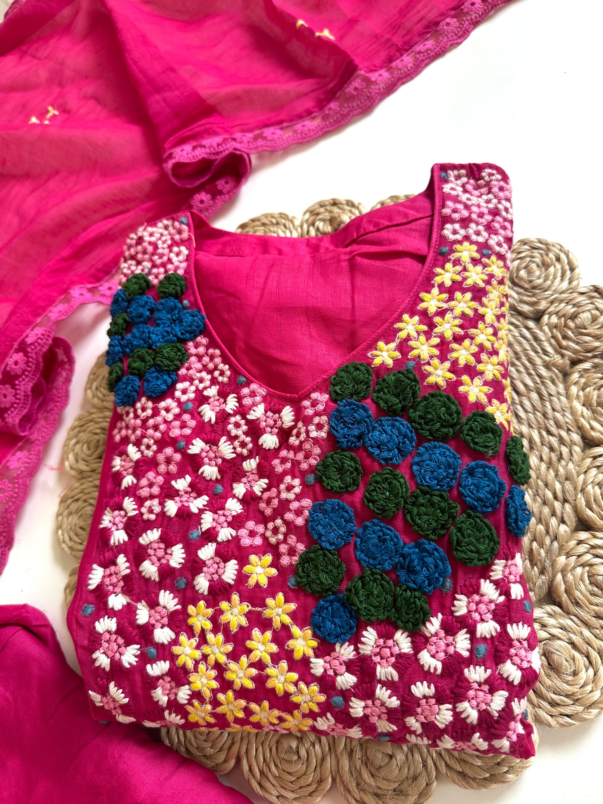 K172 - Mul Chanderi thread work Aline Kurti with pants and dupatta .