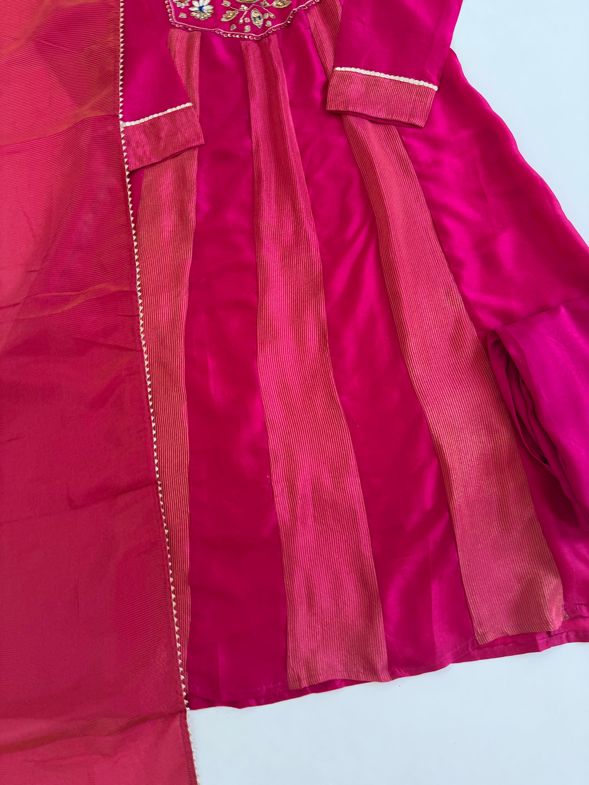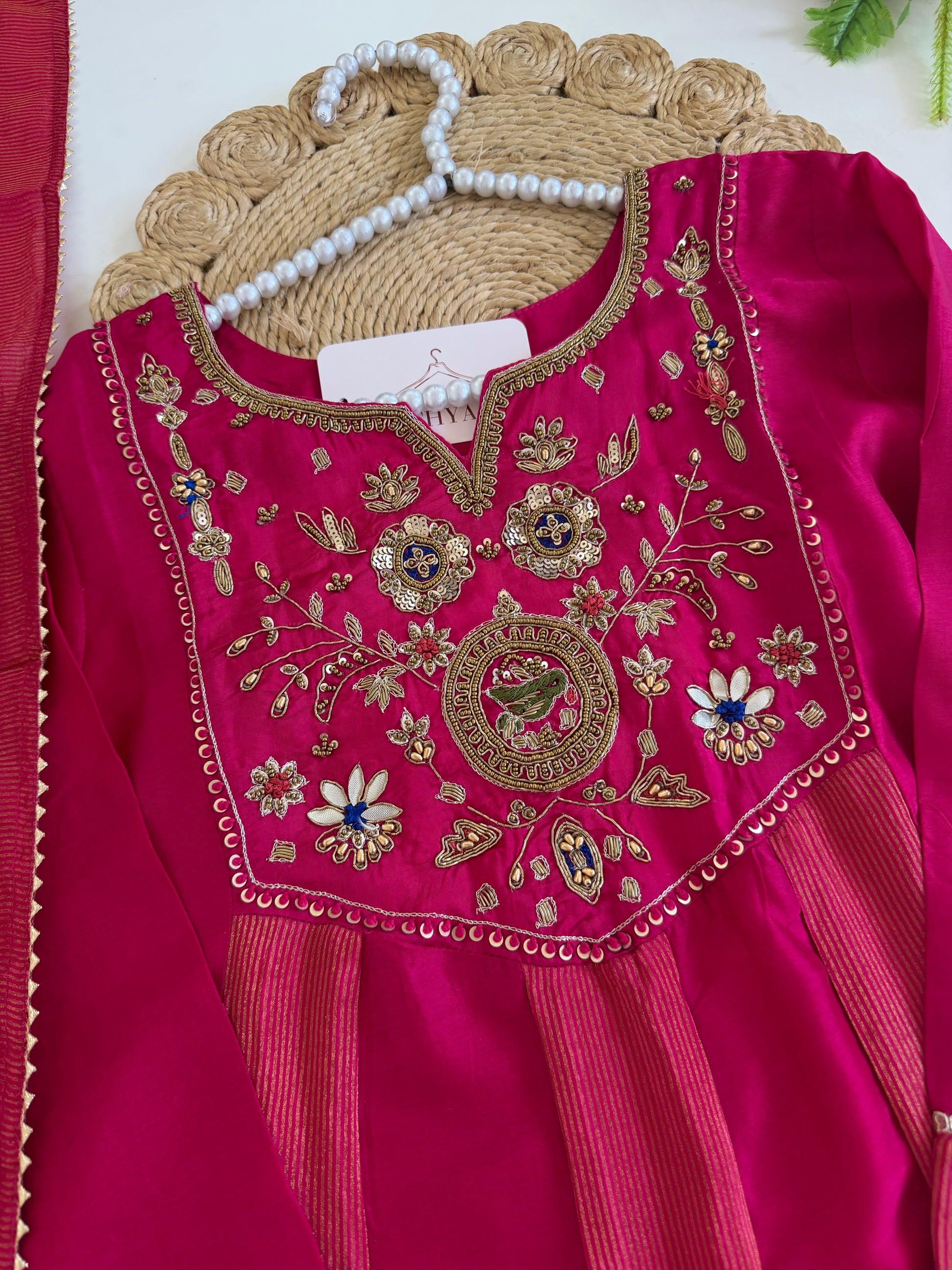 K598 - Mul chanderi & Tissue silk handwork Anarkali with pants and dupatta