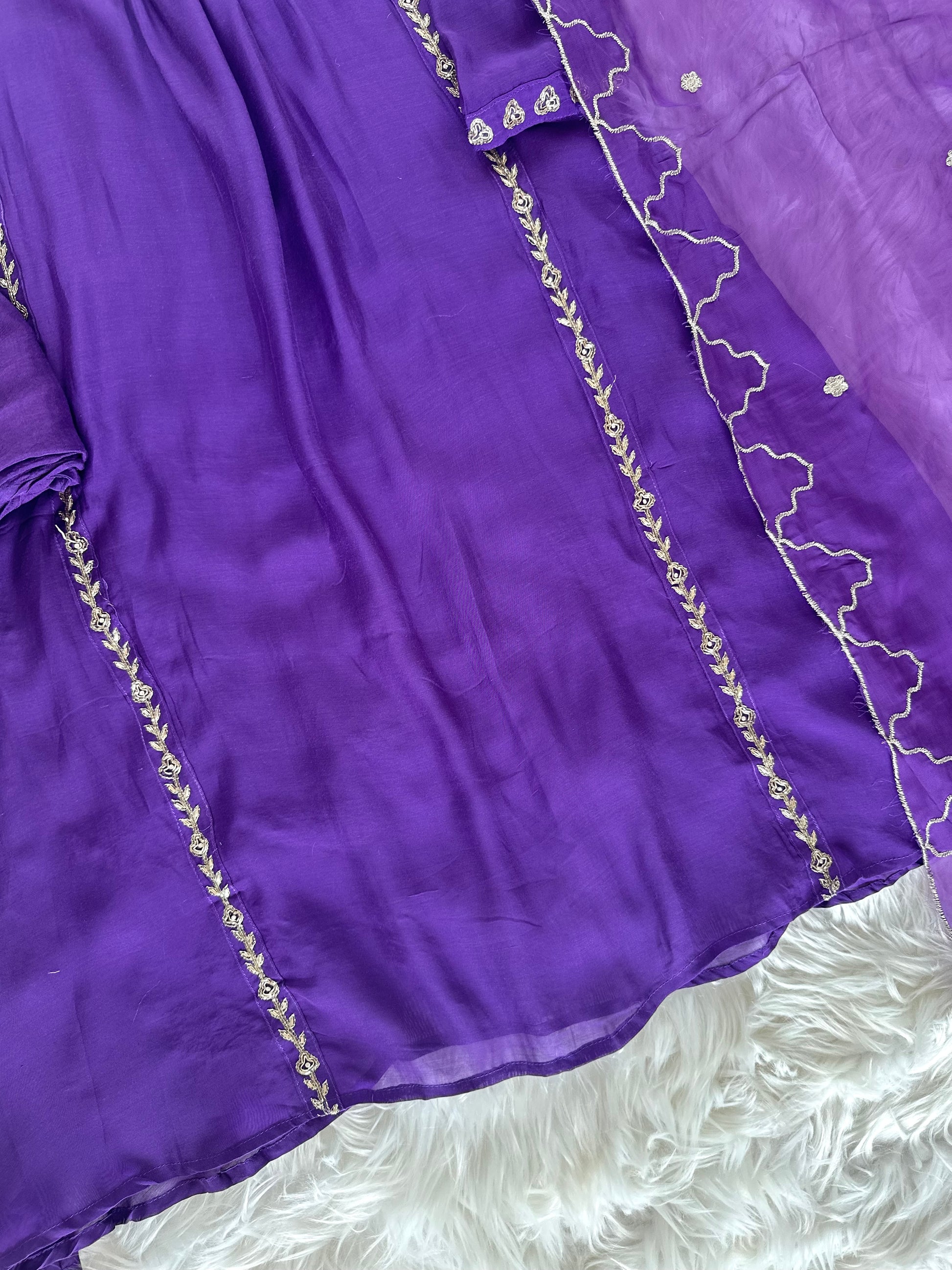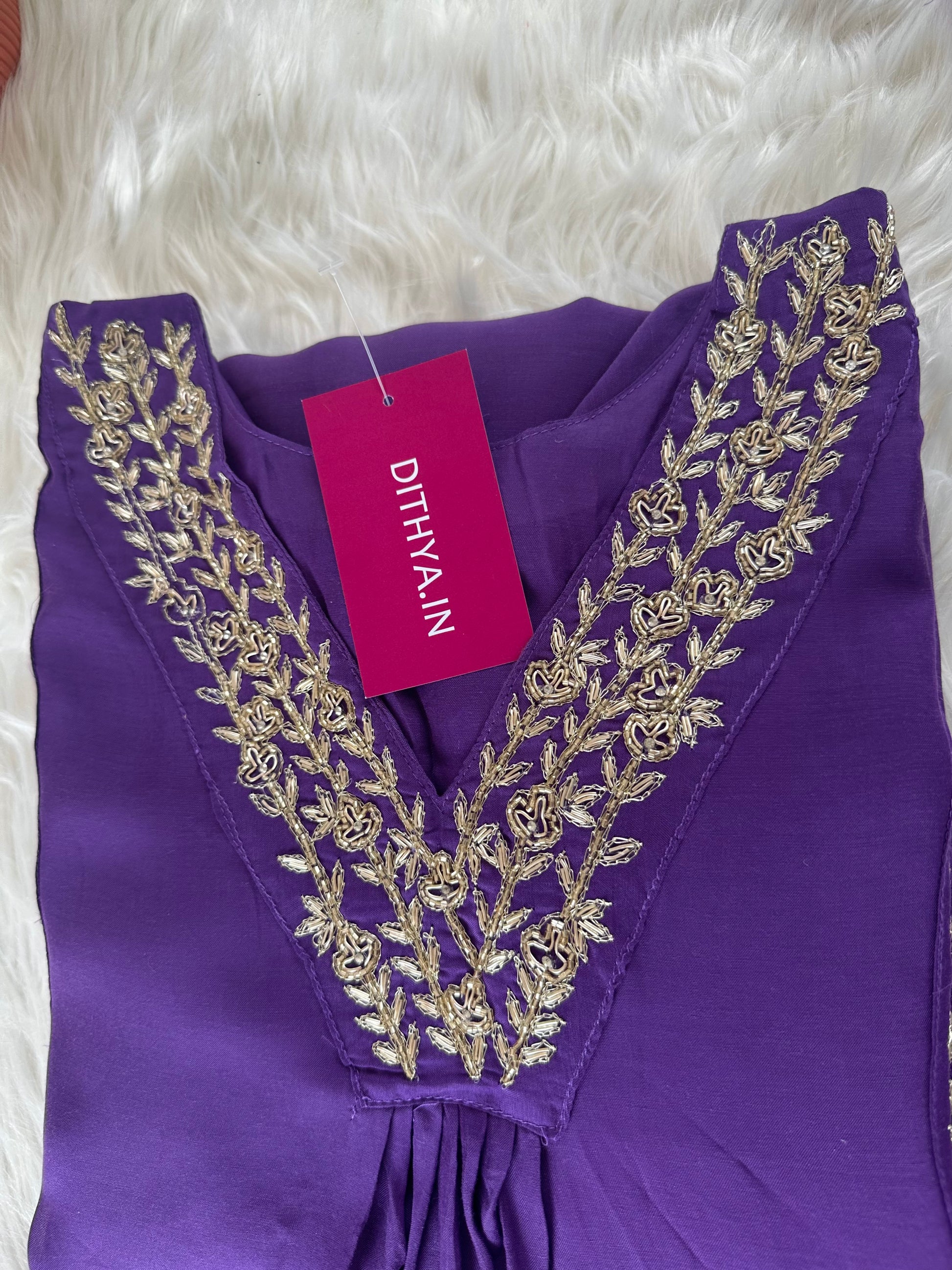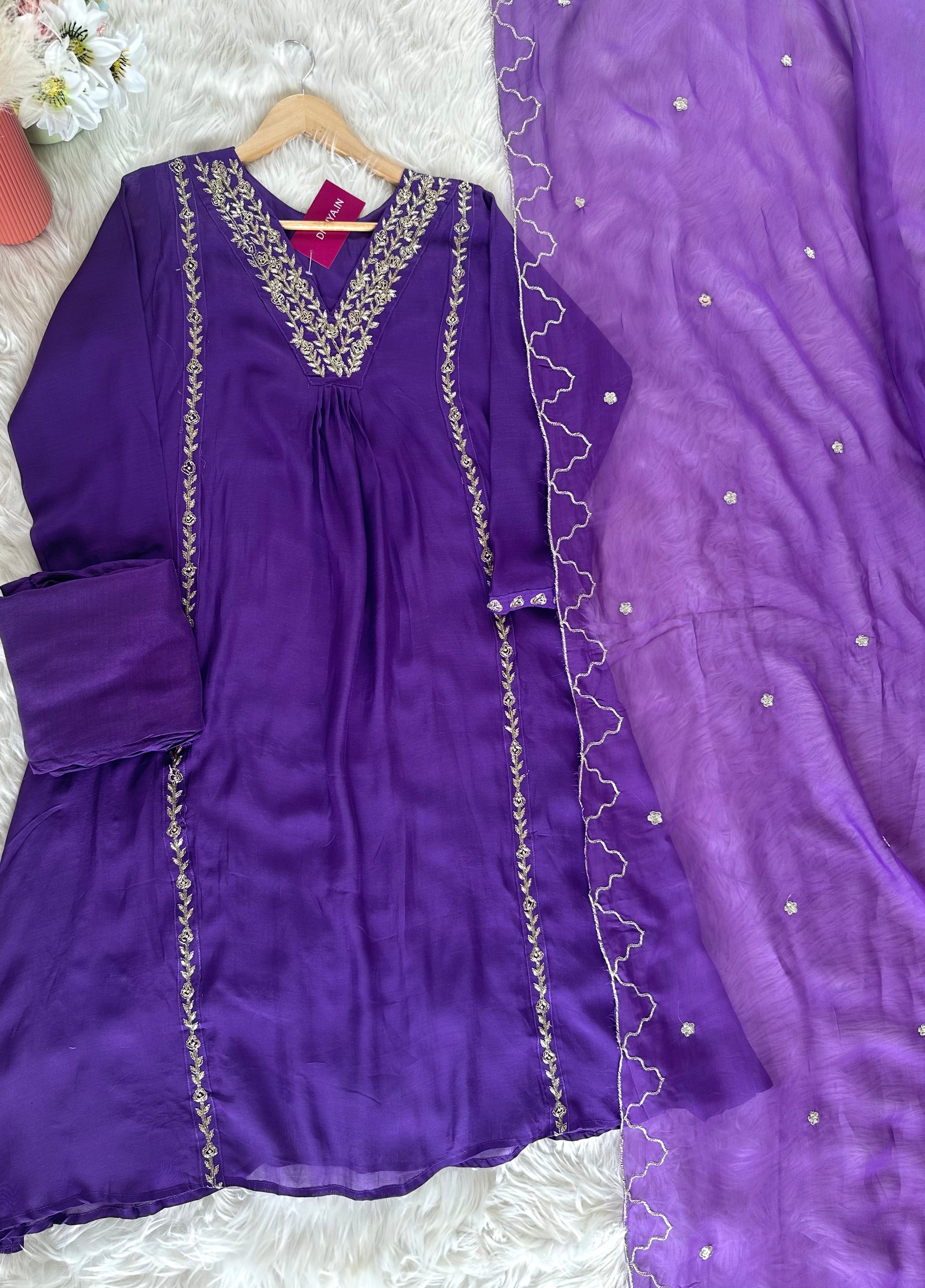 K259 - Mul Chanderi zardosi Aline Kurti with pants and dupatta