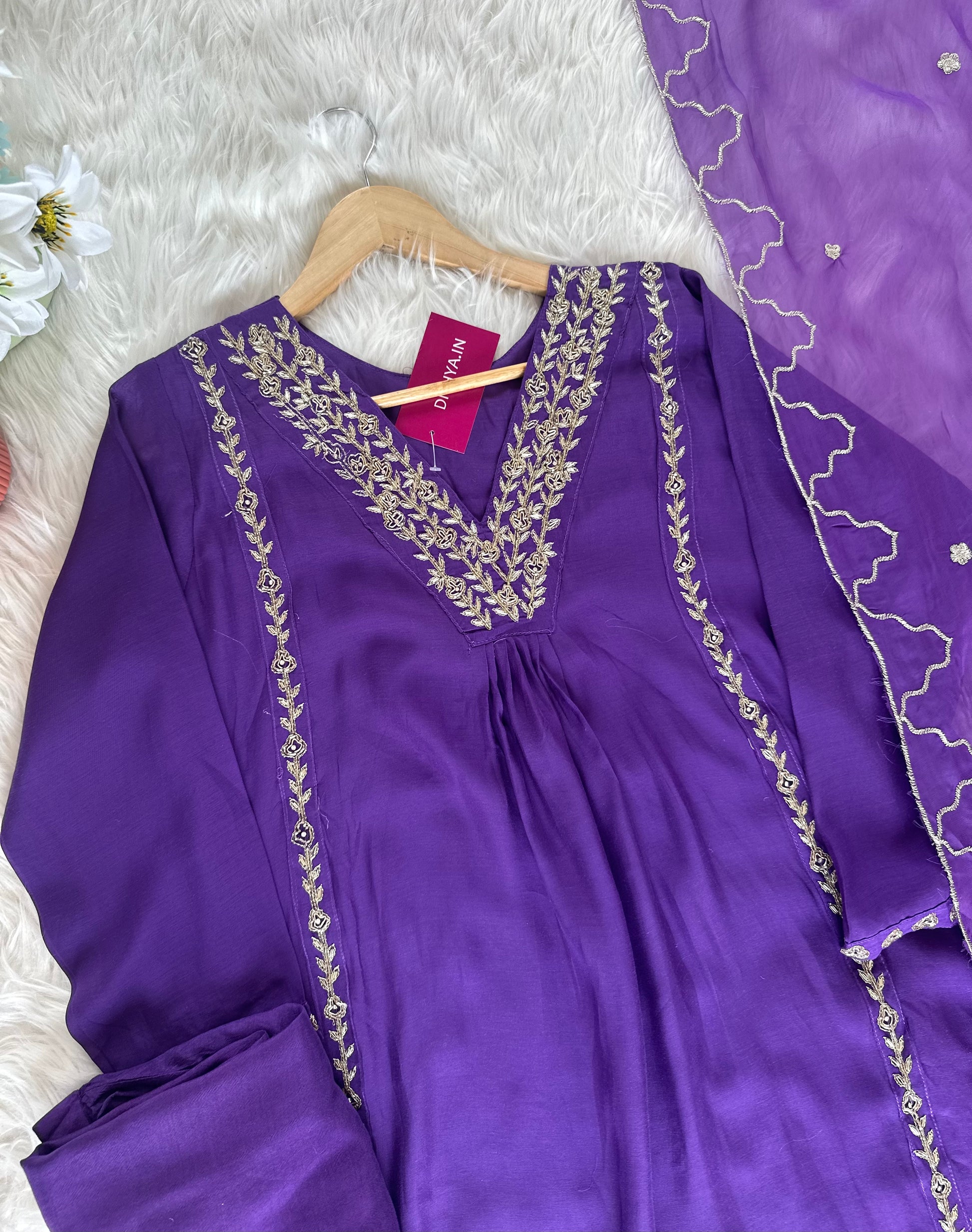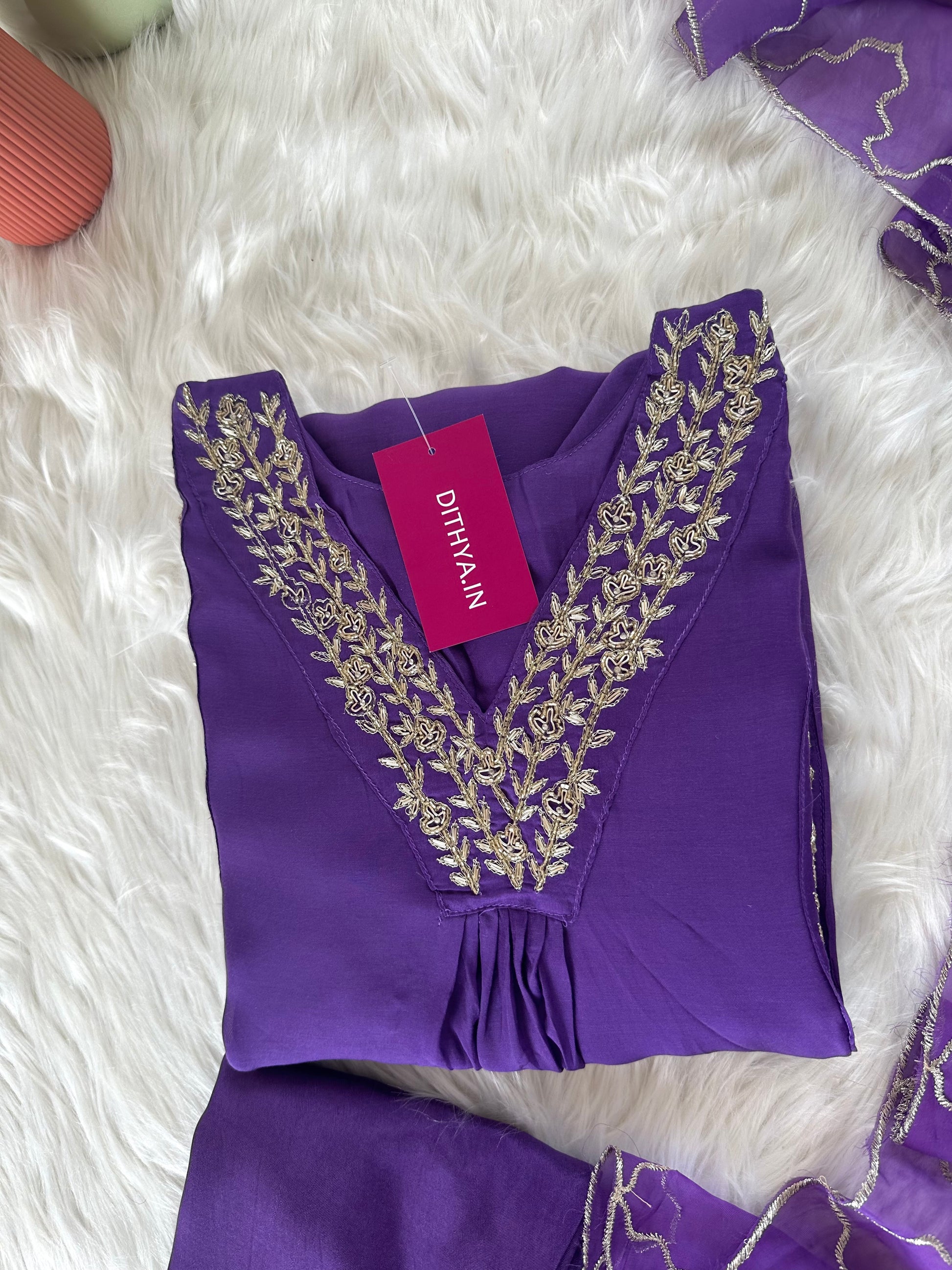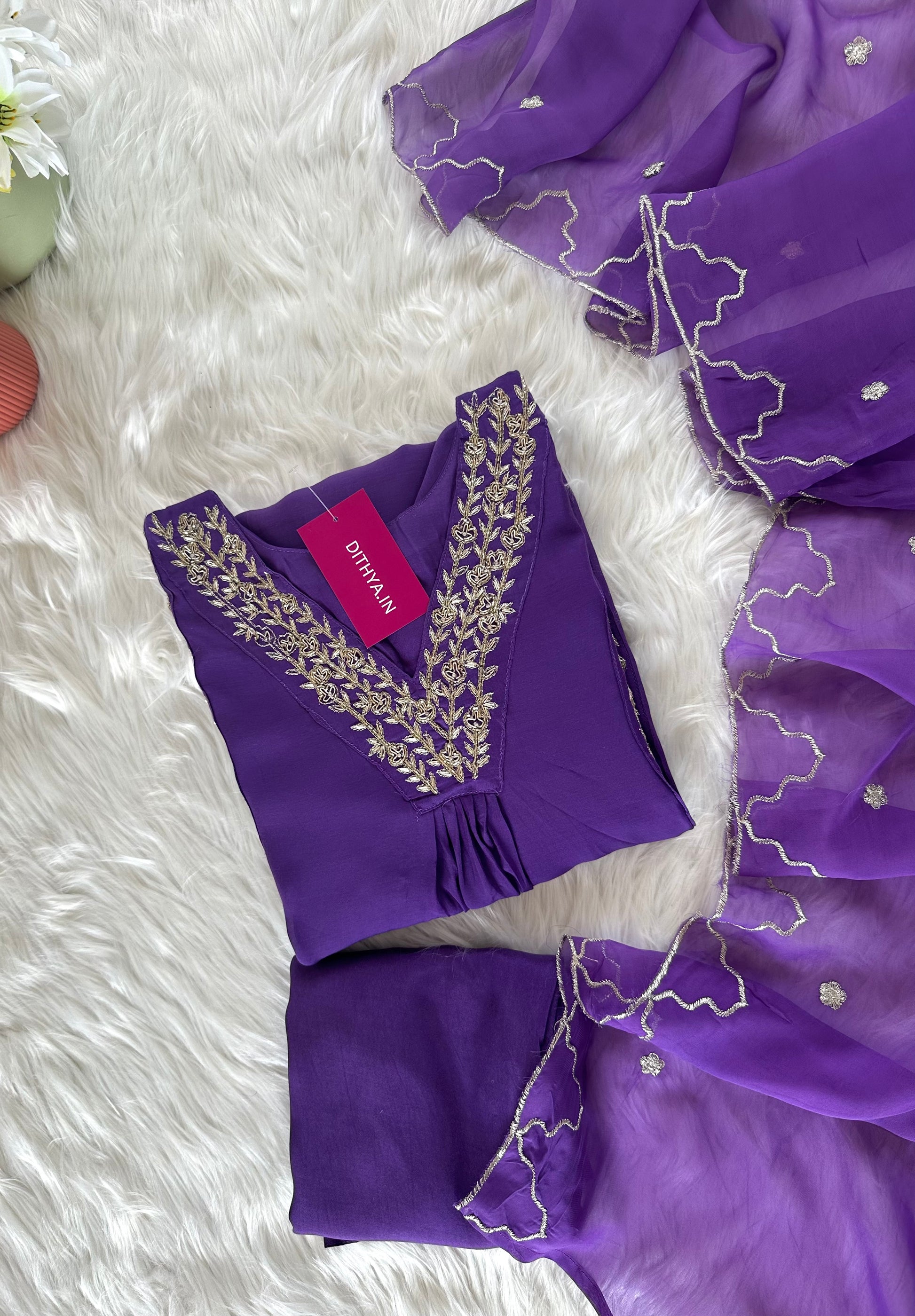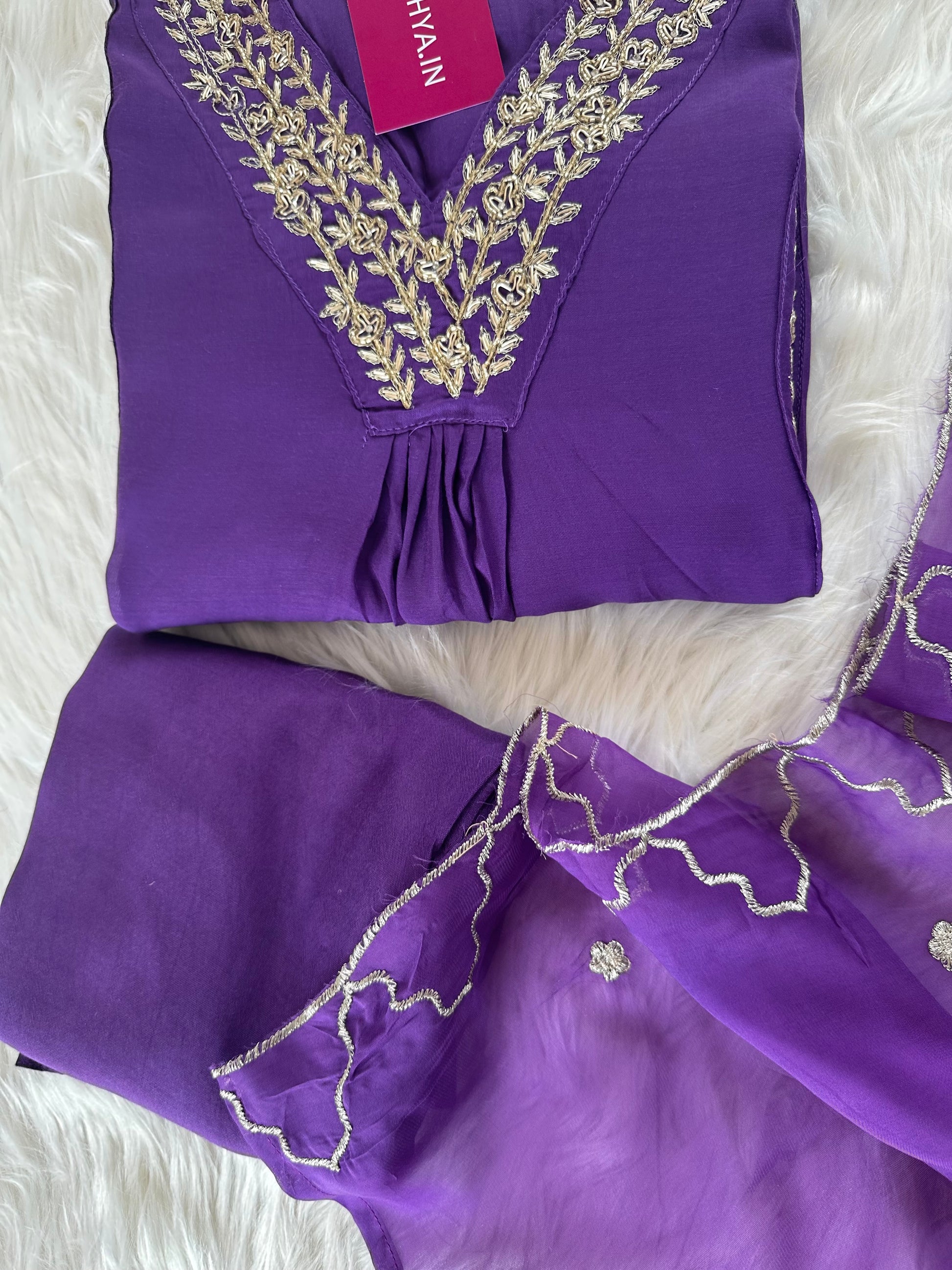 K259 - Mul Chanderi zardosi Aline Kurti with pants and dupatta