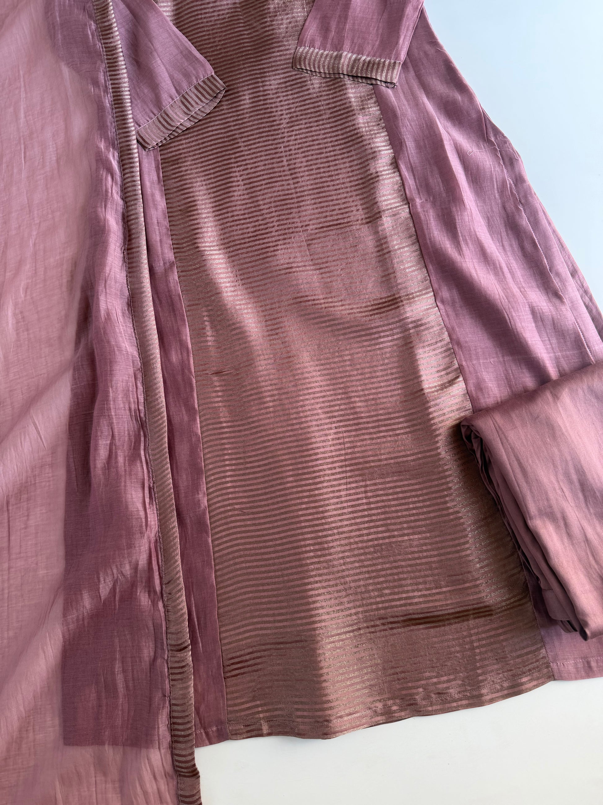 K089 - Mul chanderi zari Aline Kurti with pants and dupatta
