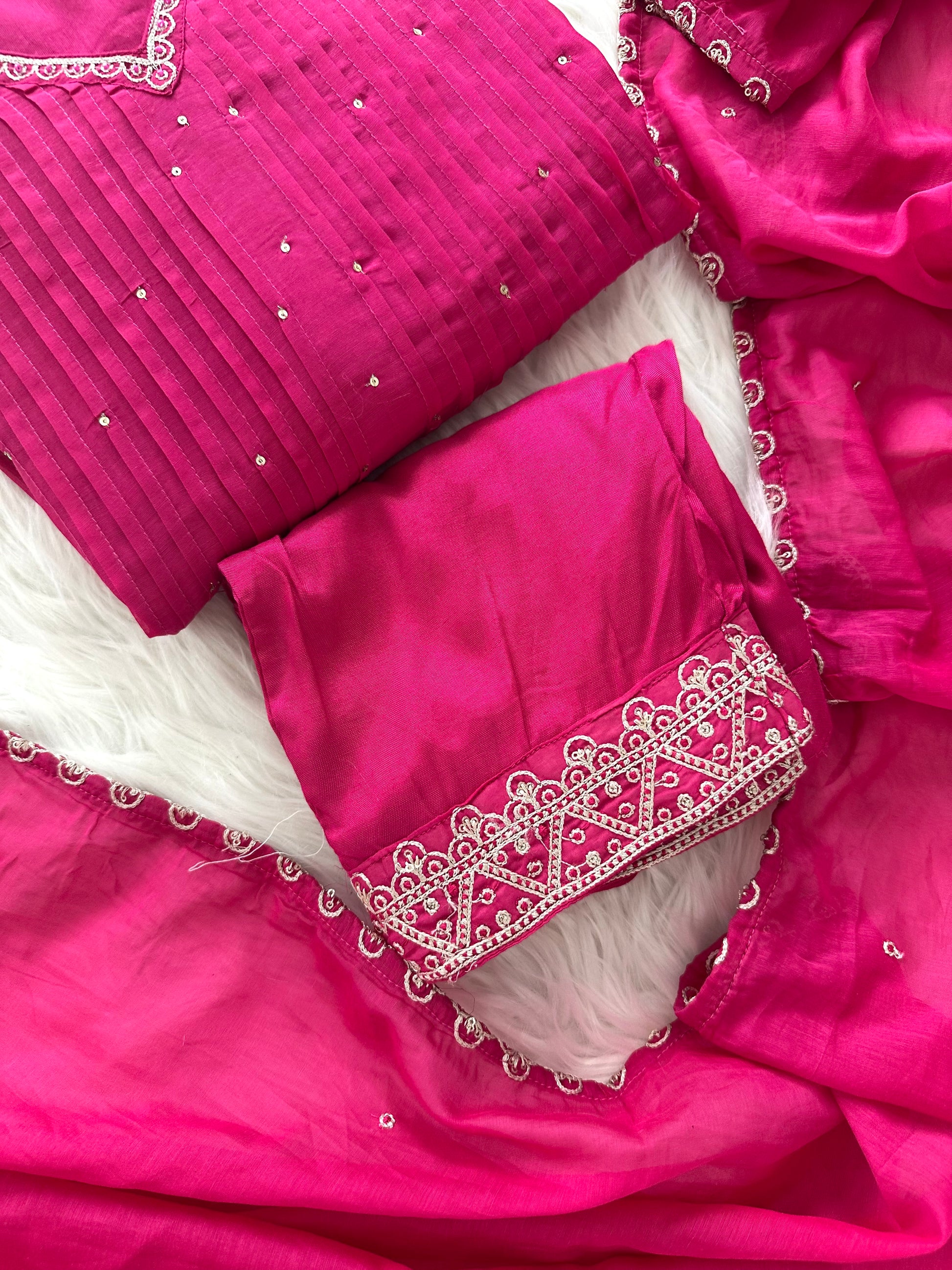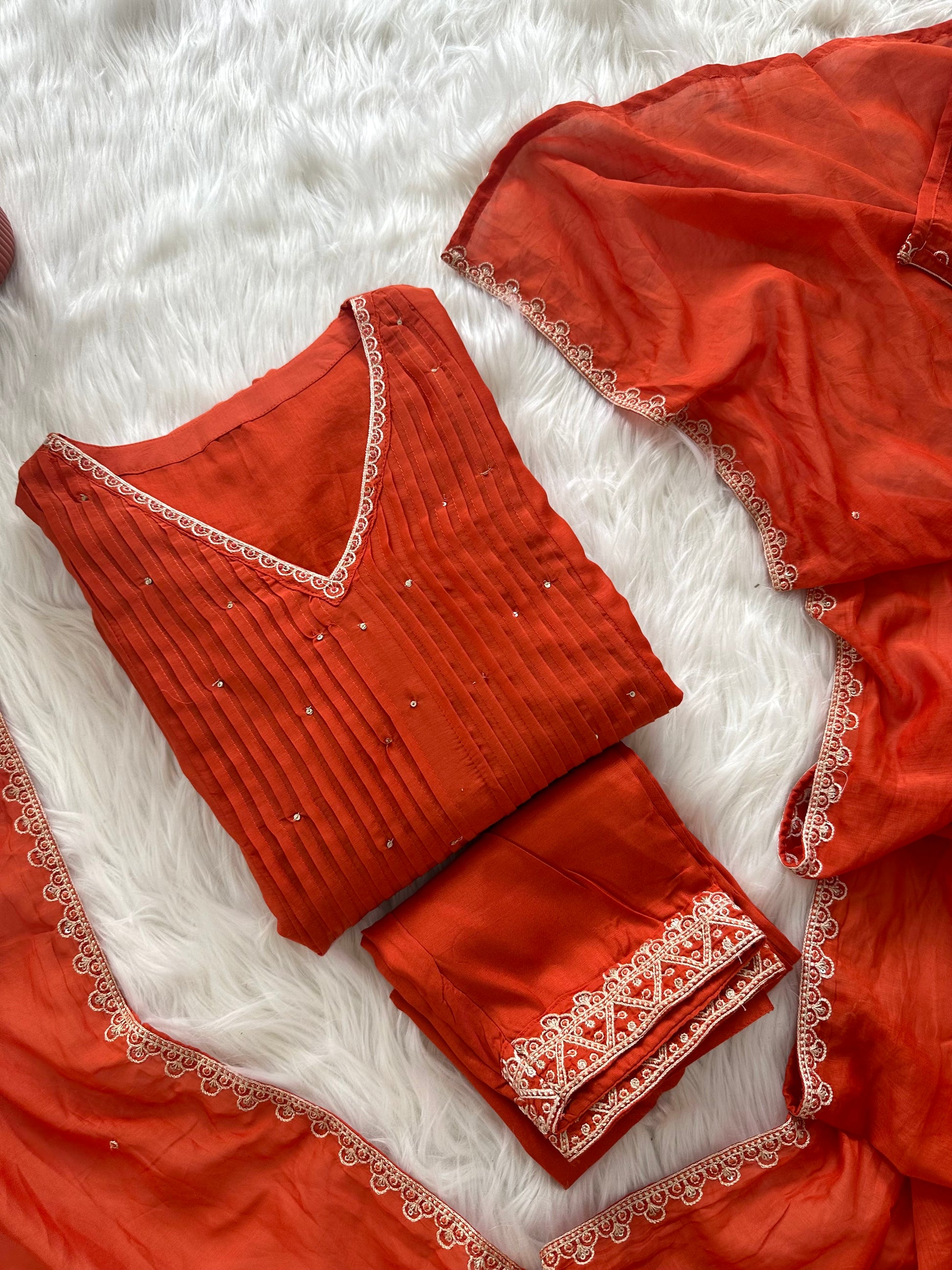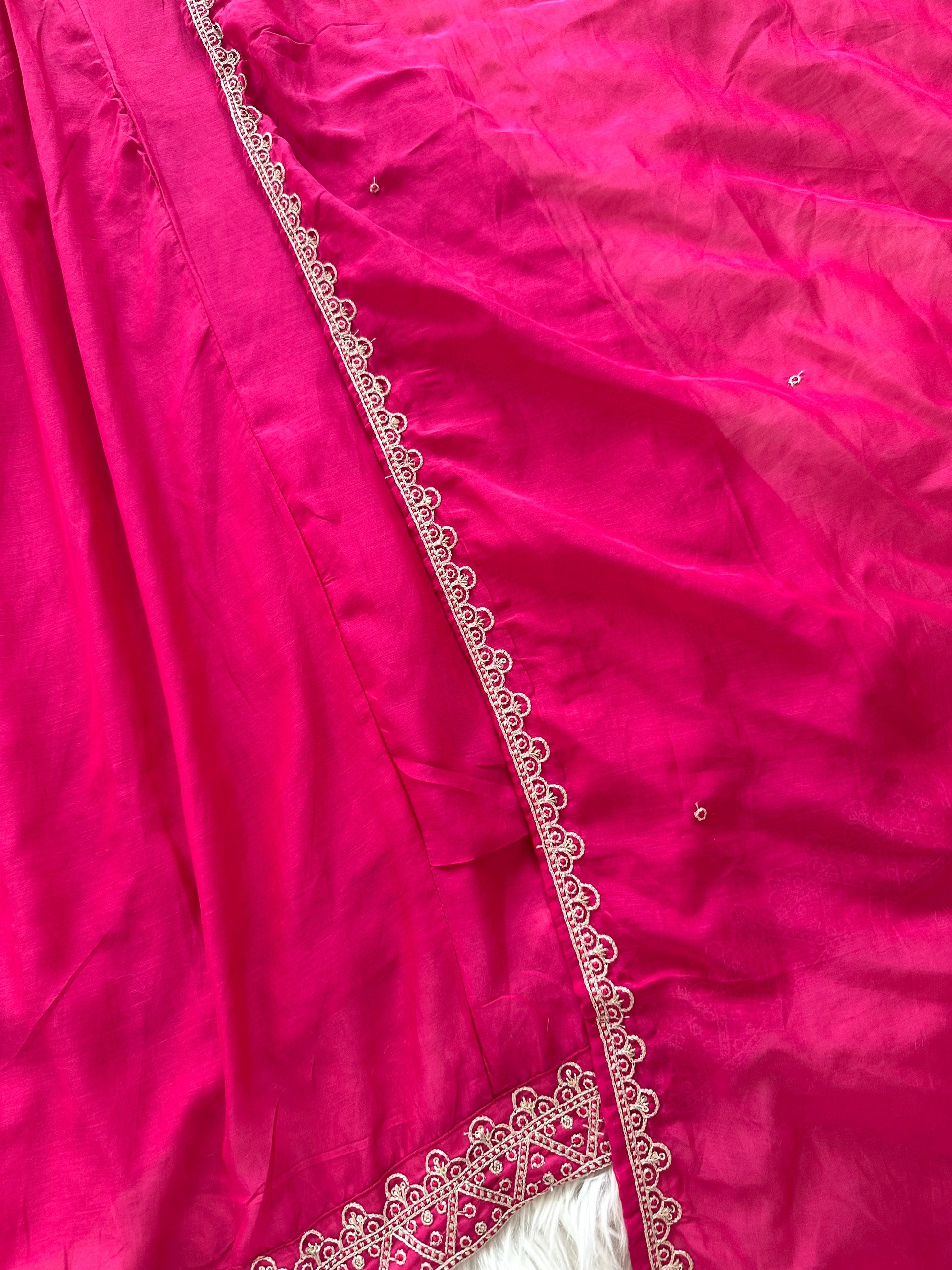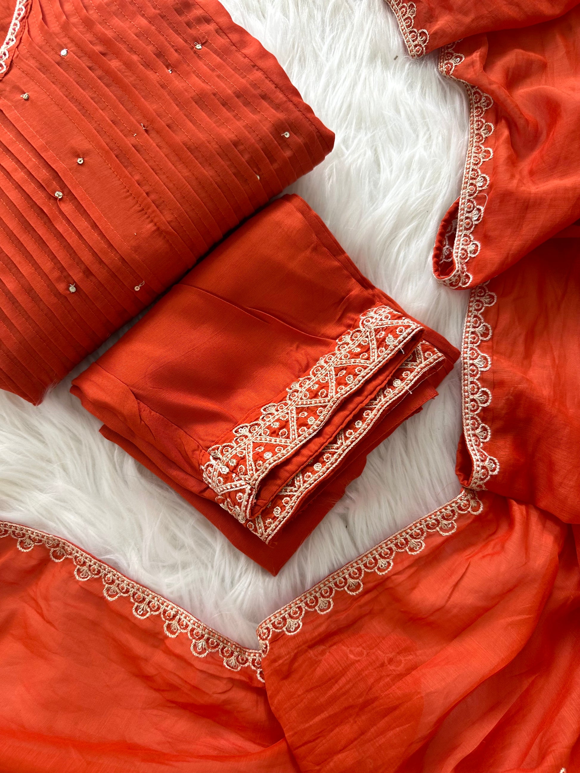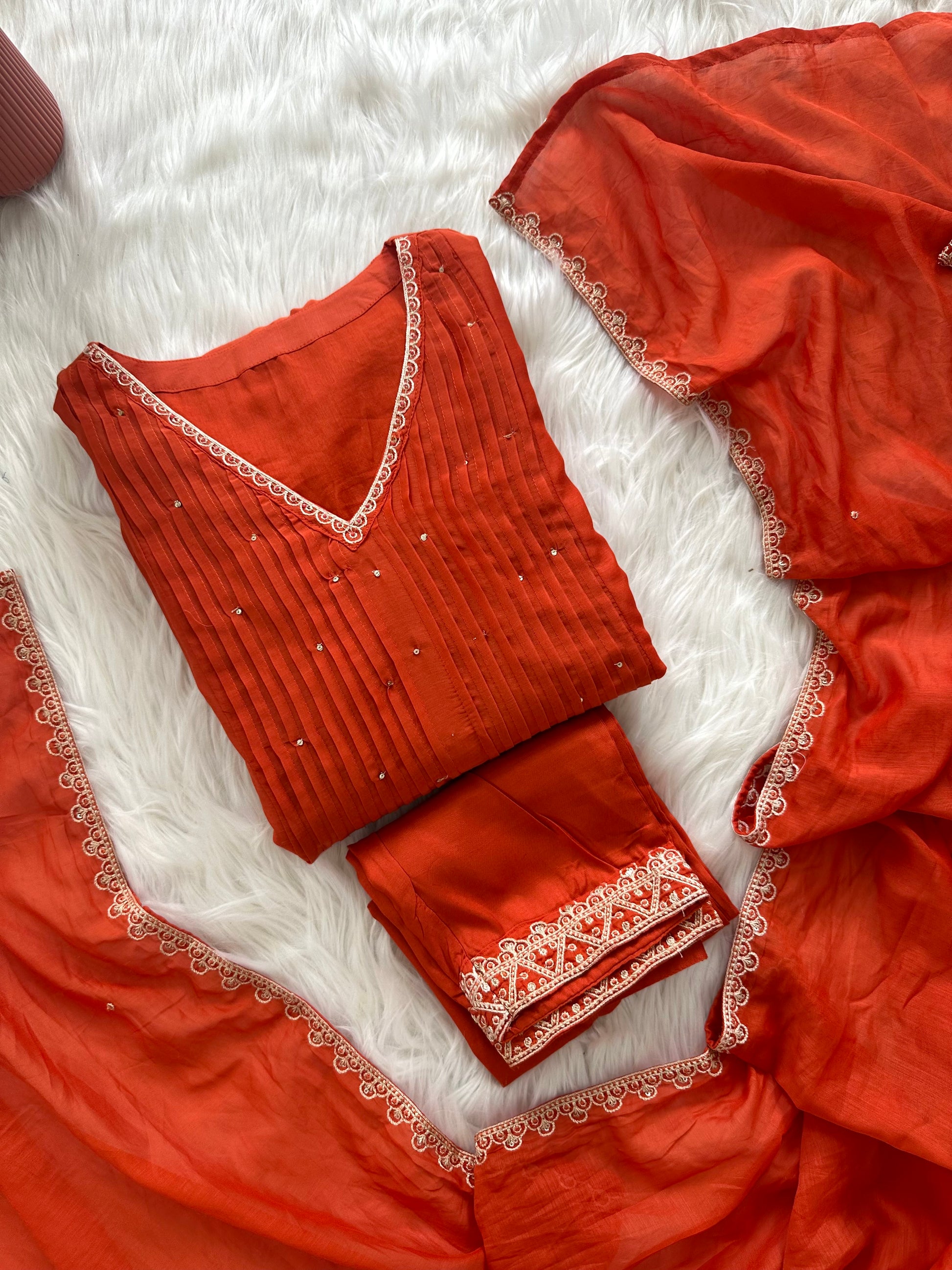 K369 - Mul Chanderi zari work Aline Kurti with pants and dupatta in 2 colours