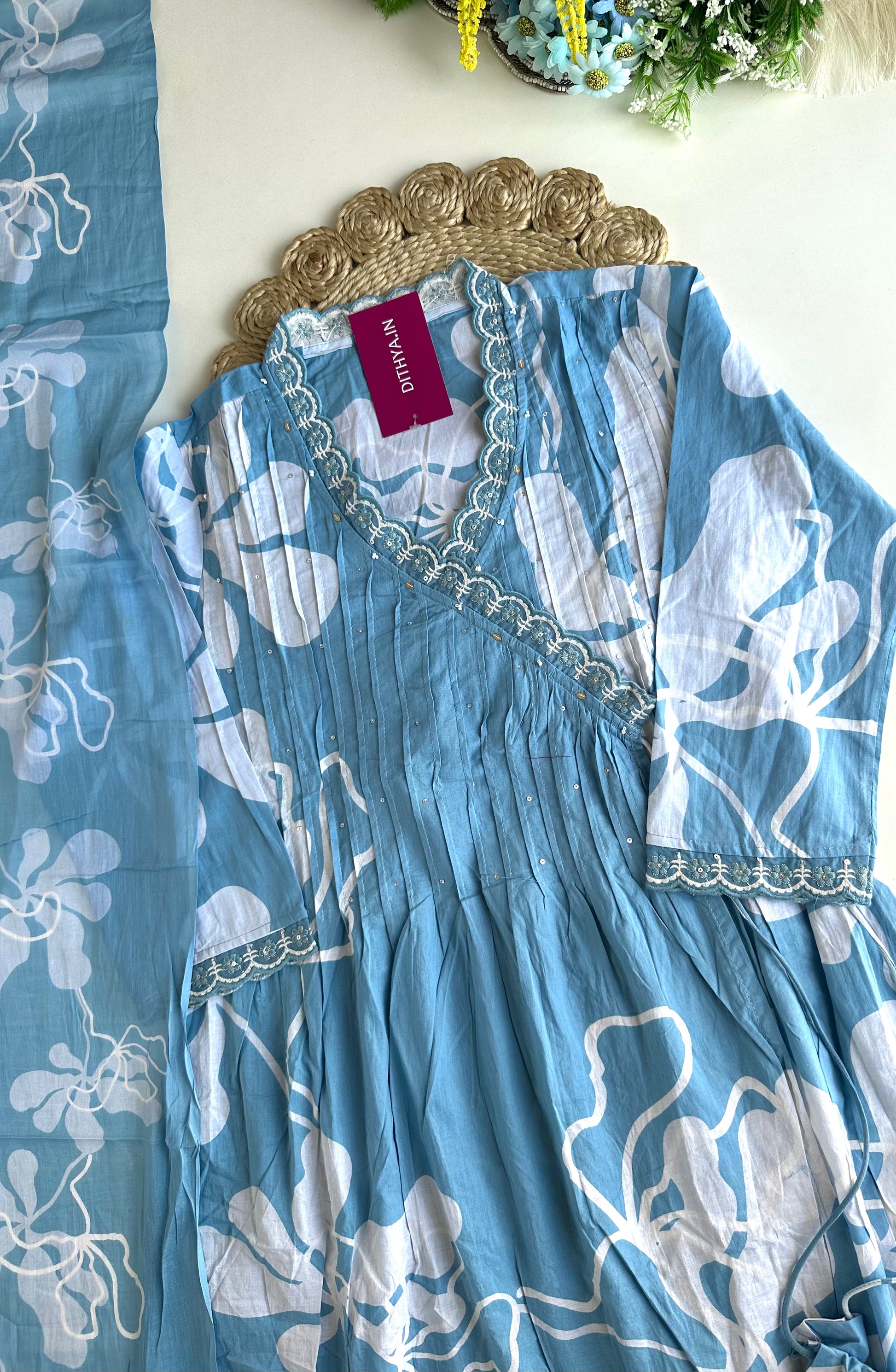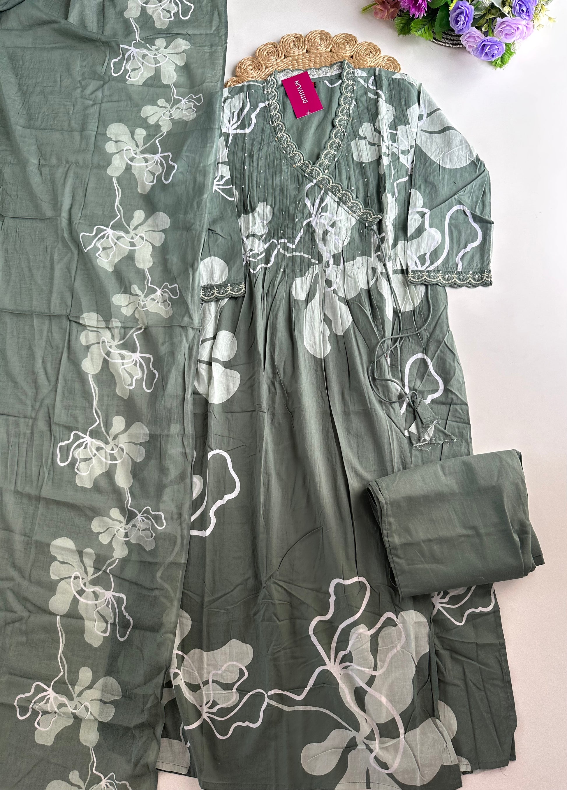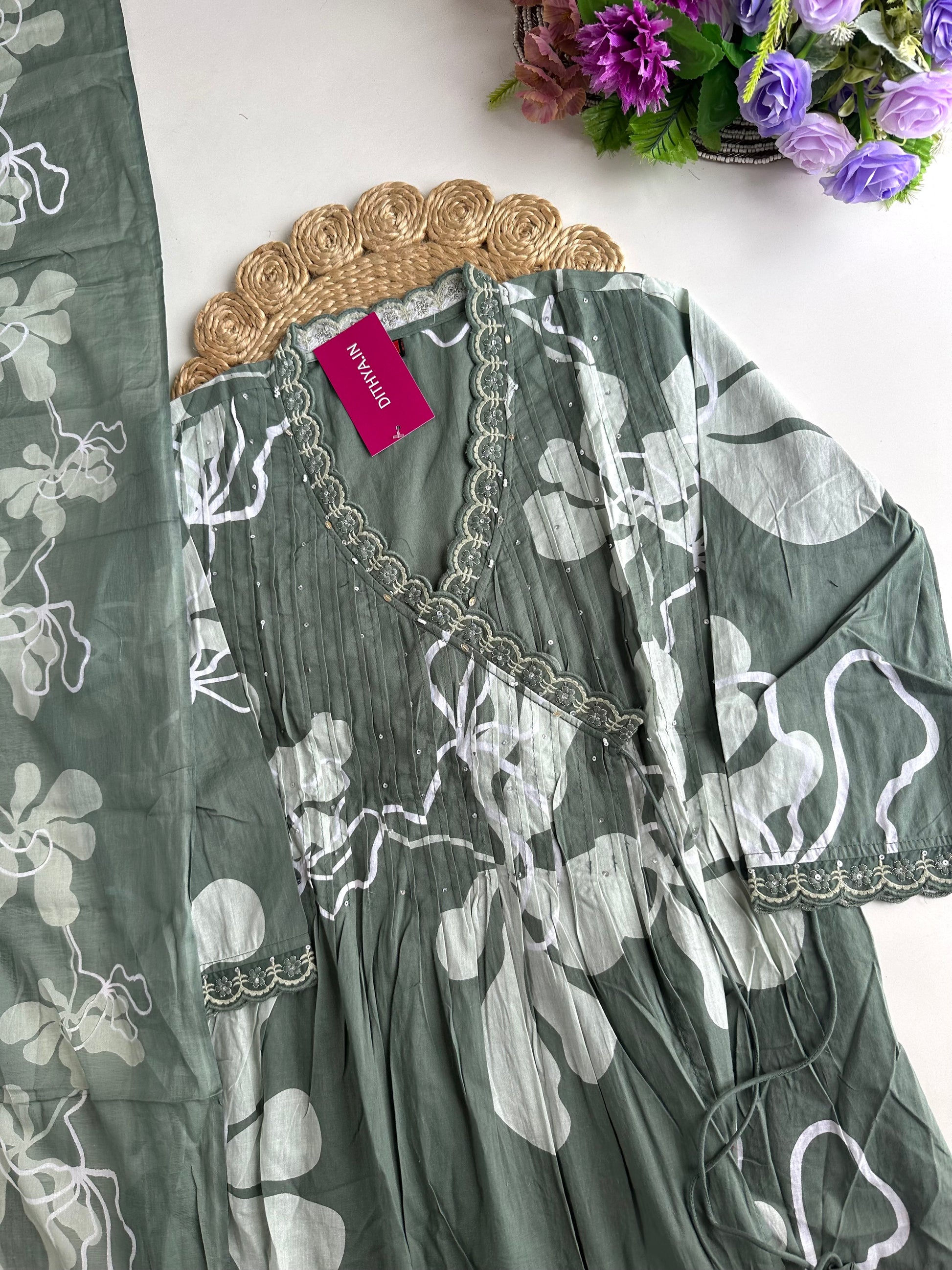 Upgrade your ethnic wardrobe with our K395 - Mul cotton Anarkali set. Made from high-quality mul cotton, this Anarkali comes with comfortable pants and a stylish dupatta, making it perfect for all occasions. Embrace elegance, comfort, and style with this versatile outfit.