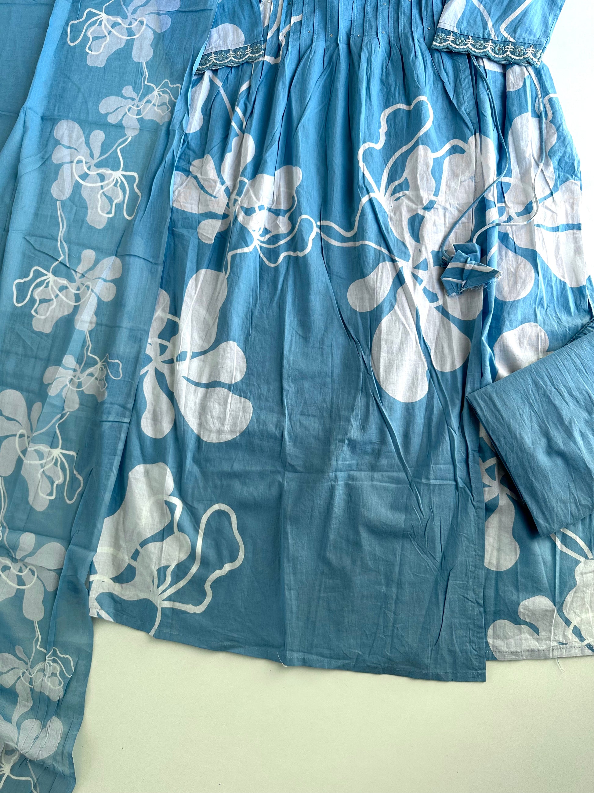 K395 - Mul cotton Anarkali with pants and dupatta