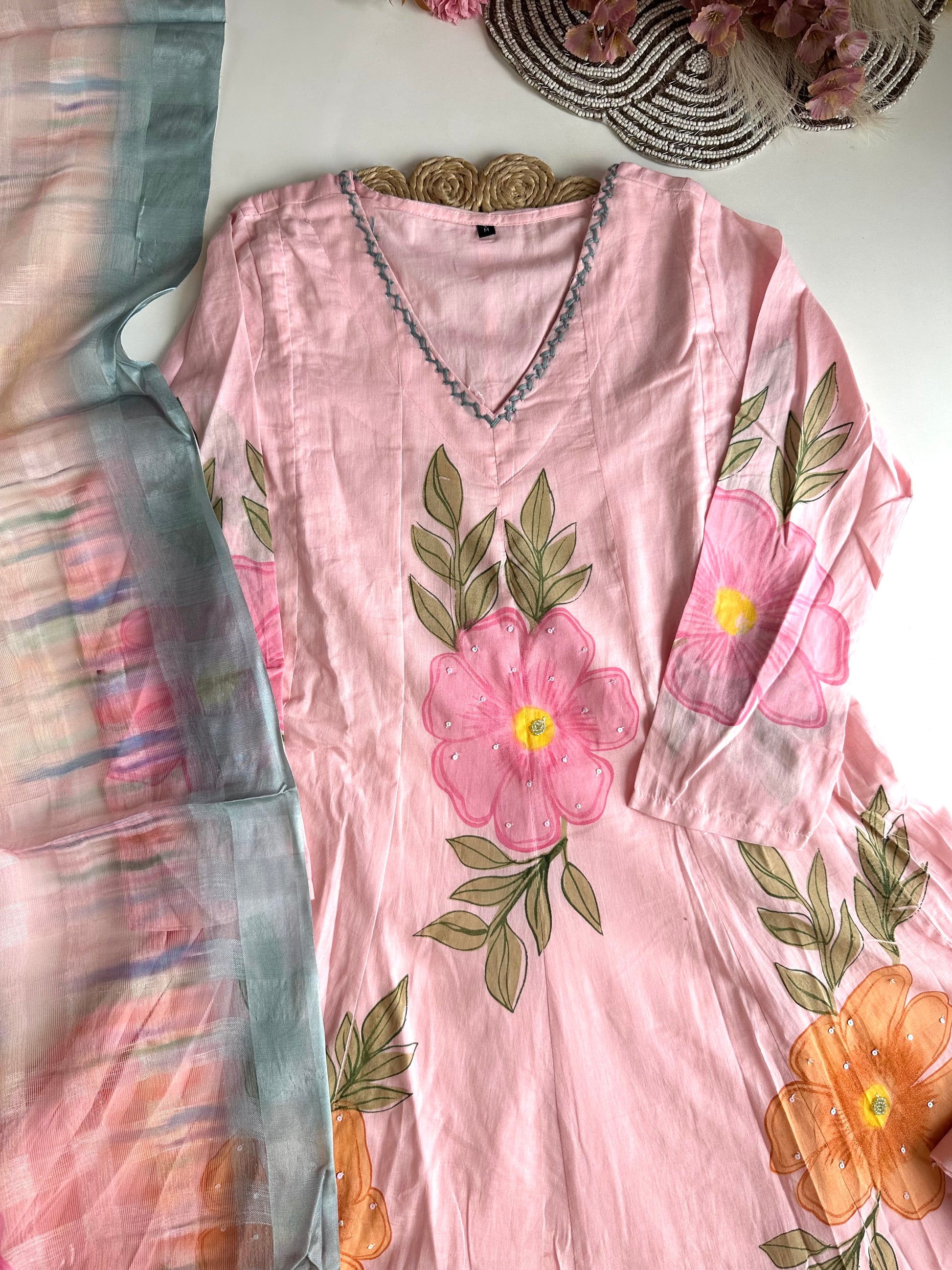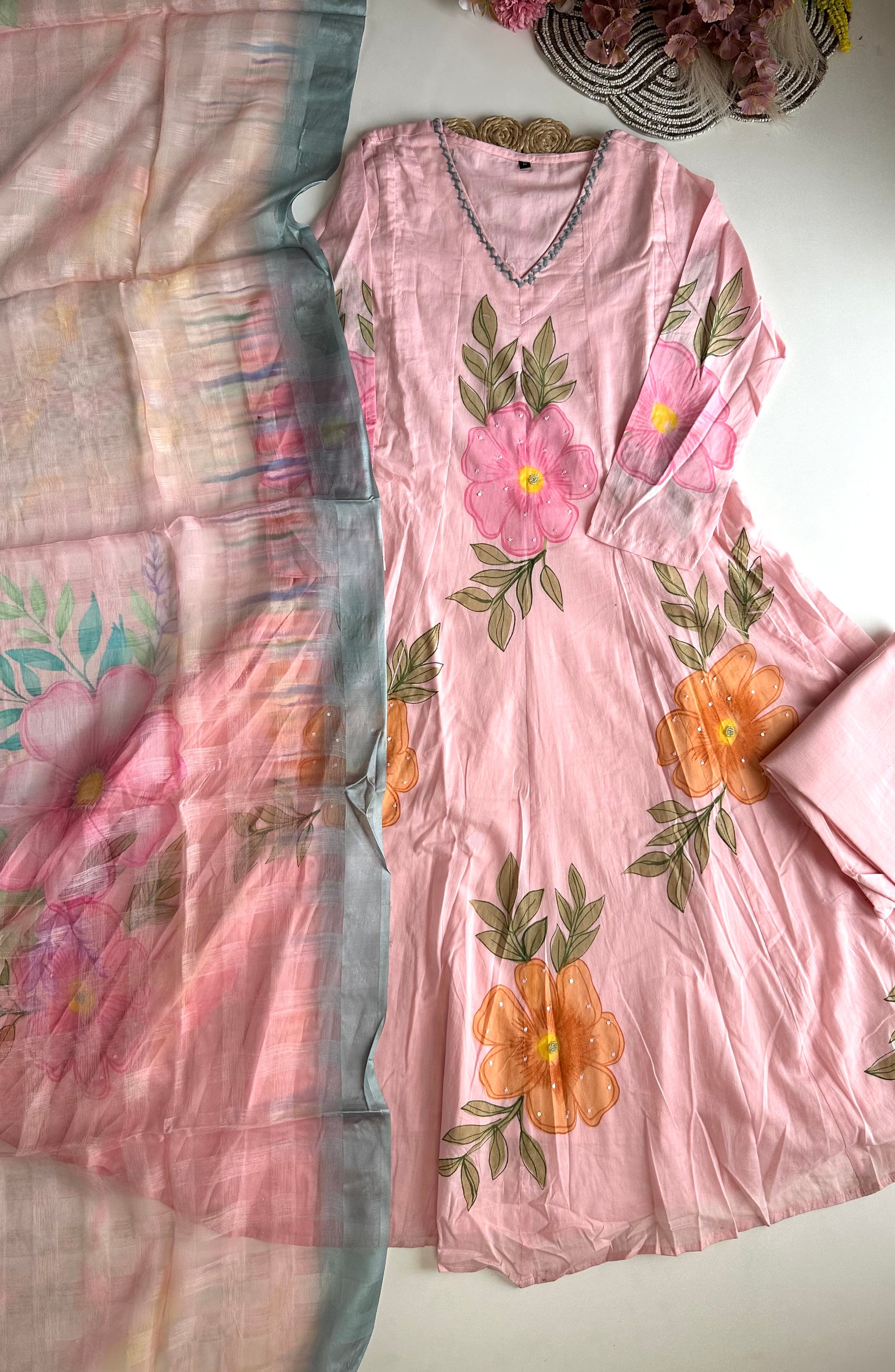 Indulge in the elegant and timeless beauty of our Mul cotton Anarkali. Made from high-quality Mul cotton, this versatile garment comes with matching pants and a dupatta. Perfect for any occasion, its soft fabric offers both comfort and style. Elevate your wardrobe with this must-have piece.
