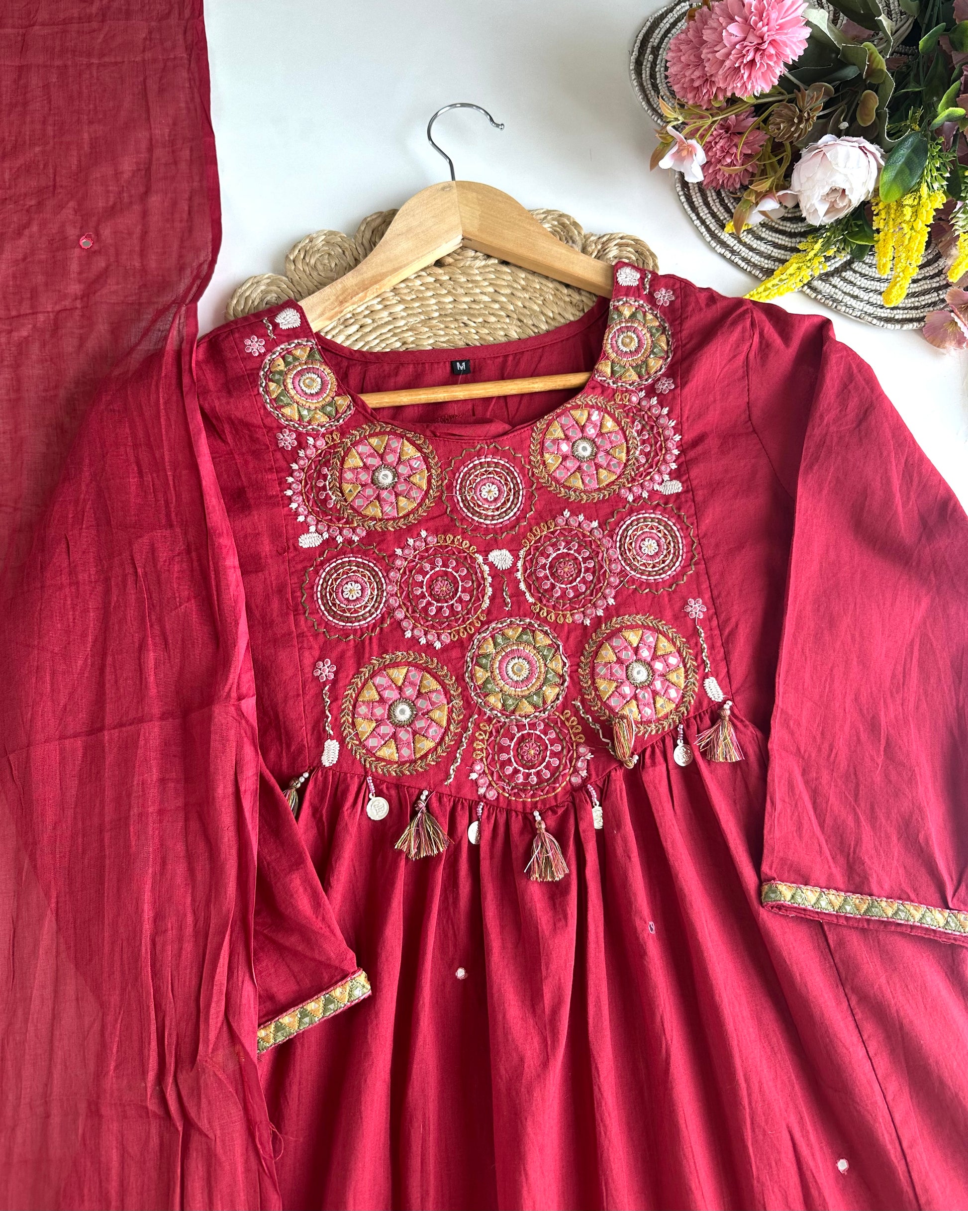 K464 - Mul Cotton Anarkali with pants and dupatta