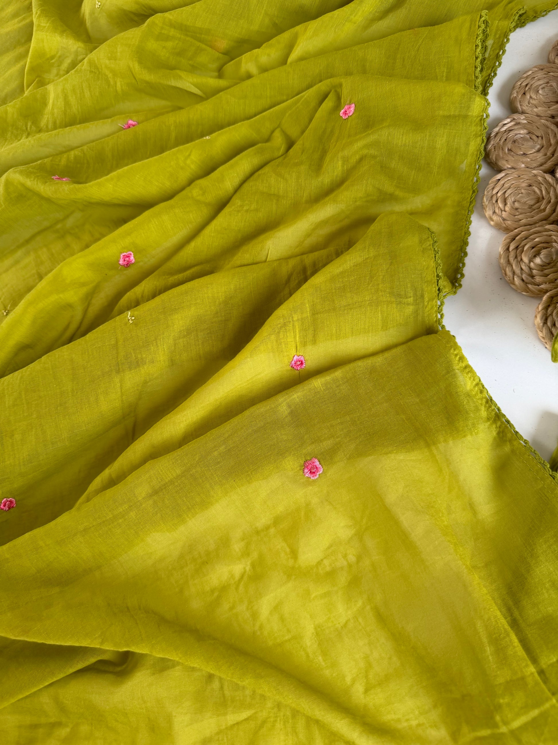 K630 - Mul cotton embroidered Aline Kurti with pants and dupatta