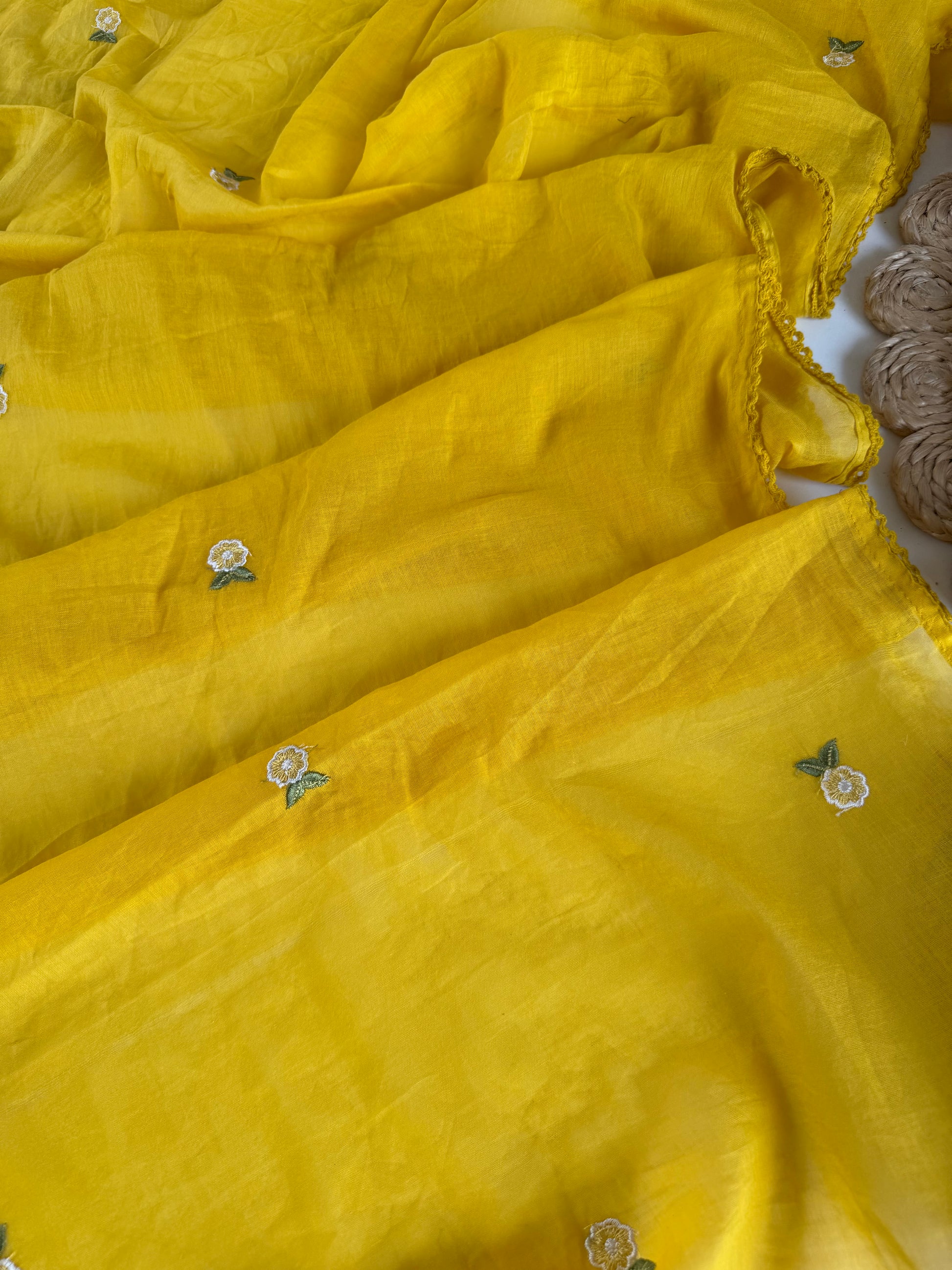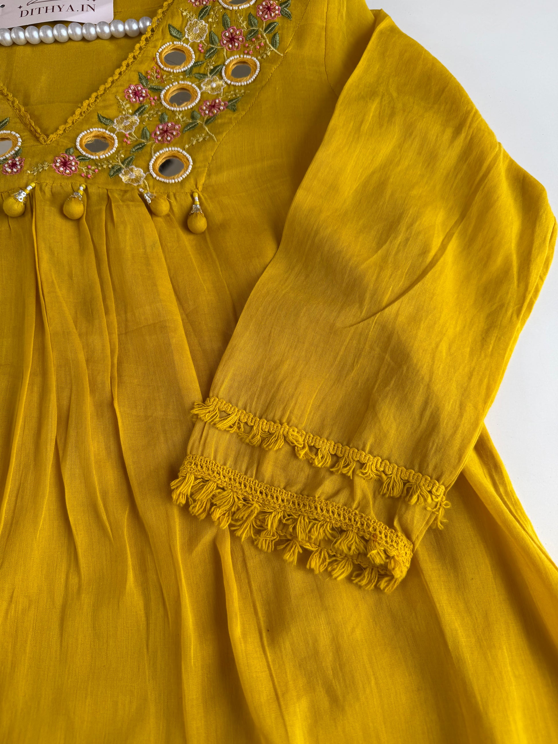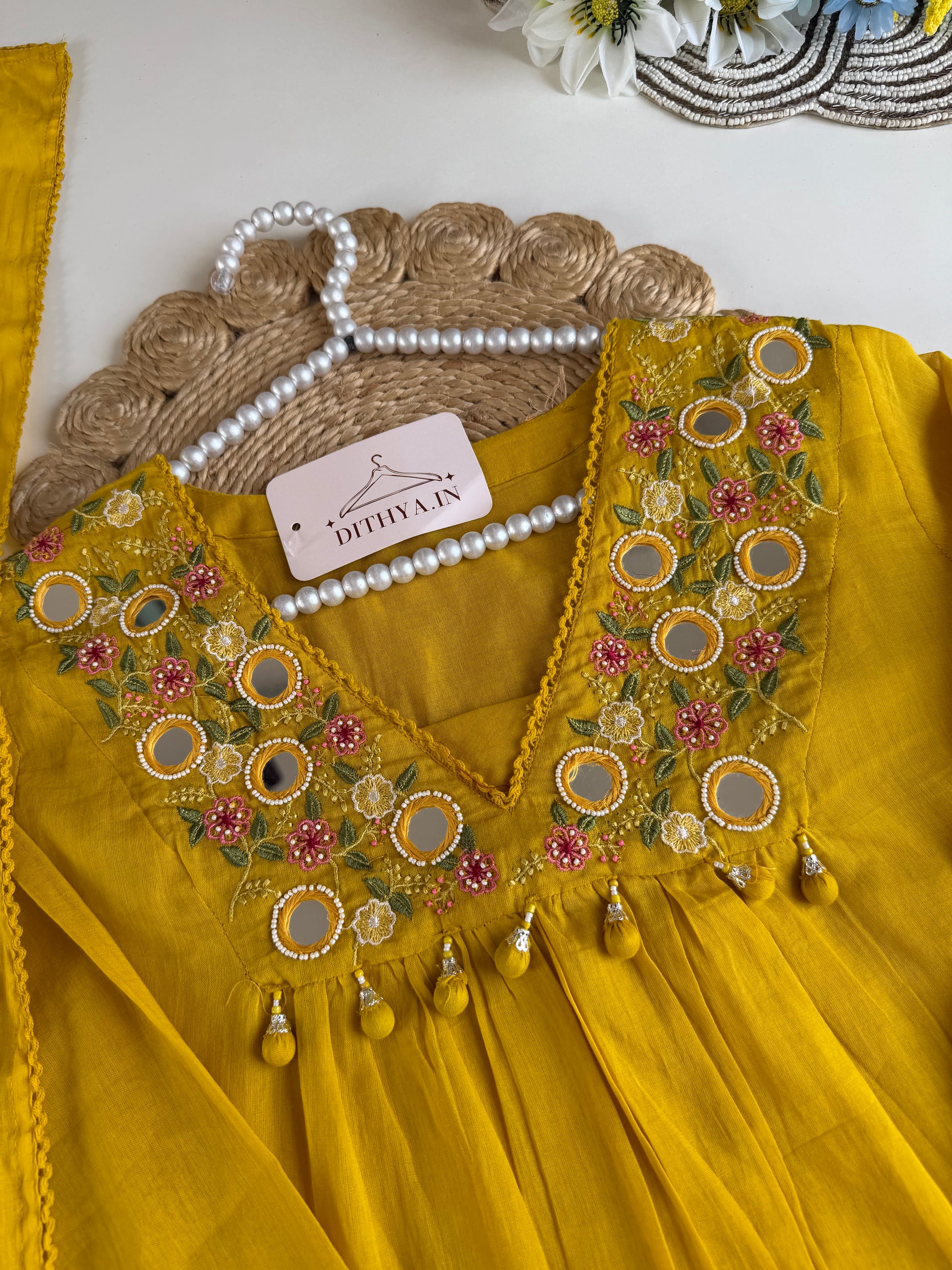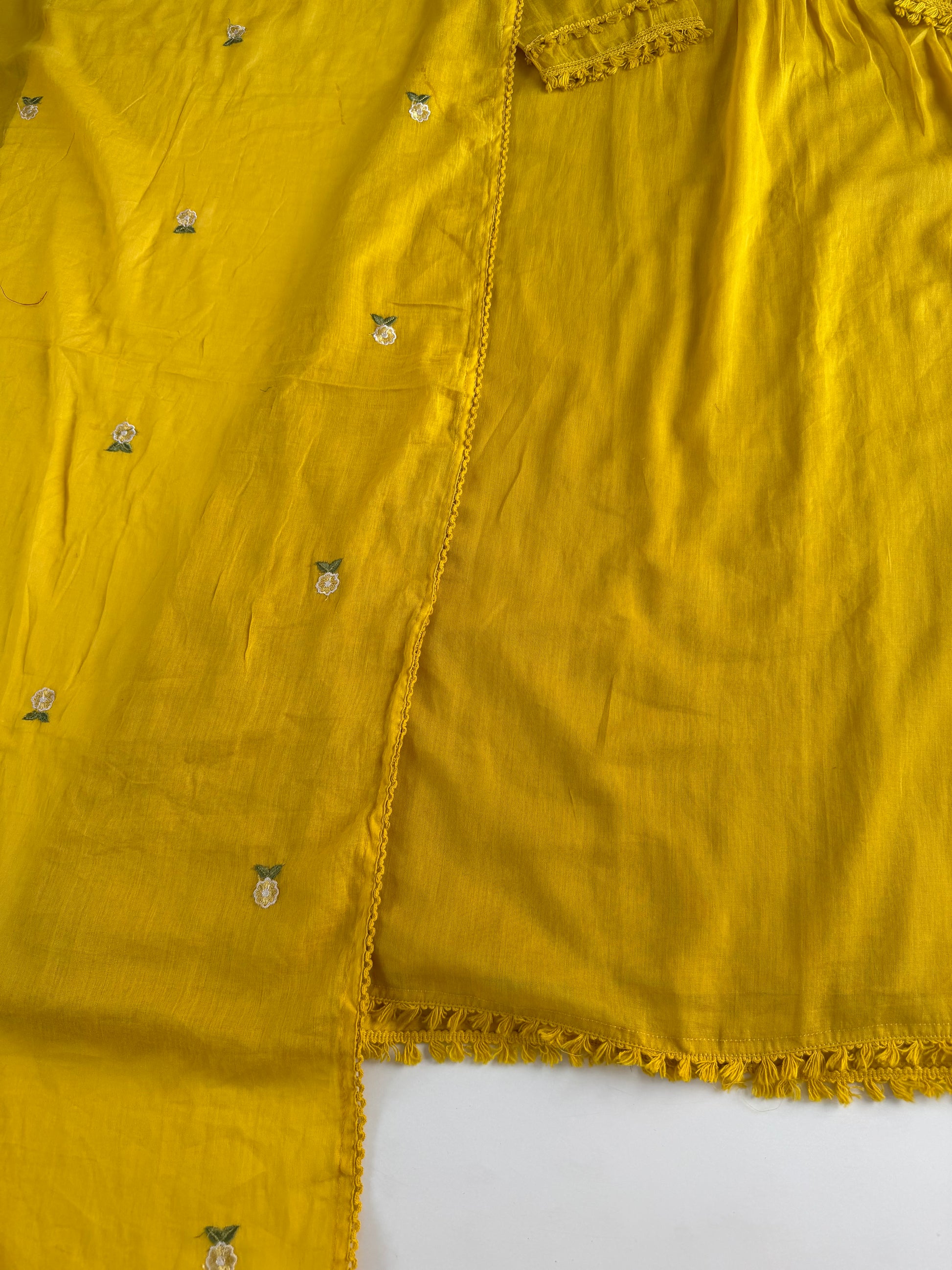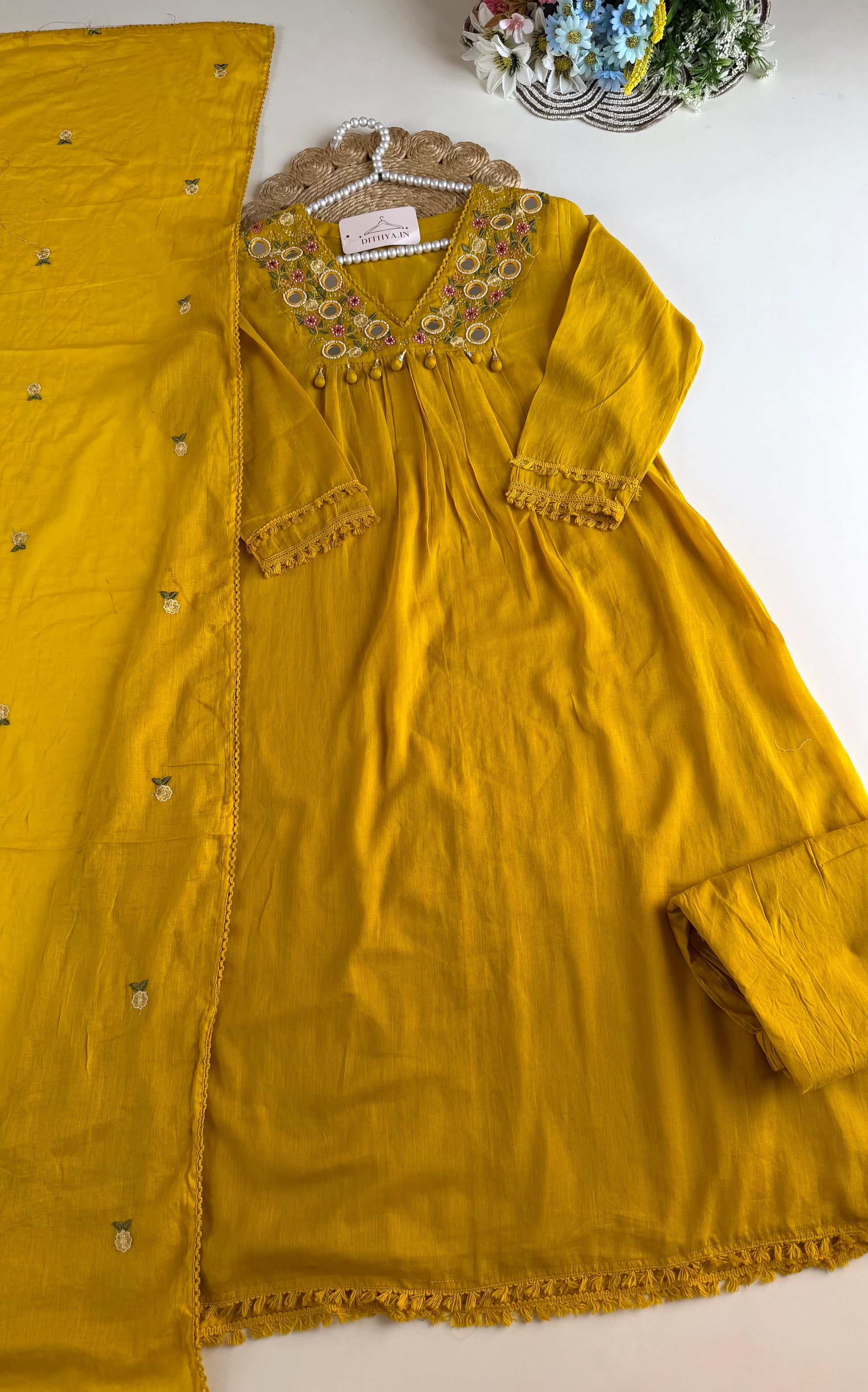 K631 - Mul cotton embroidered Aline Kurti with pants and dupatta