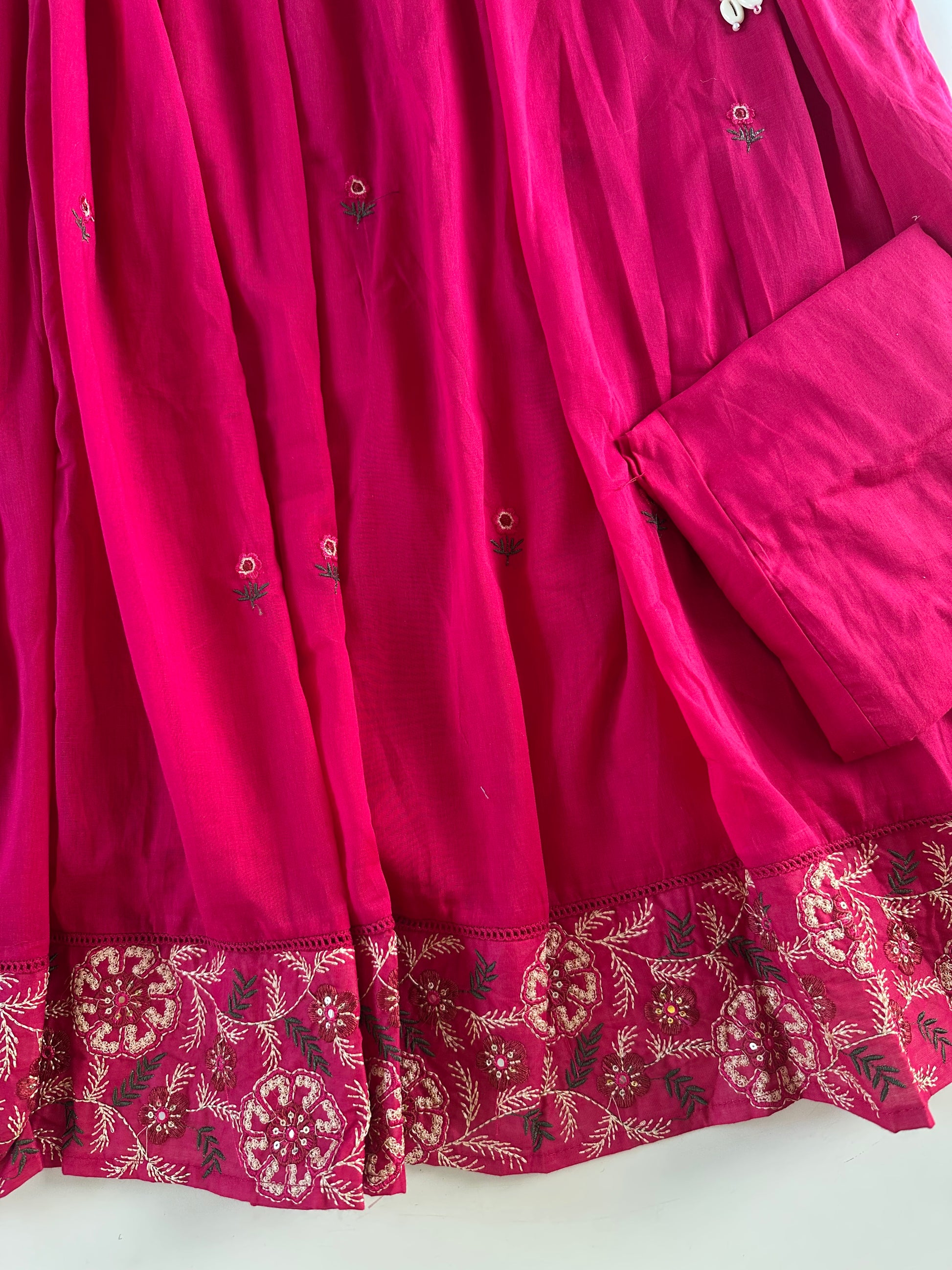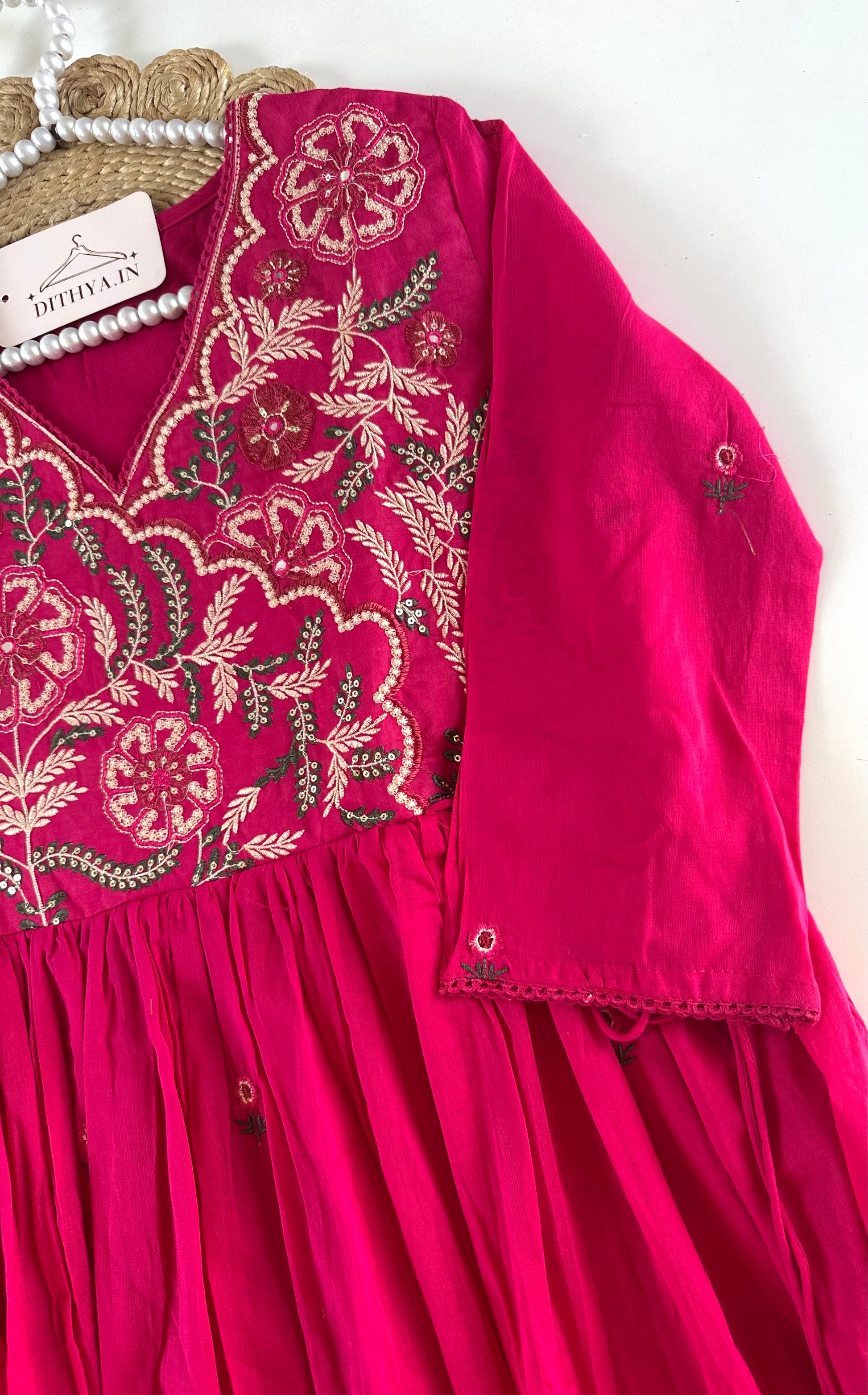 K694 - Mul cotton embroidered Anarkali with pants and dupatta