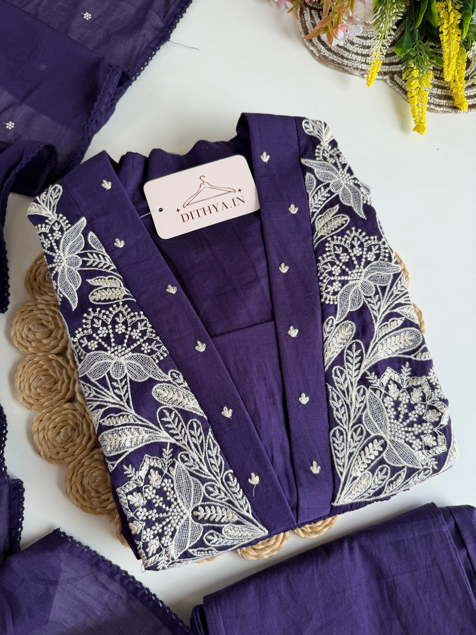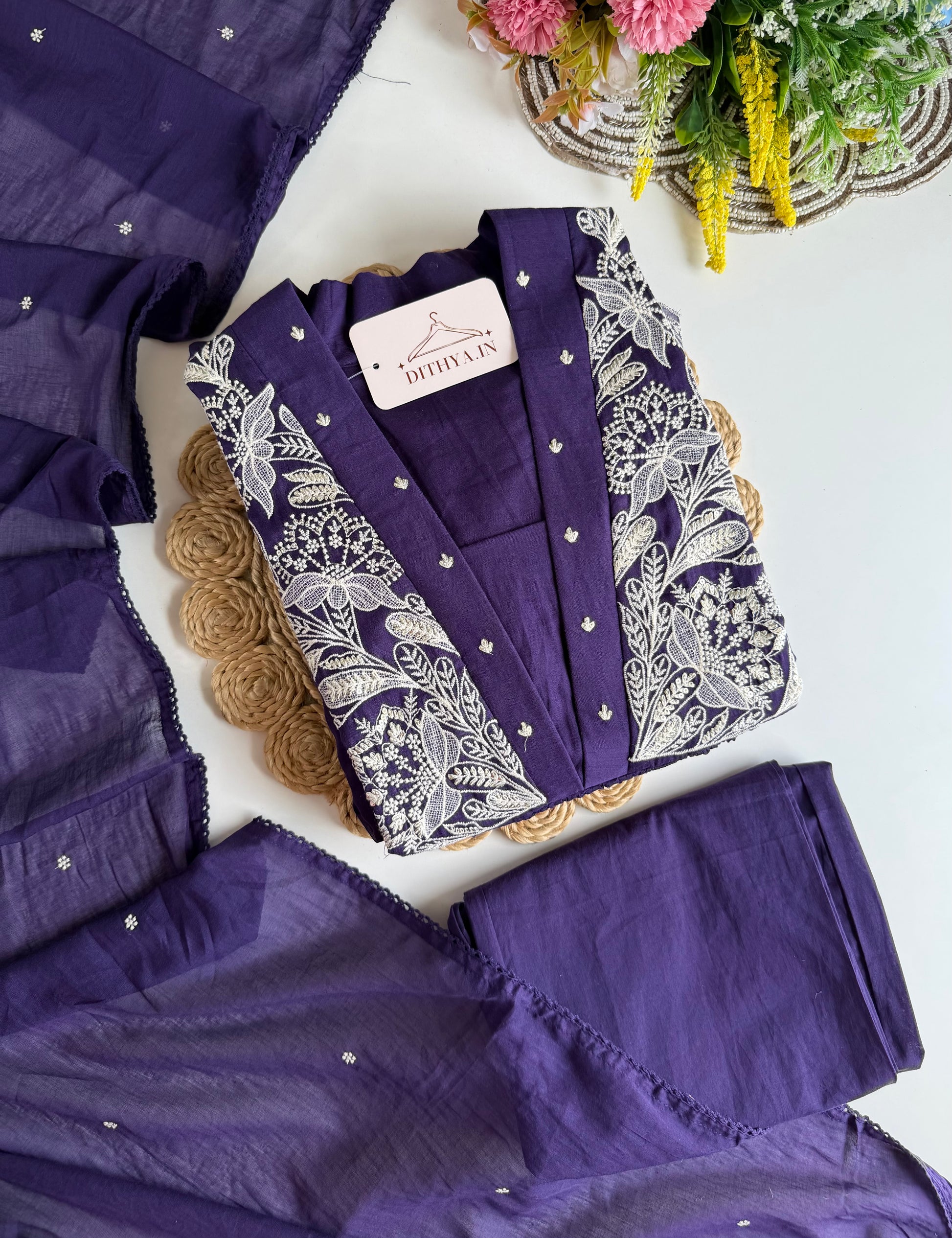 Expertly crafted from luxurious mul cotton, this embroidered Anarkali comes with matching pants and a dupatta for a complete and elegant look. The lightweight and breathable fabric provides comfort and the intricate embroidery adds a touch of sophistication. Perfect for any occasion, this Anarkali is a must-have in your wardrobe.