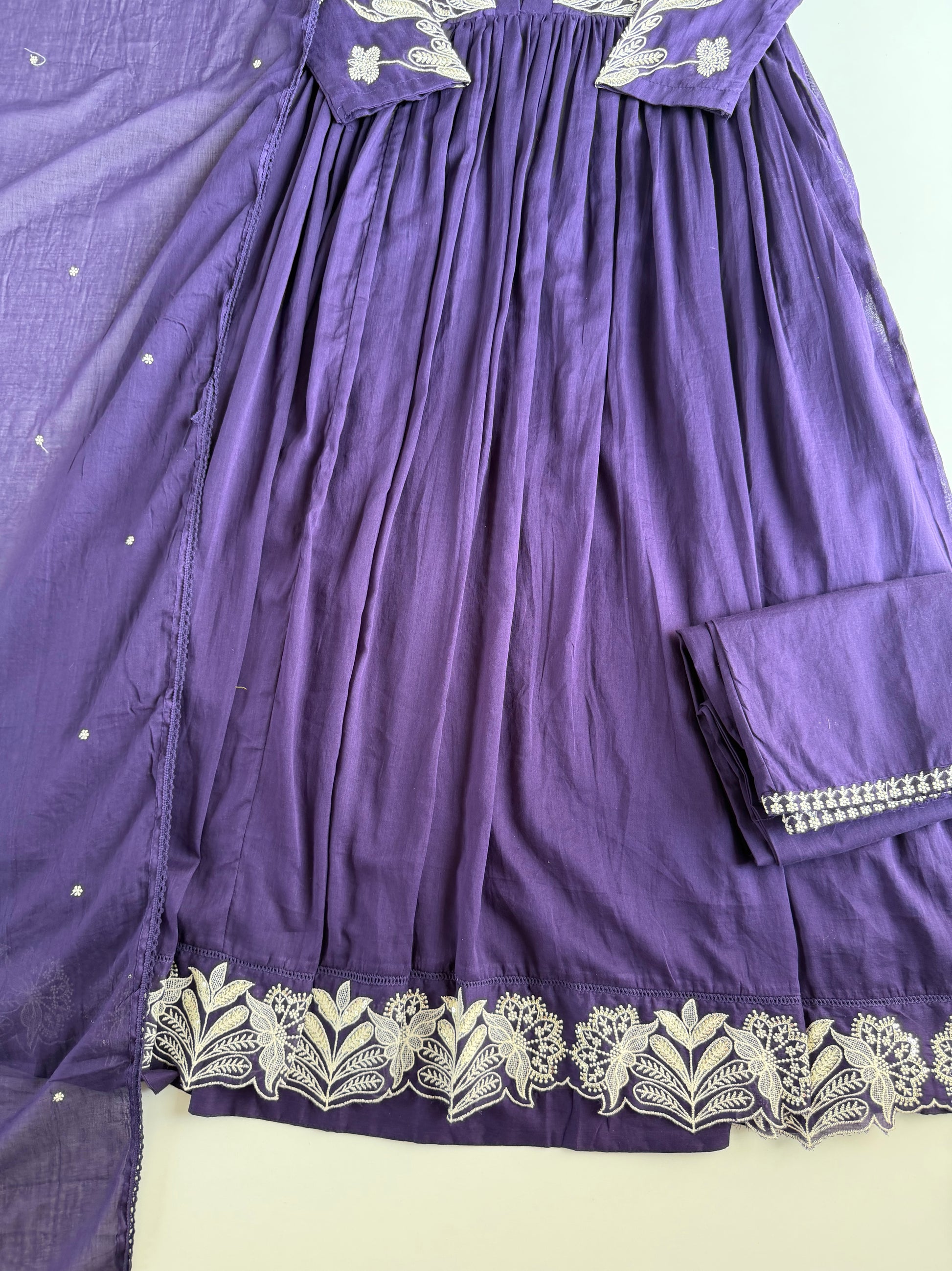 K650 - Mul cotton embroidered Anarkali with pants and dupatta