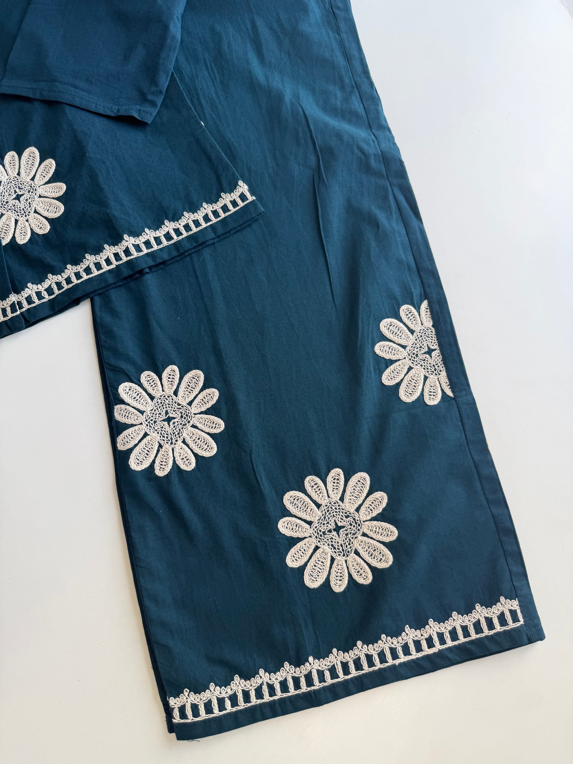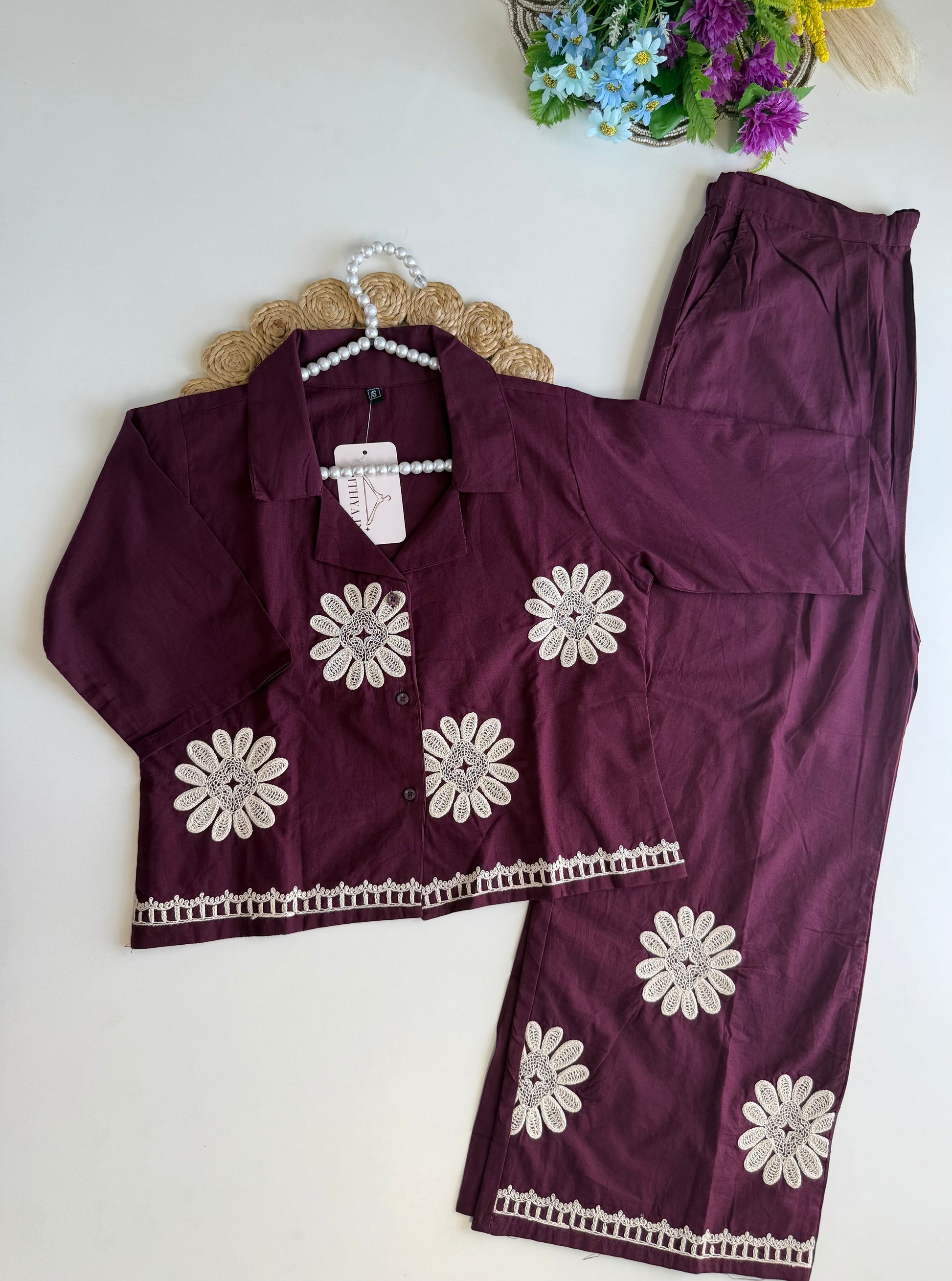 Enhance your wardrobe with our Mul cotton embroidered coord set. Made with high-quality mul cotton, this set features elegant embroidered details. Enjoy the comfort of cotton while showcasing your unique style. Perfect for any occasion, this coord set will elevate your fashion game effortlessly.
