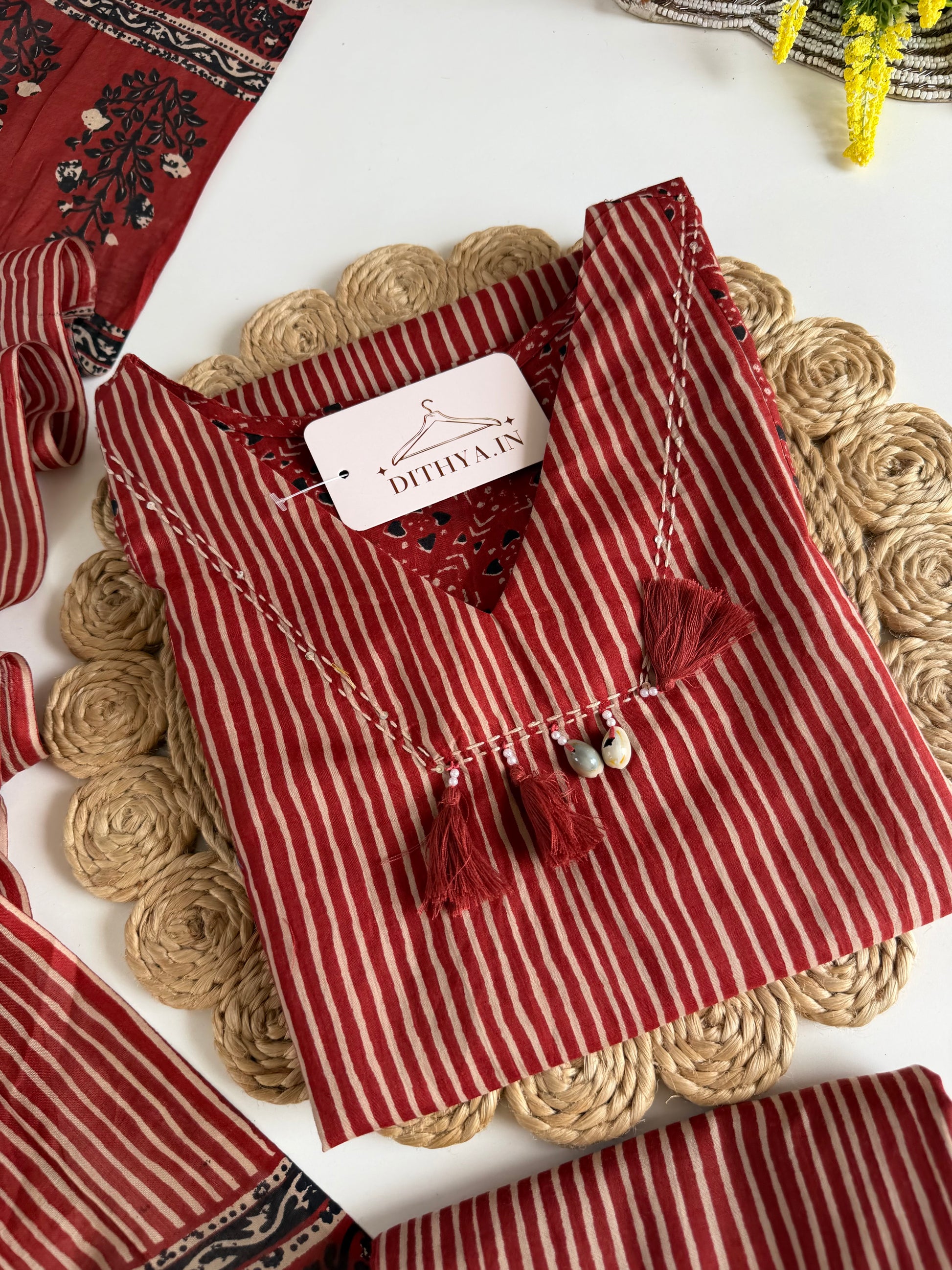 K680 - Mul cotton printed straight Kurti with pants and dupatta