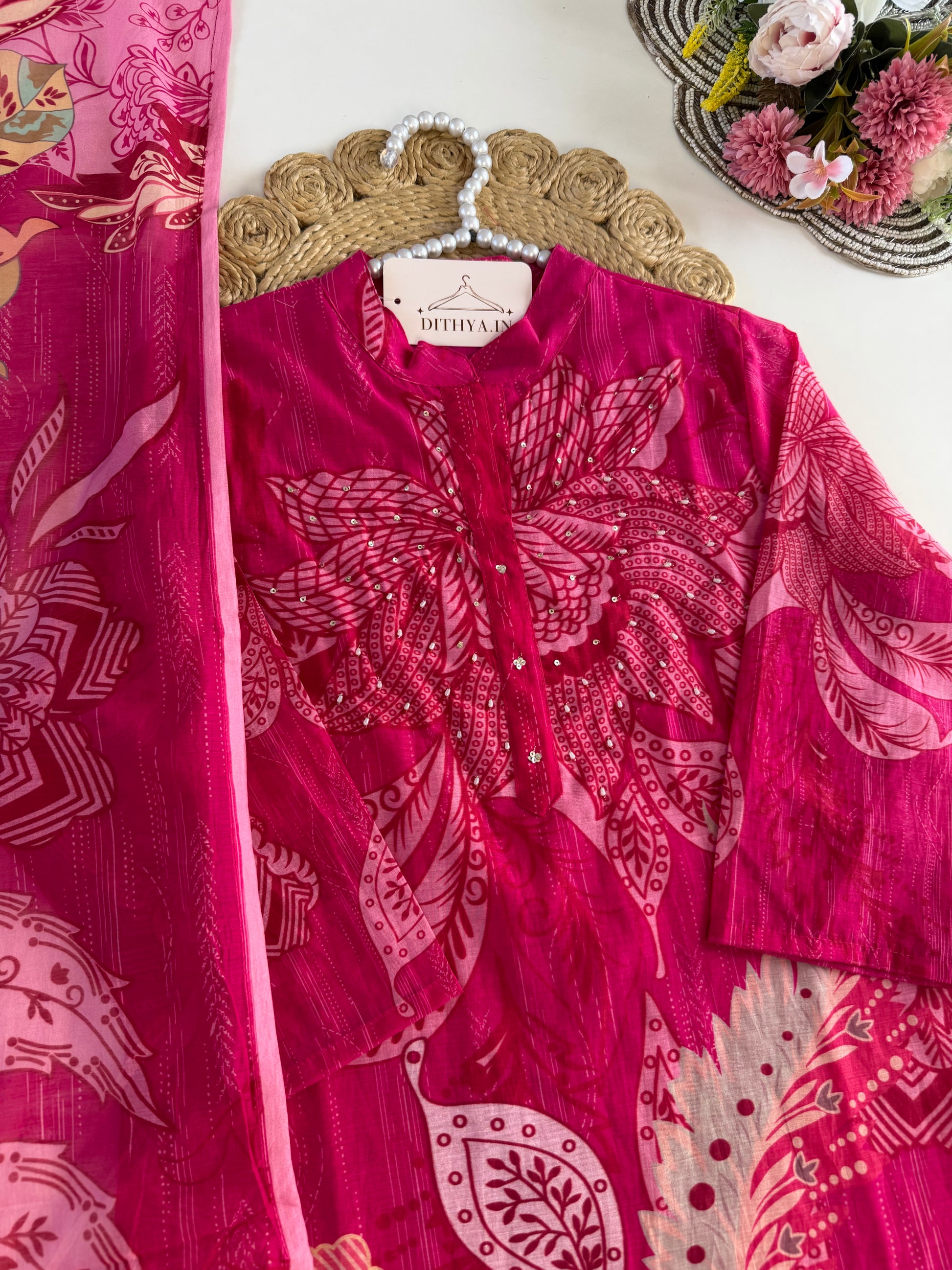 Elevate your ethnic wardrobe with this sophisticated mul cotton ensemble. The straight-cut kurti features intricate embroidery that adds timeless elegance, while the breathable mul cotton fabric ensures comfort throughout the day. This complete three-piece set includes coordinated pants and a flowing dupatta, making it perfect for festive occasions, family gatherings, or everyday wear. The lightweight construction and natural fabric properties make it ideal for warm climates, offering both style and practicality. A versatile addition to your traditional collection that seamlessly transitions from casual to formal settings.