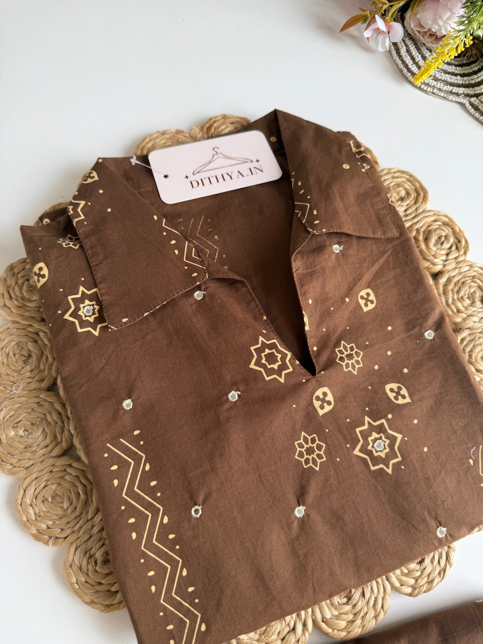 Elevate your everyday wardrobe with this versatile mul cotton printed A-line kurti paired with coordinating pants. Crafted from breathable mul cotton, this ensemble offers superior comfort and durability for all-day wear. The flattering A-line silhouette drapes beautifully while the vibrant print adds contemporary flair to your traditional look. Perfect for casual outings, work, or festive gatherings, this two-piece set combines style with practicality. The soft fabric ensures easy maintenance and long-lasting wear, making it an essential addition to your ethnic collection.