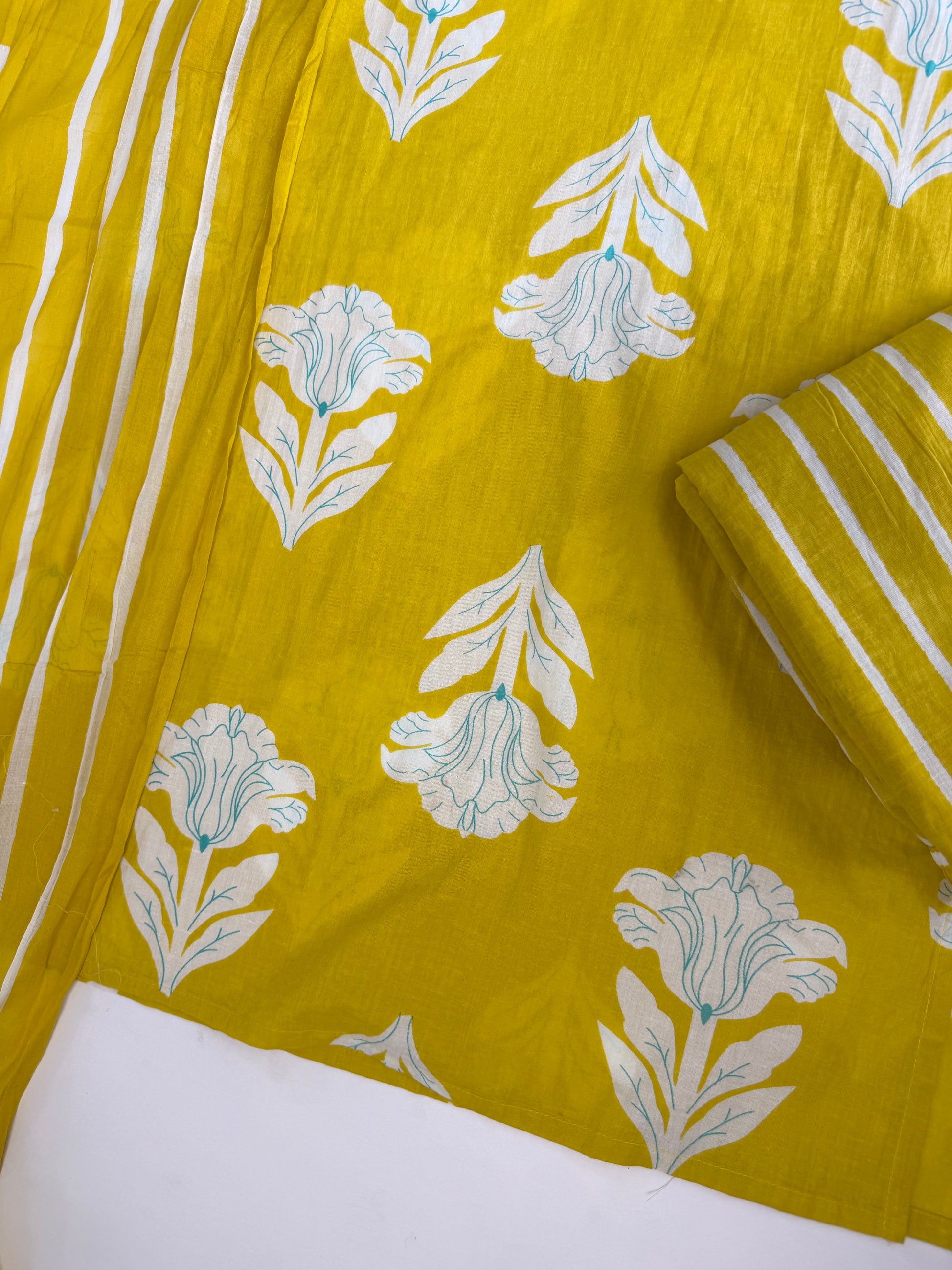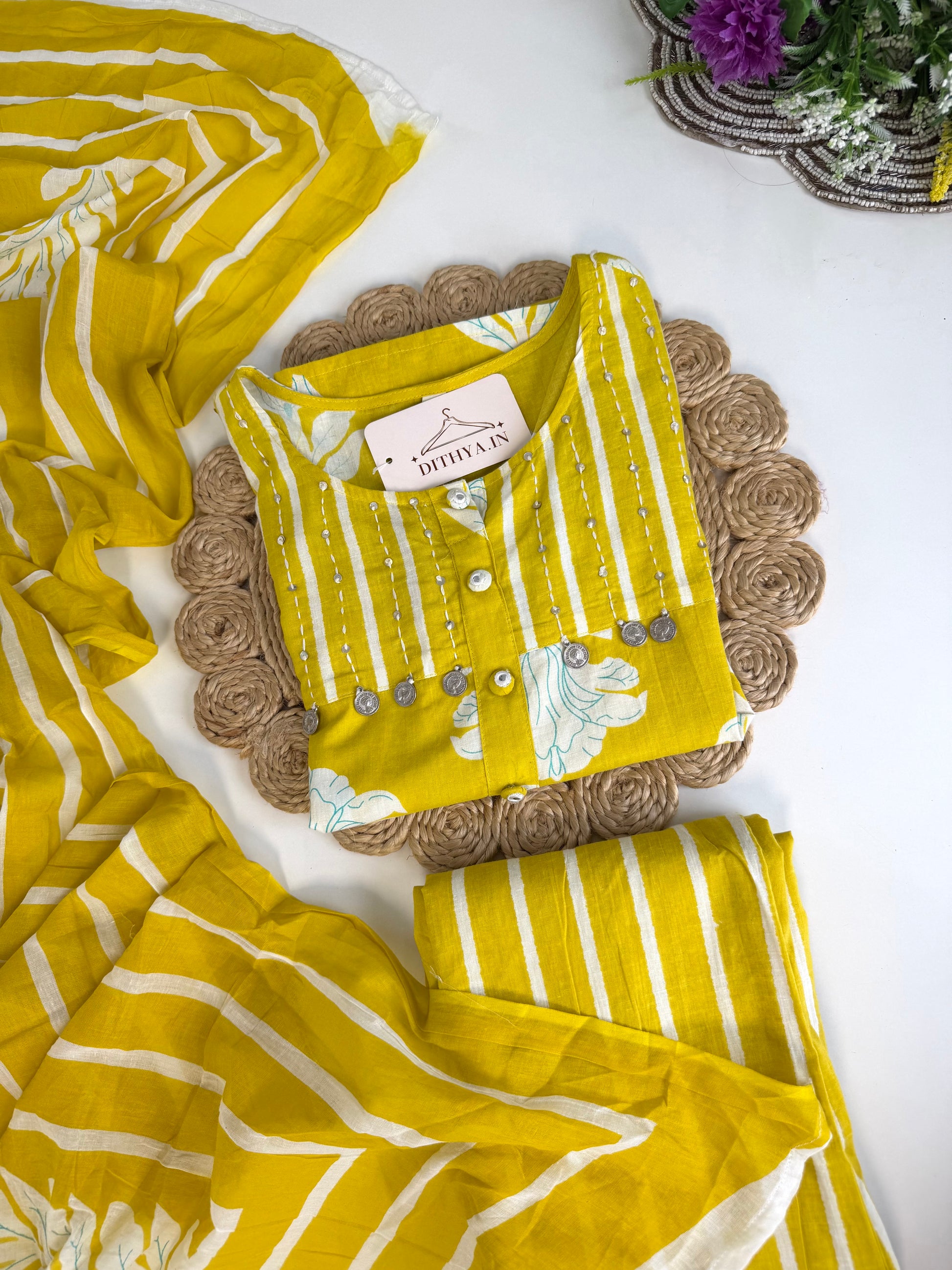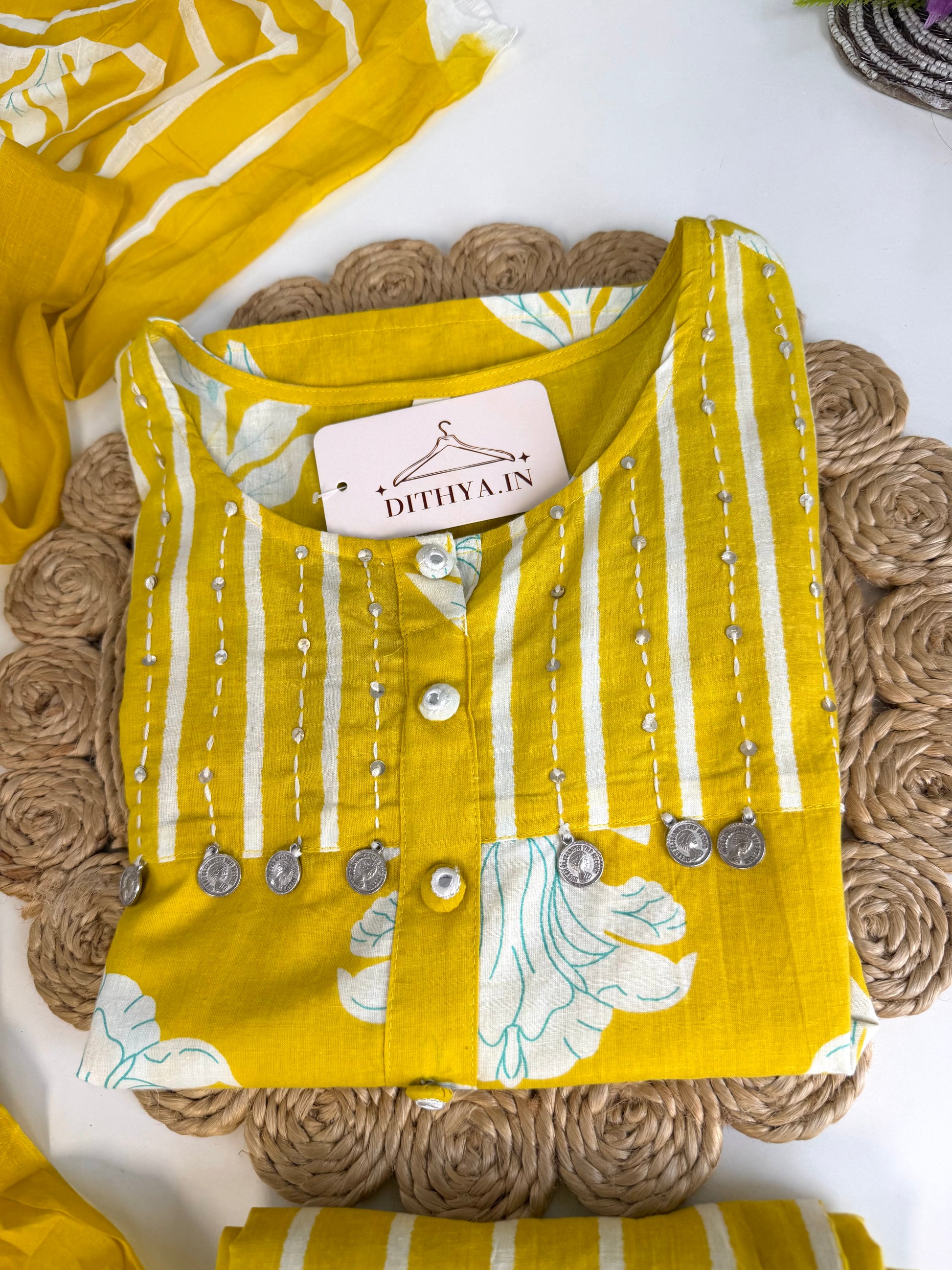 Introducing, the perfect ensemble for your everyday wear. Crafted with lightweight and airy Mul cotton, this straight Kurti comes with comfortable pants and a matching dupatta. Elevate your style with its effortless elegance and enjoy the comfort of Mul cotton.