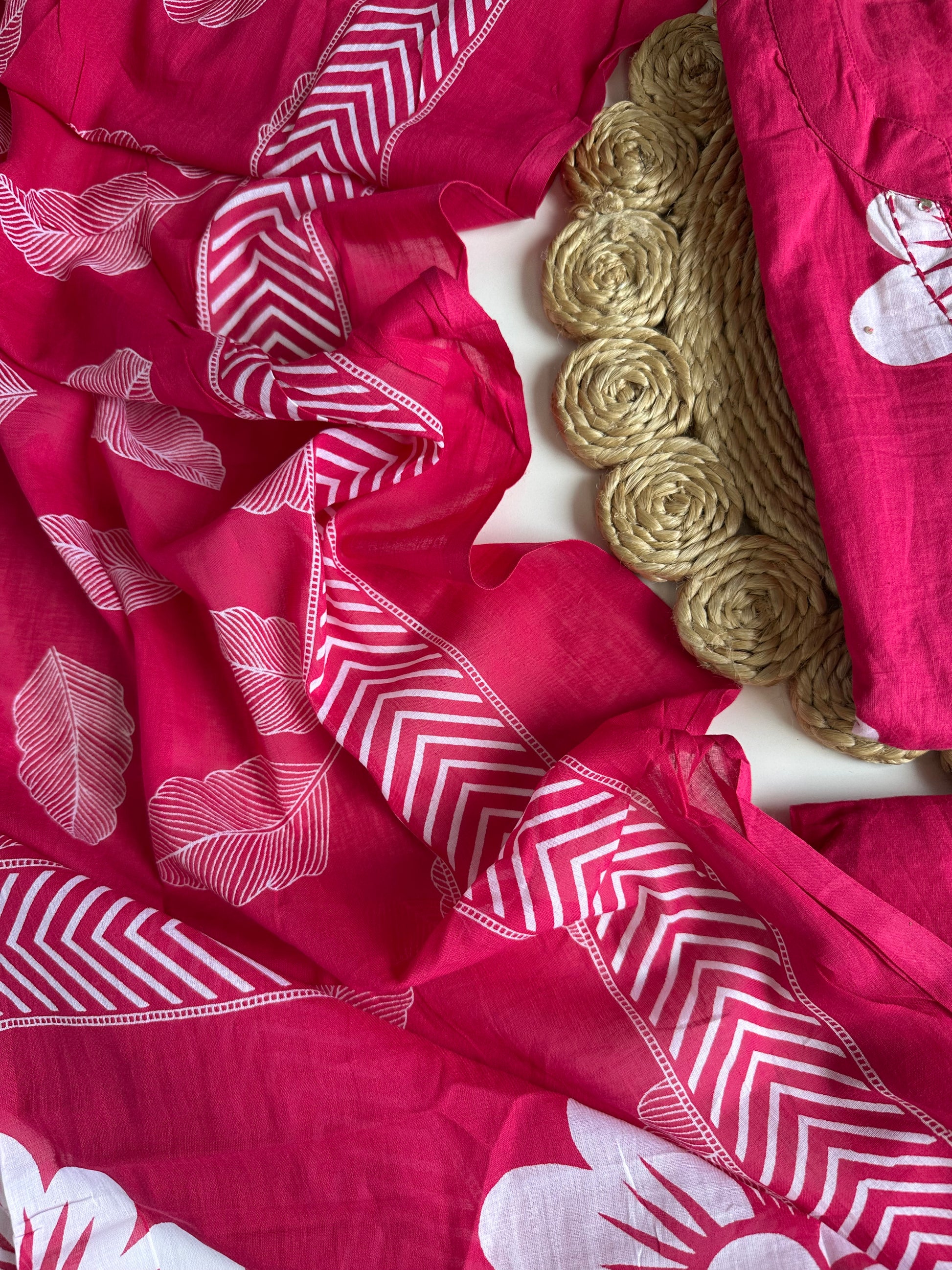 K443 - Mul Cotton straight Kurti with pants and dupatta