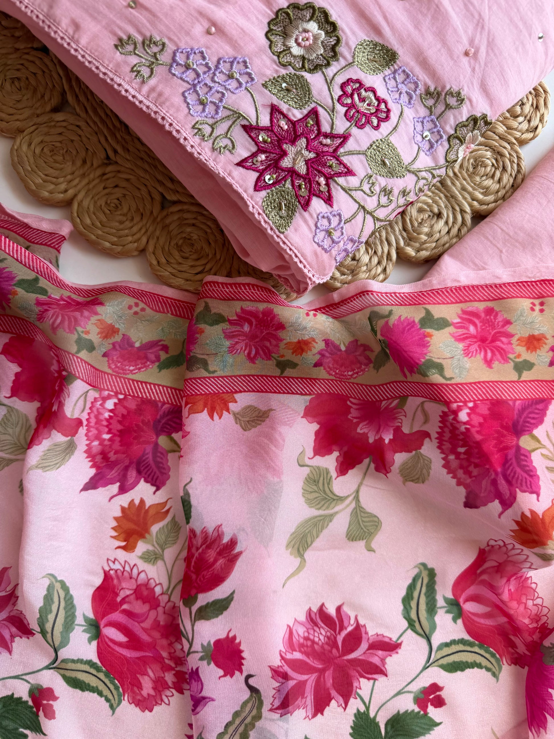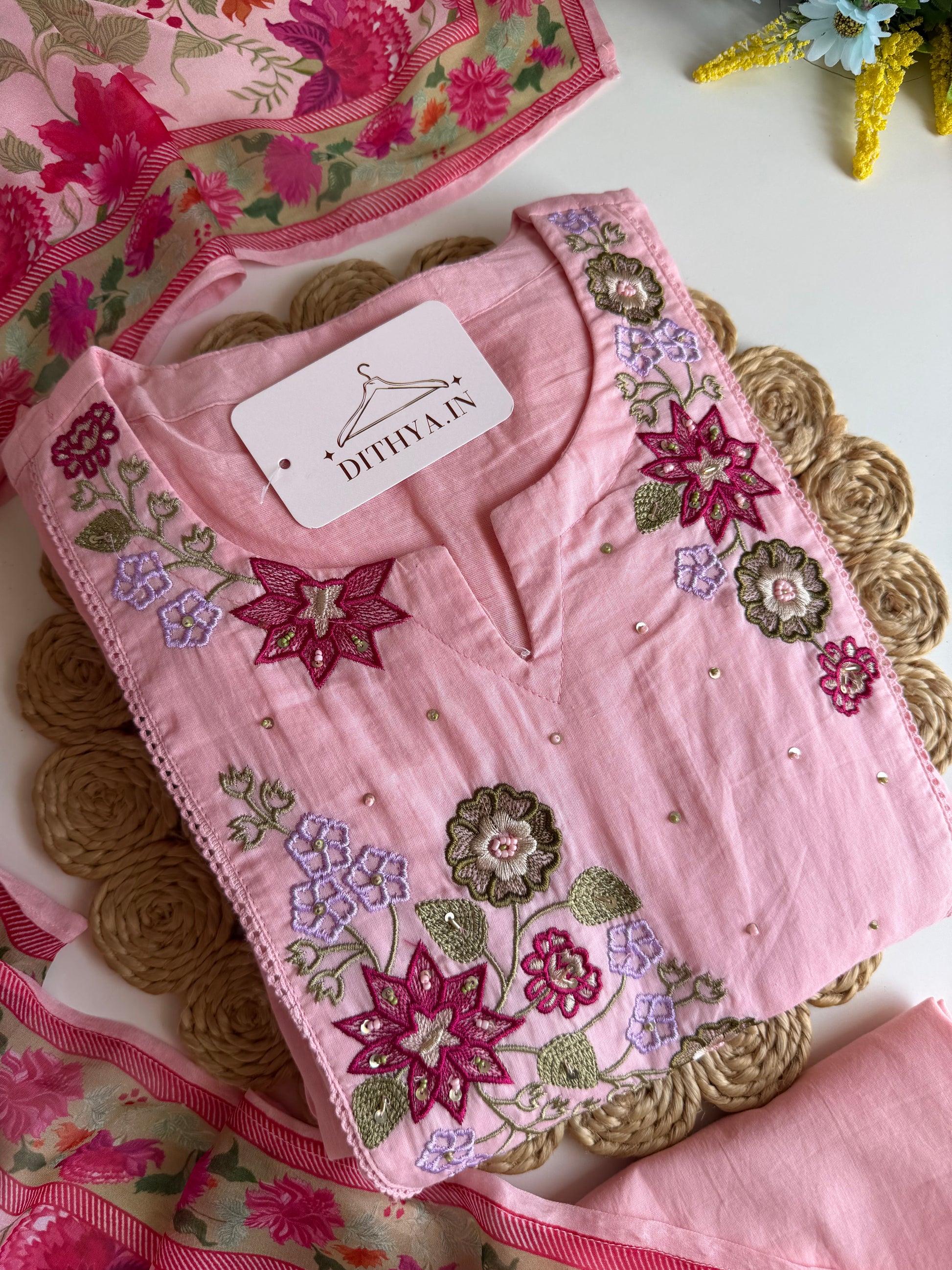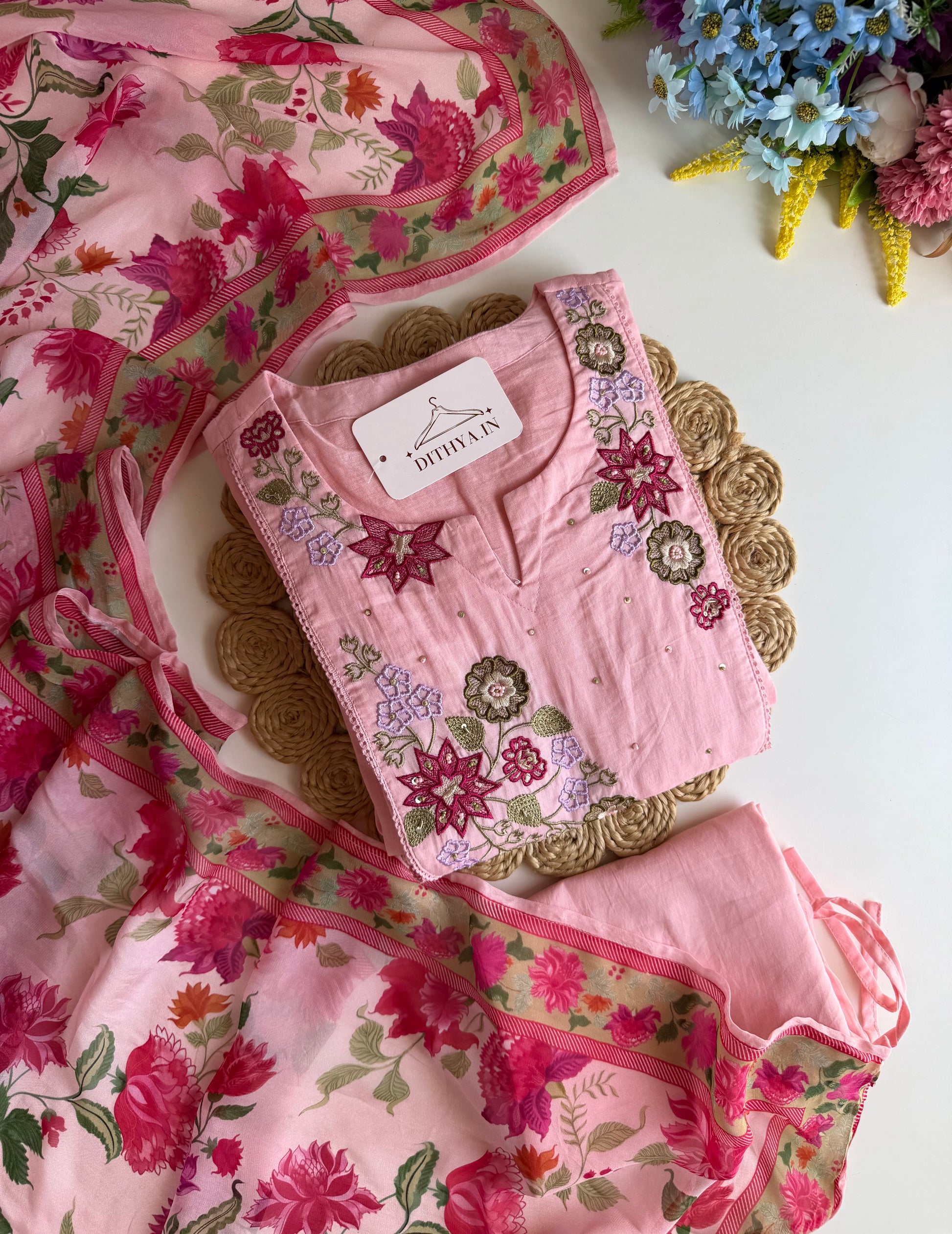 K089 - Mulmul cotton embroidered Anarkali with pants and dupatta