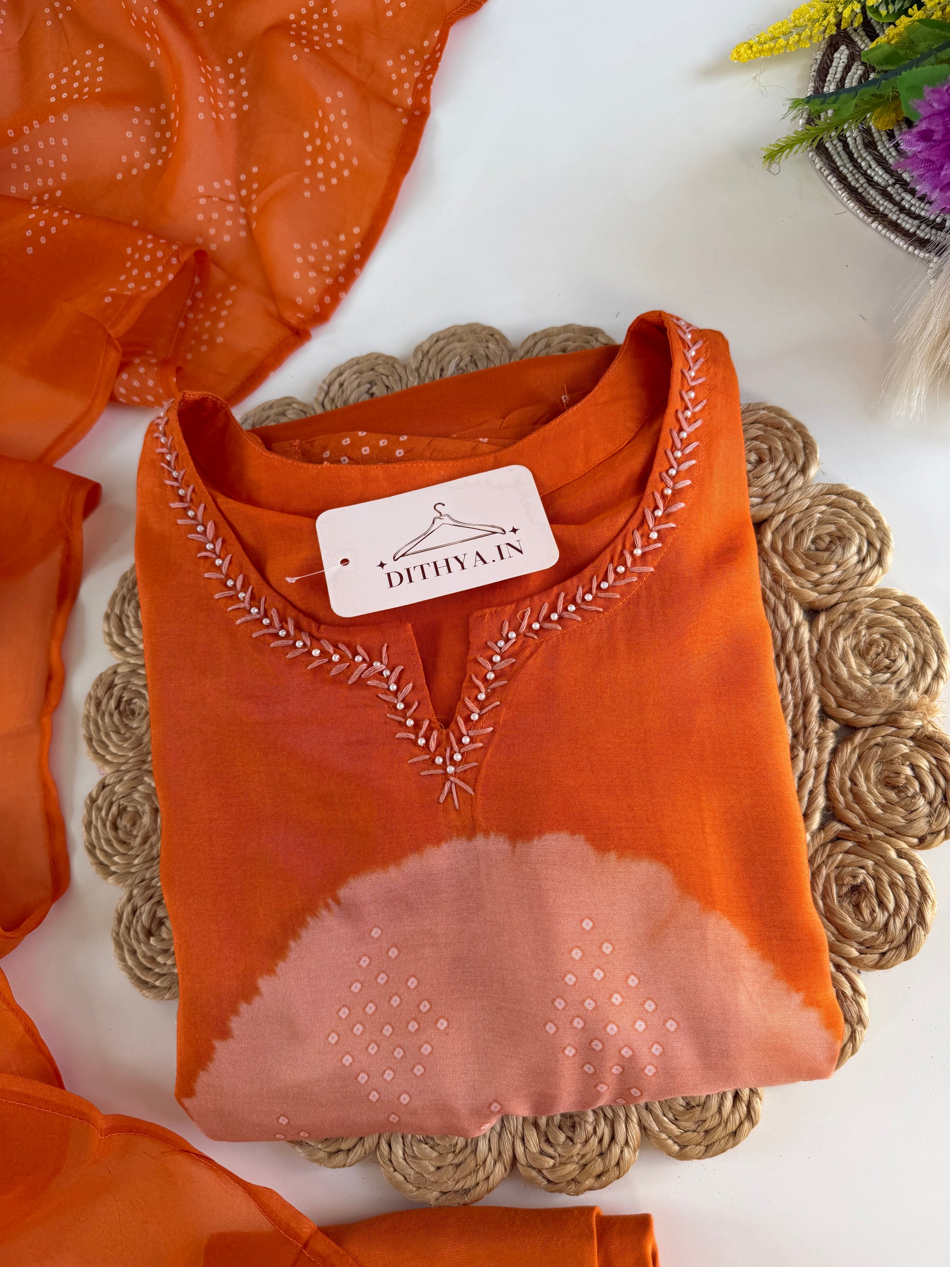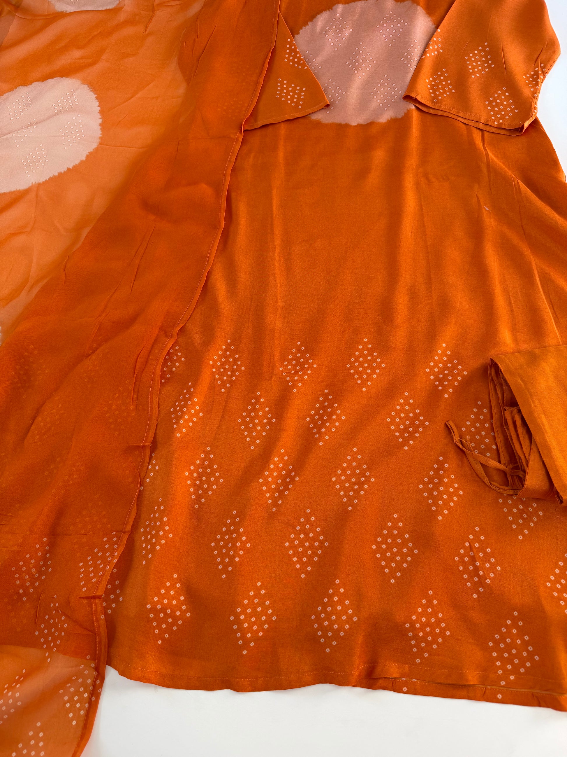 K599 - Muslin bandhini Aline Kurti with pants and dupatta