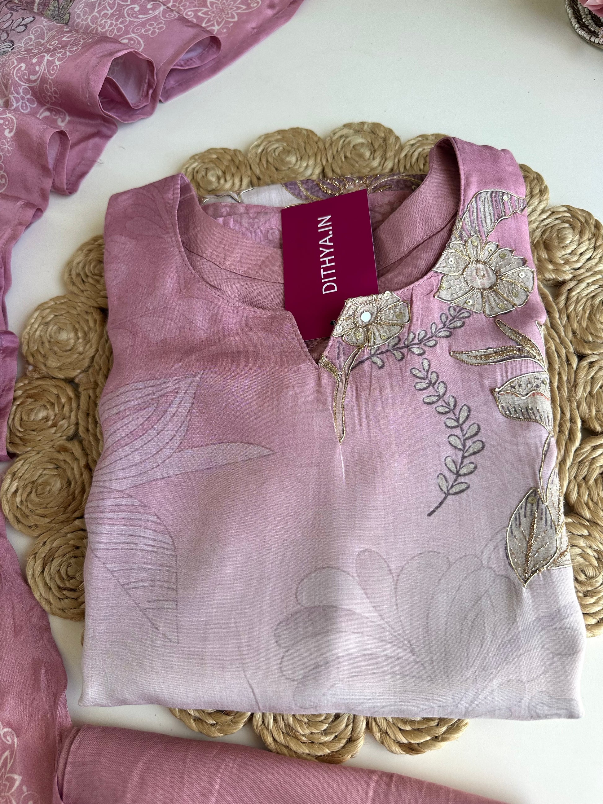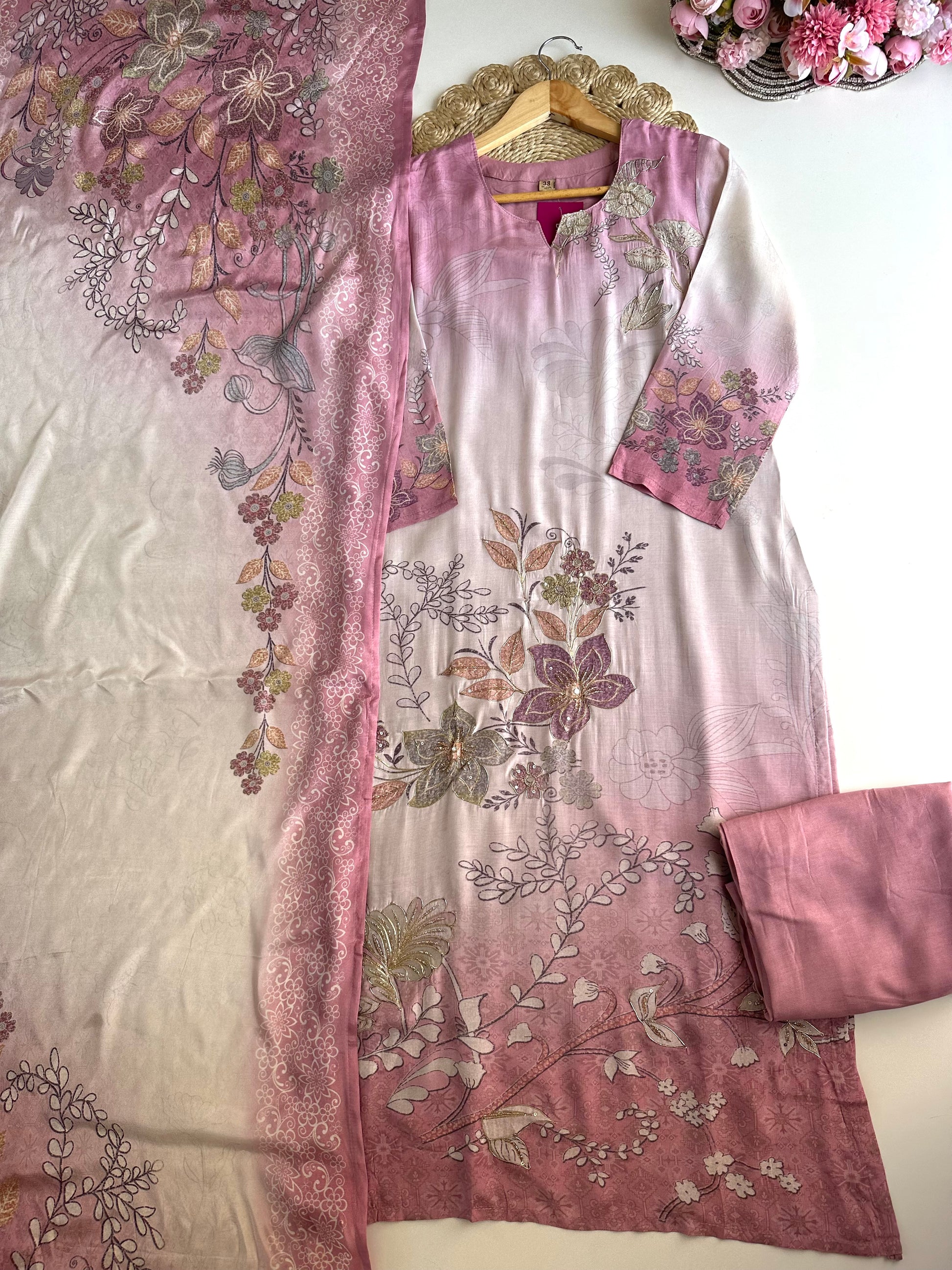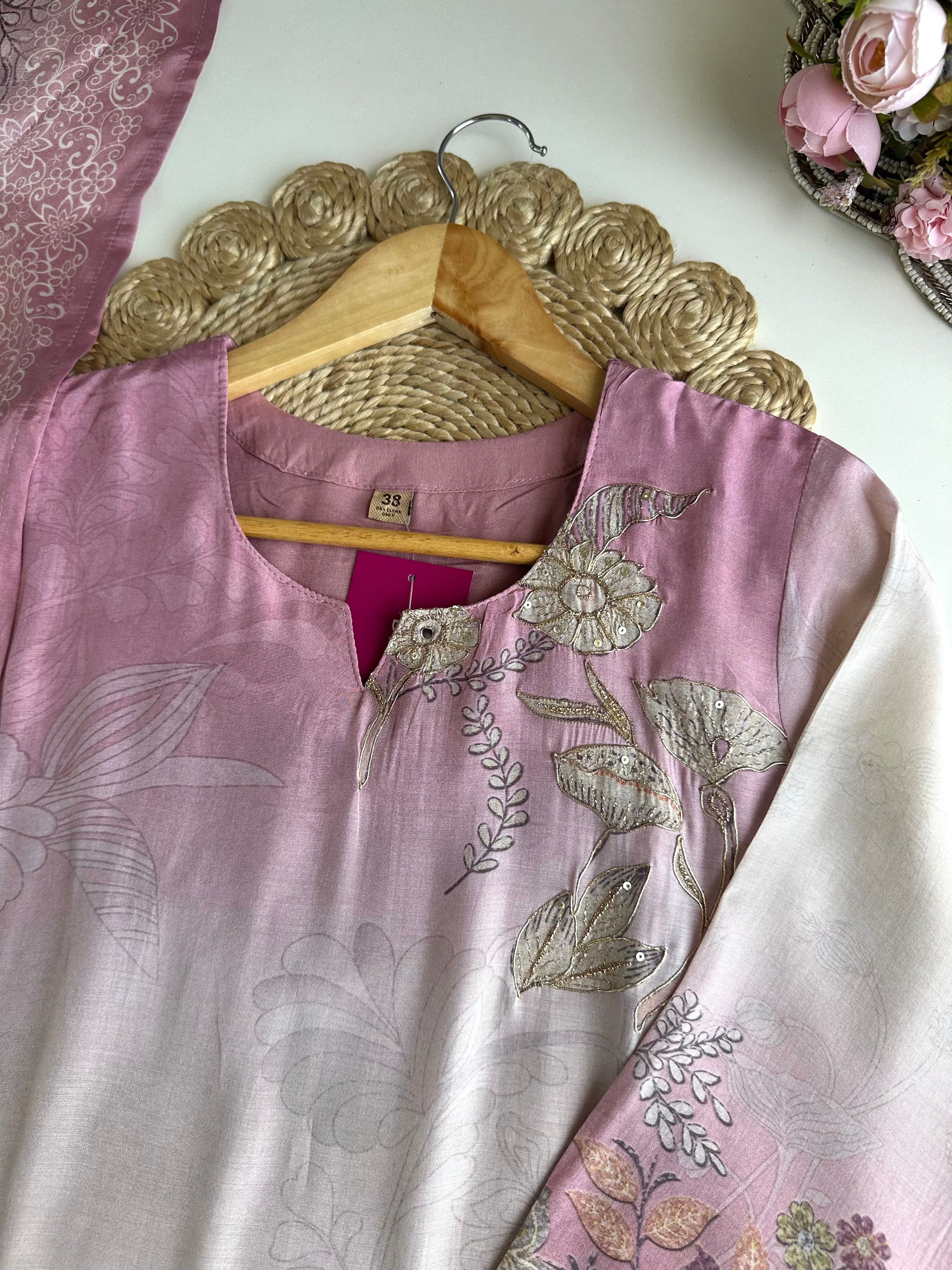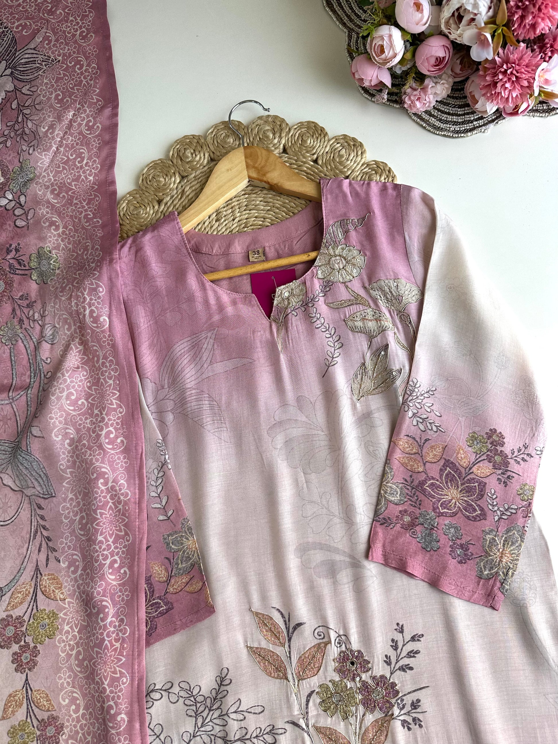 K416 - Muslin printed straight Kurti with pants and dupatta