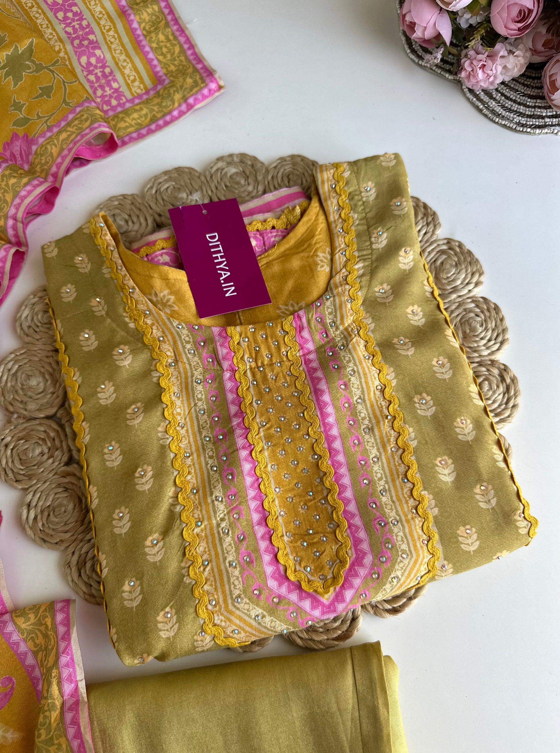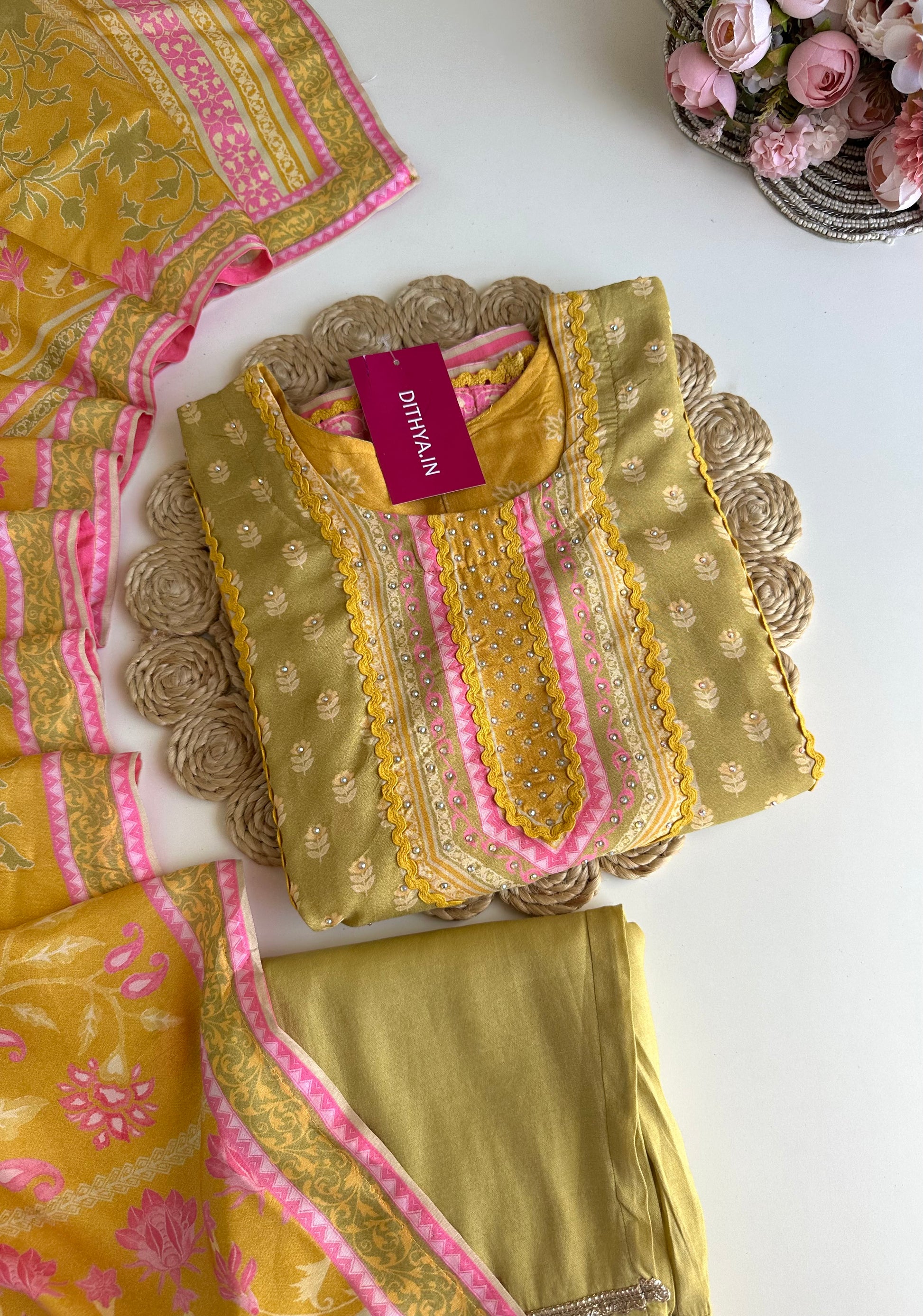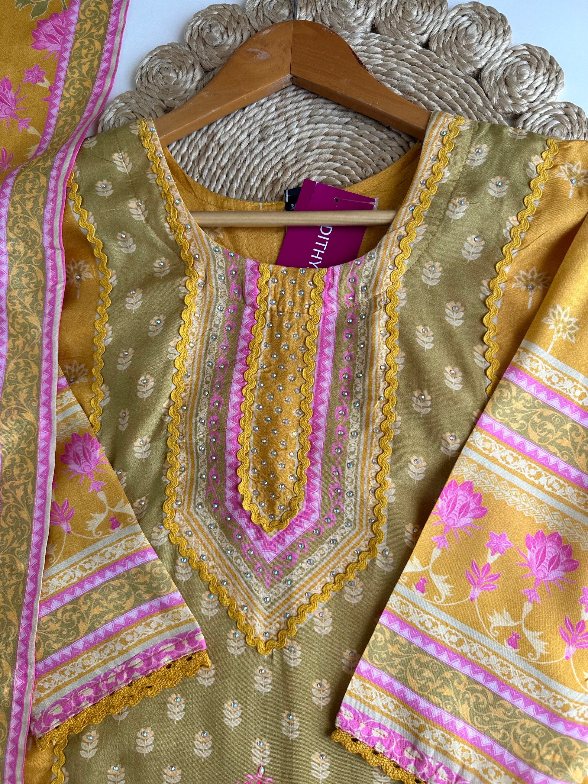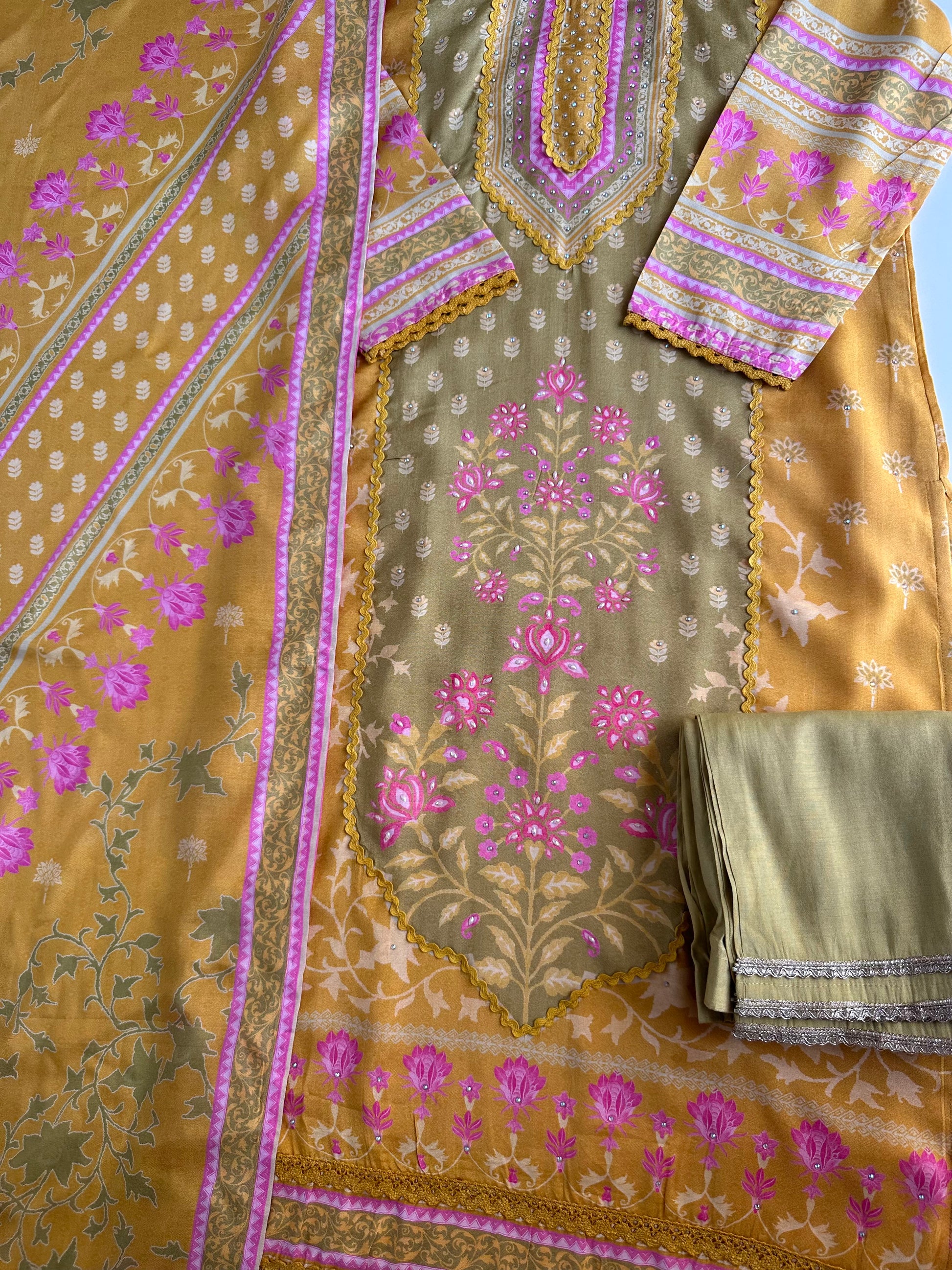 K382 - Muslin printed straight Kurti with pants and dupatta