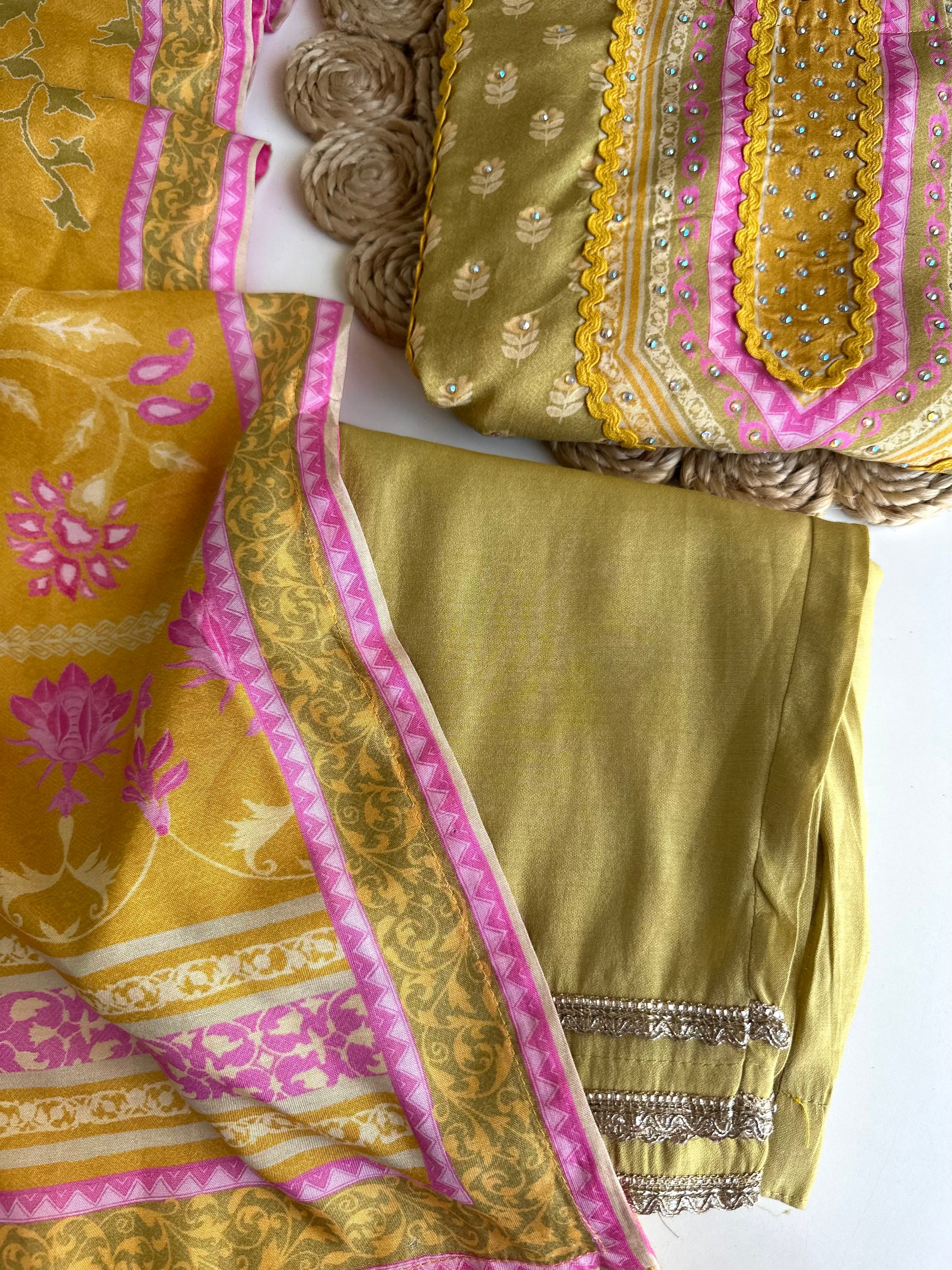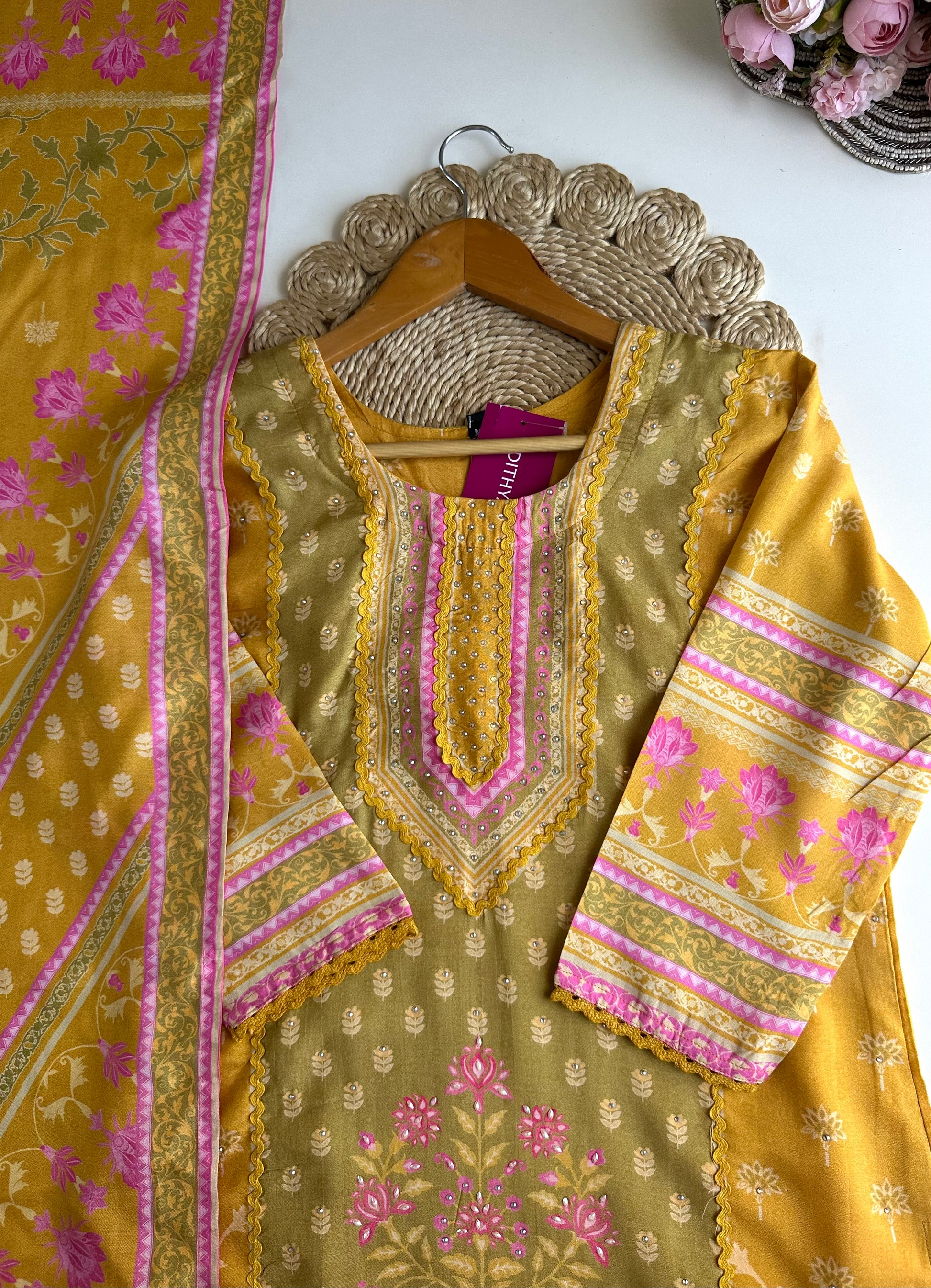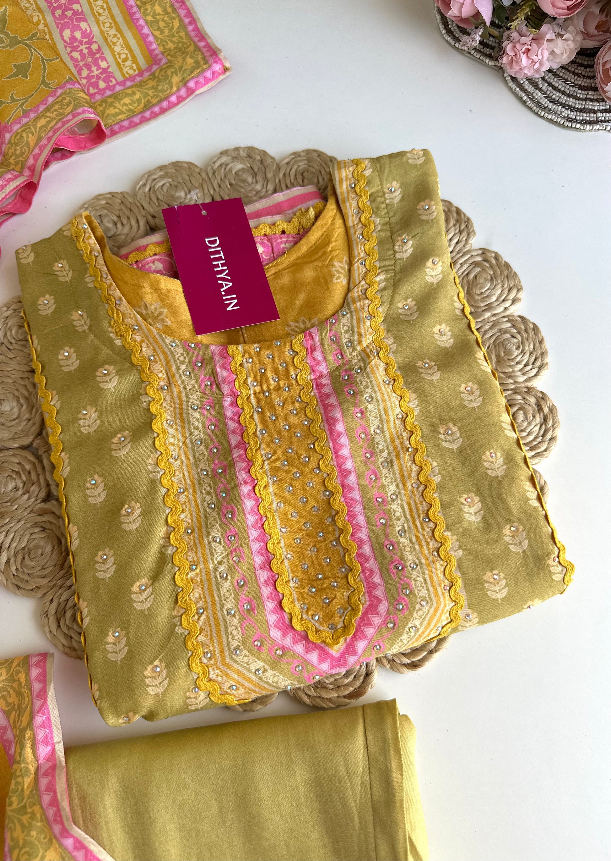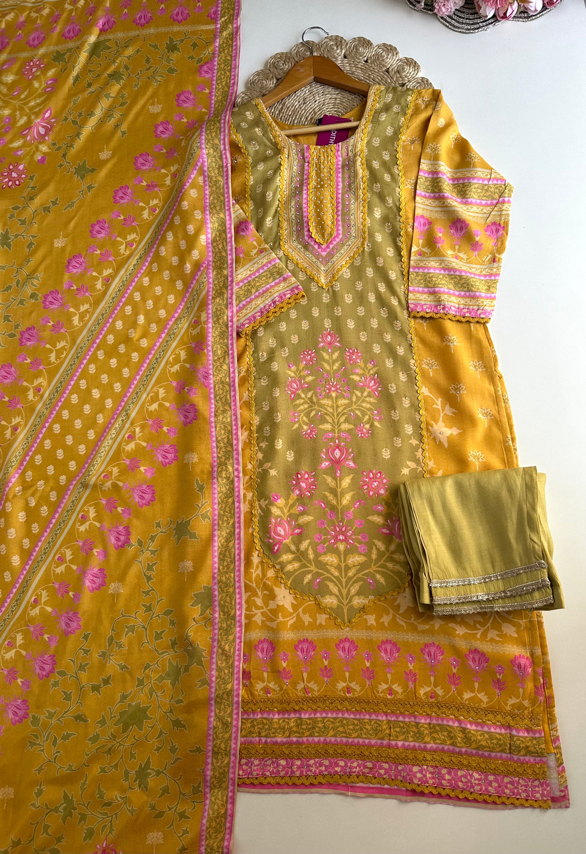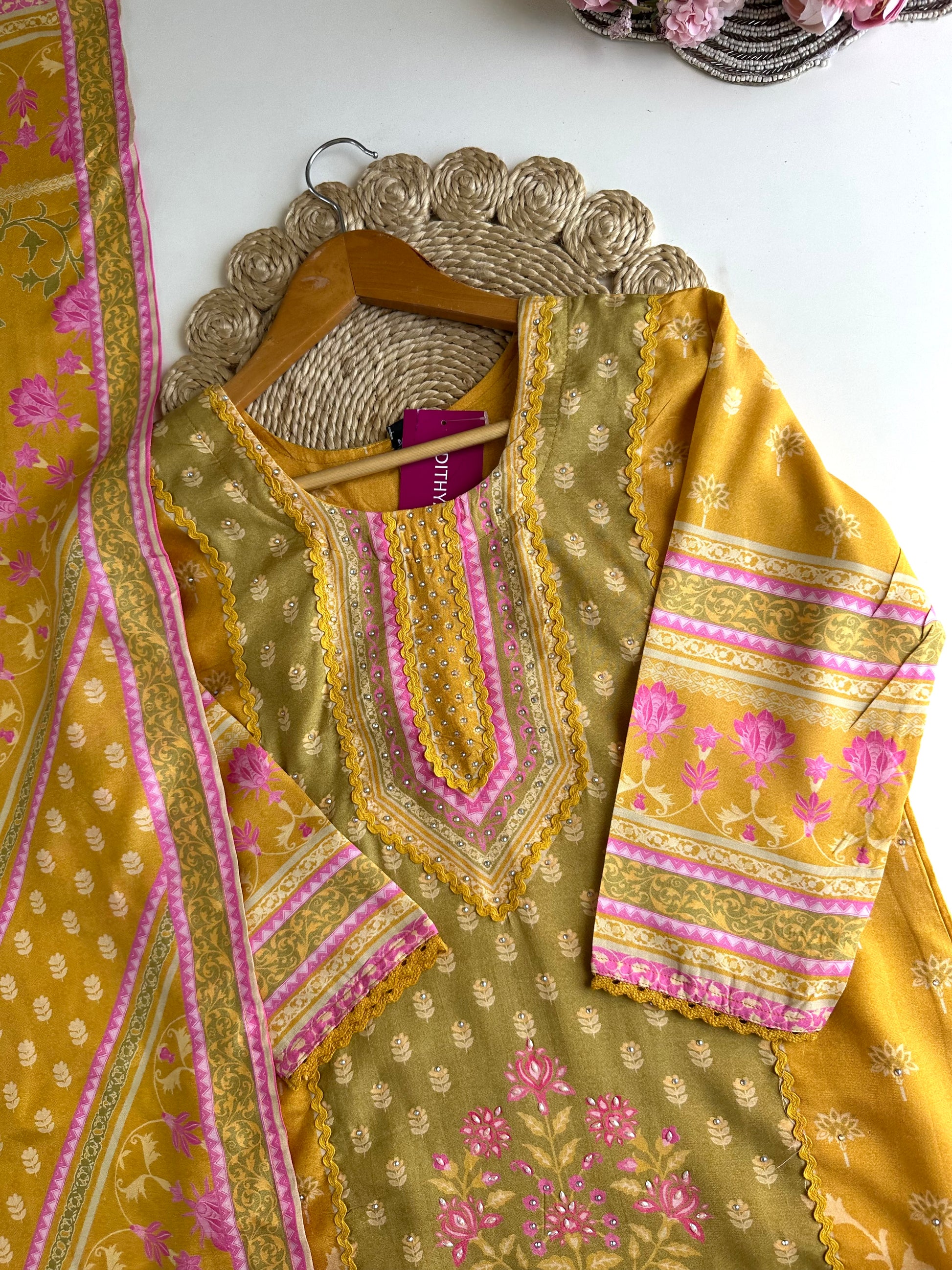 K382 - Muslin printed straight Kurti with pants and dupatta