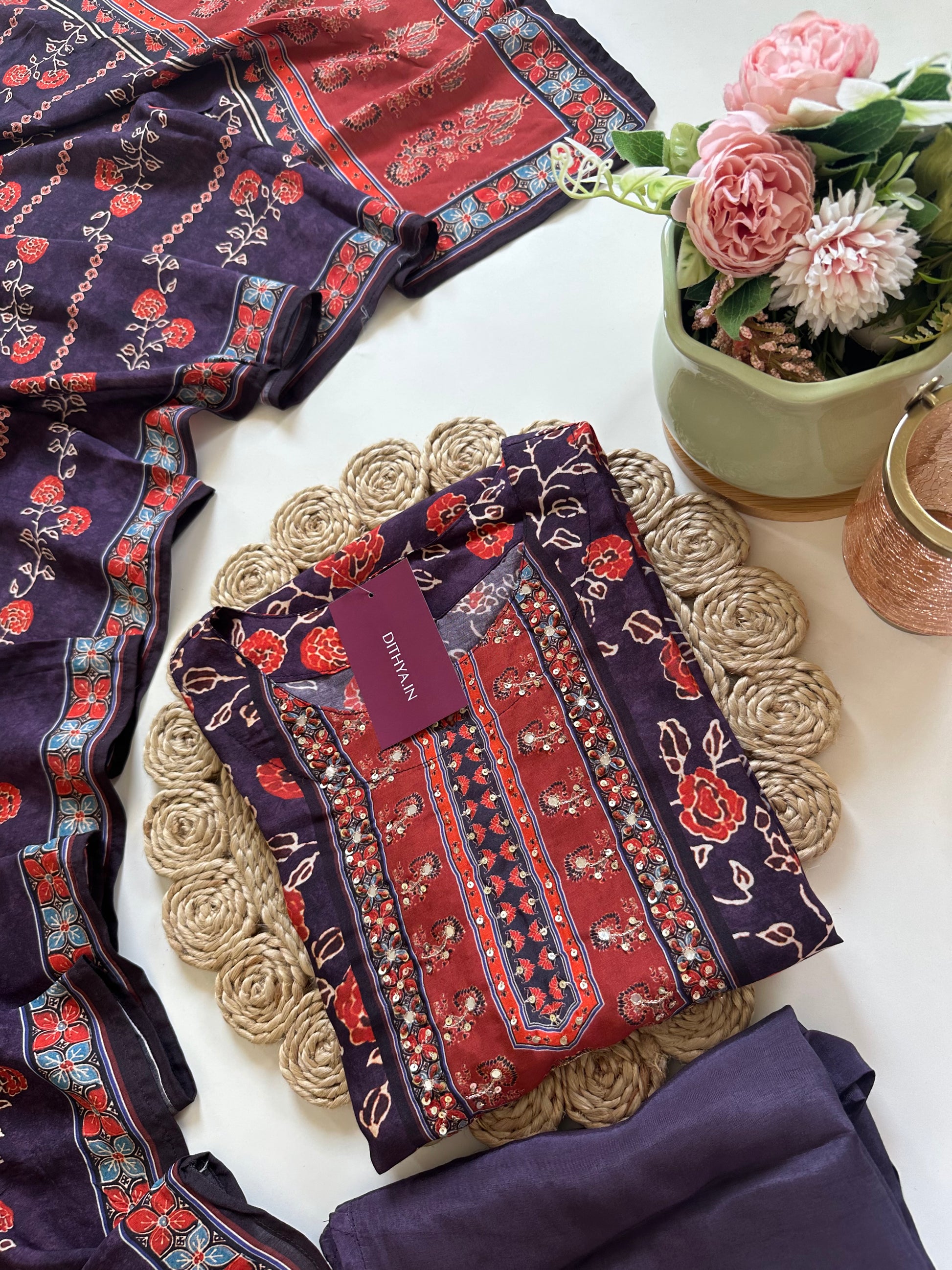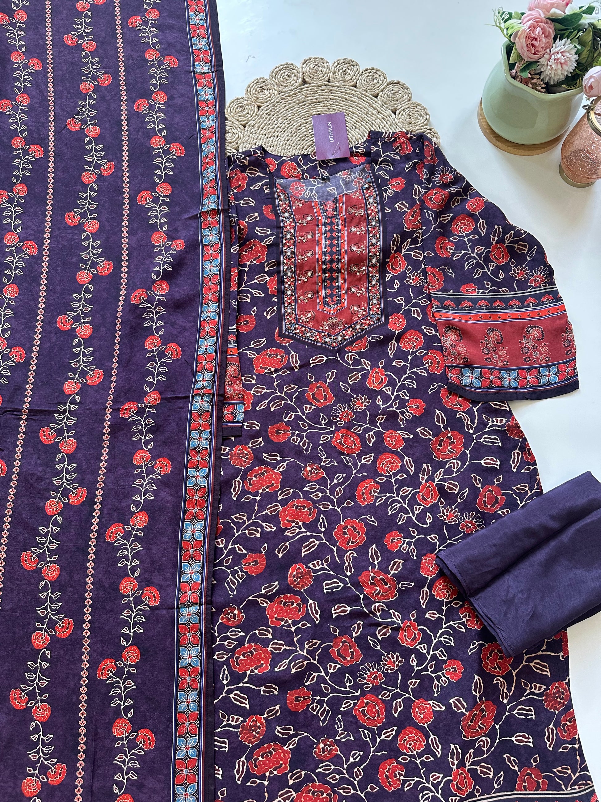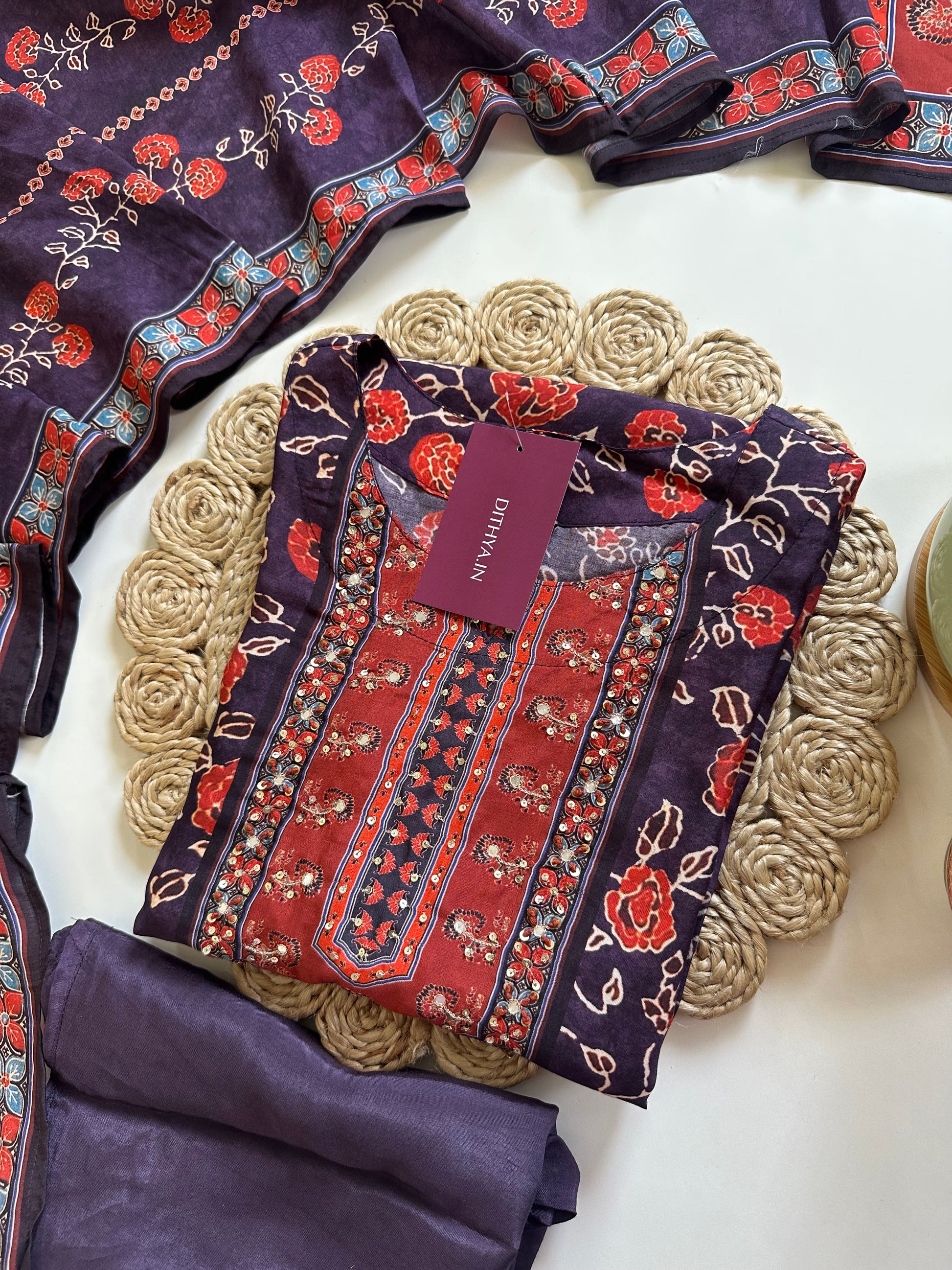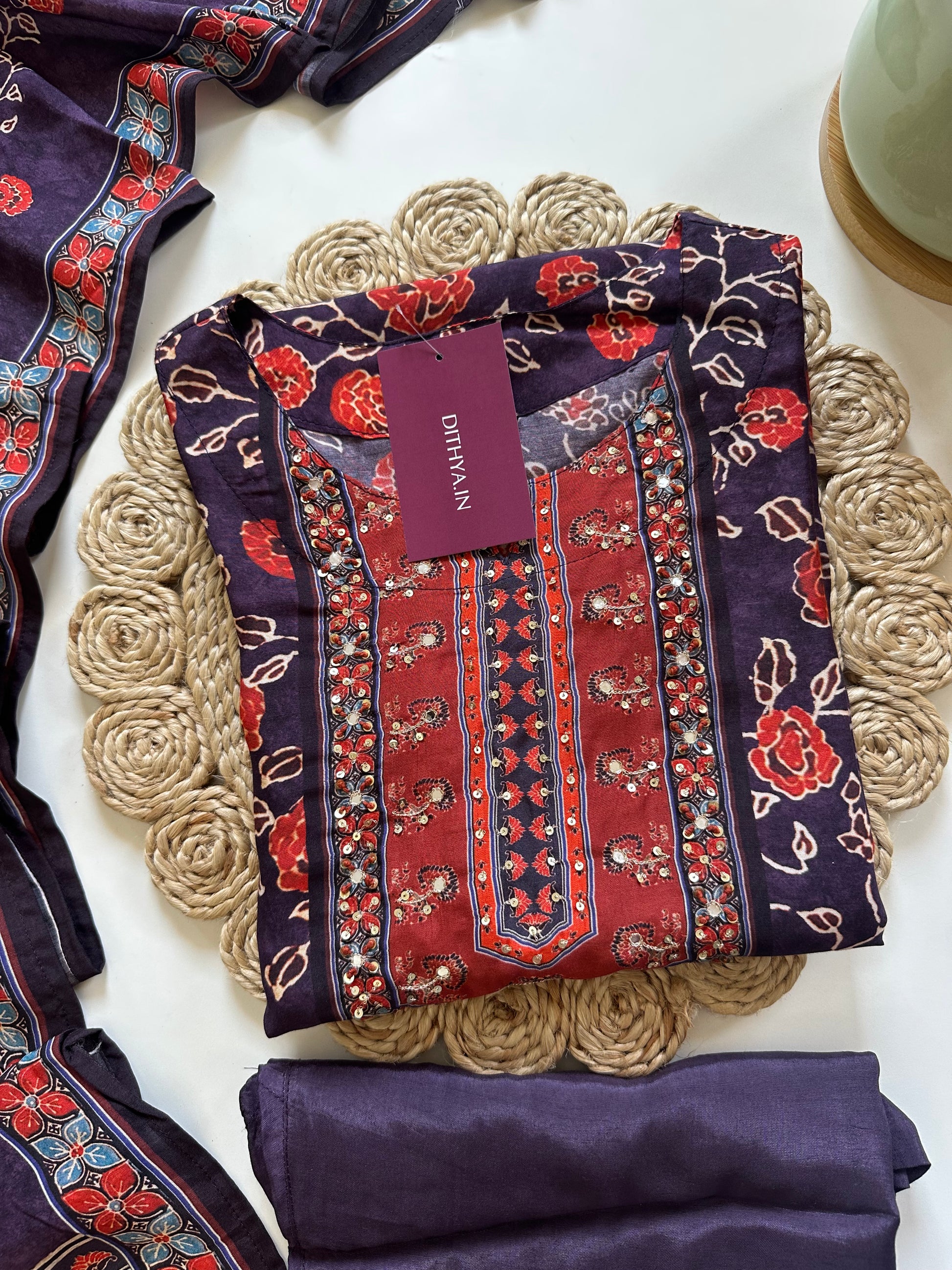 K081 - Muslin silk printed Straight kurti with pants and dupatta