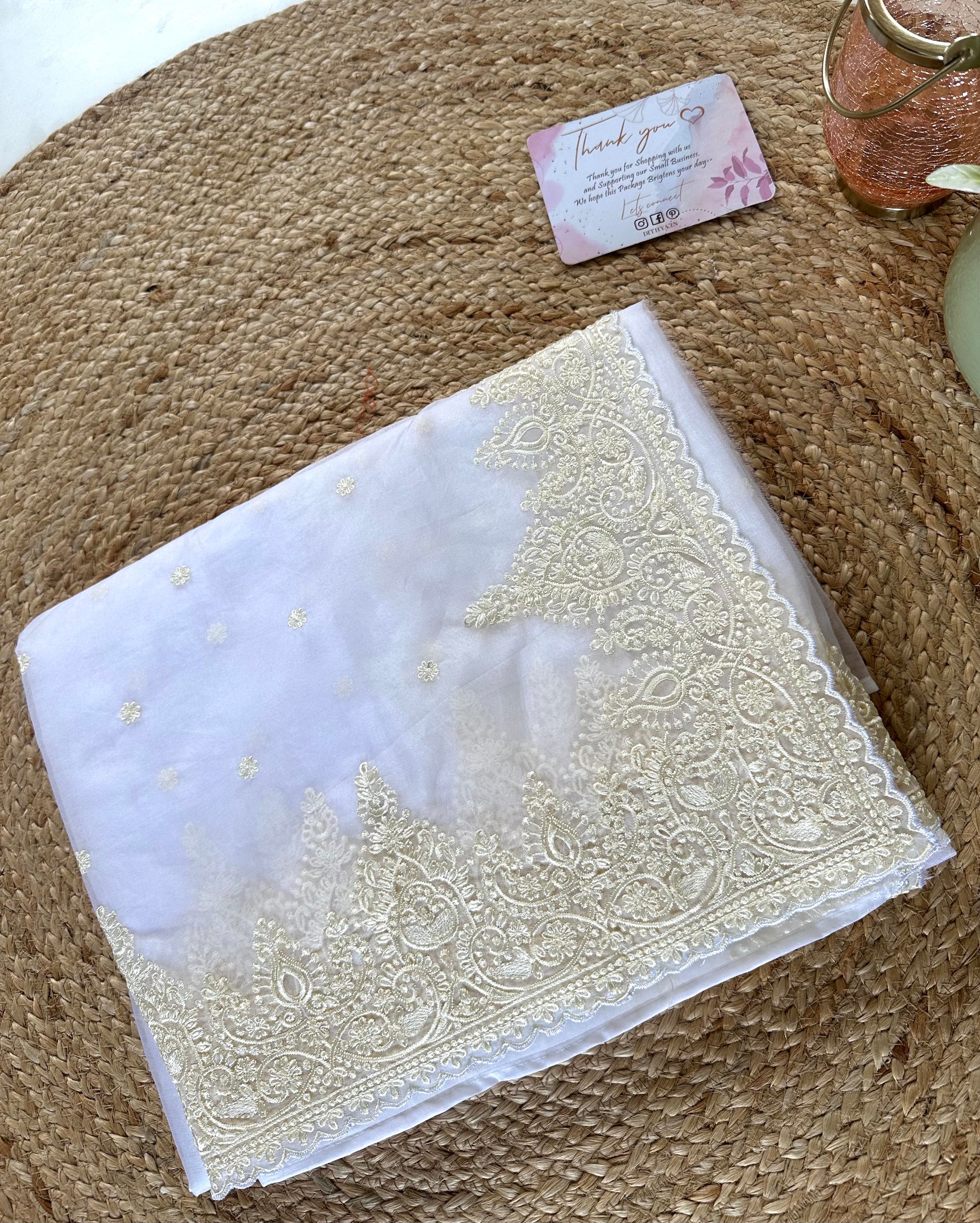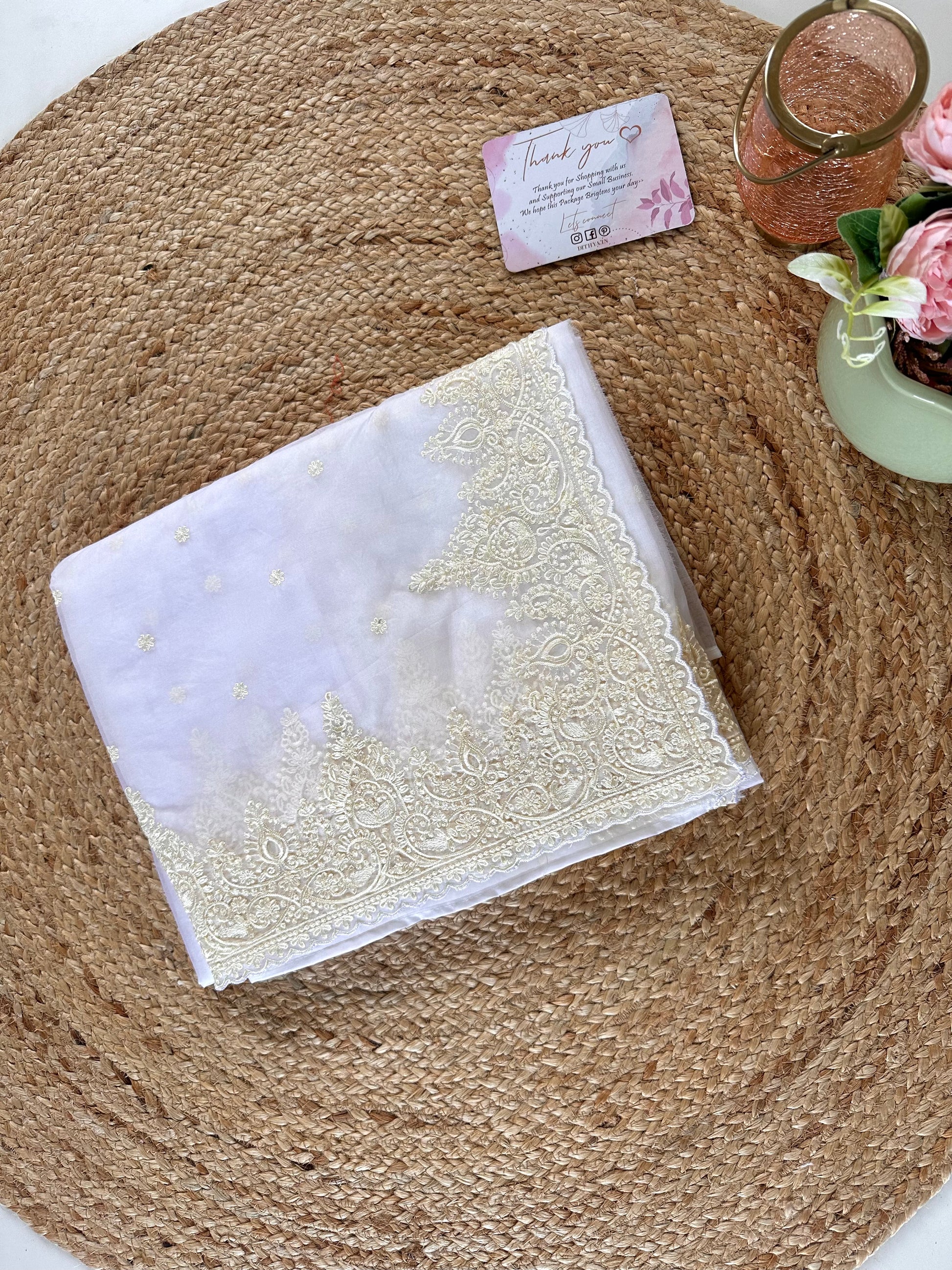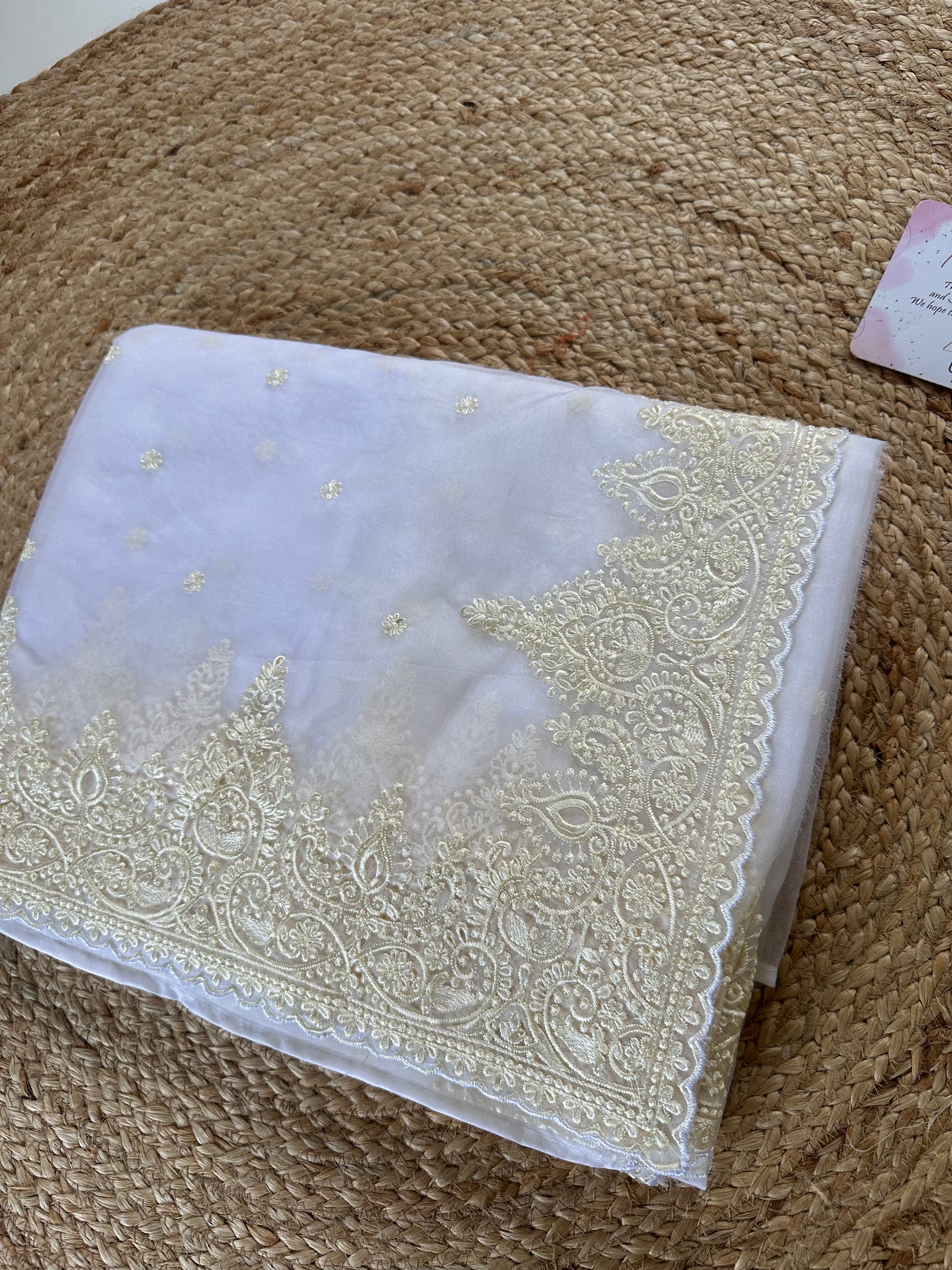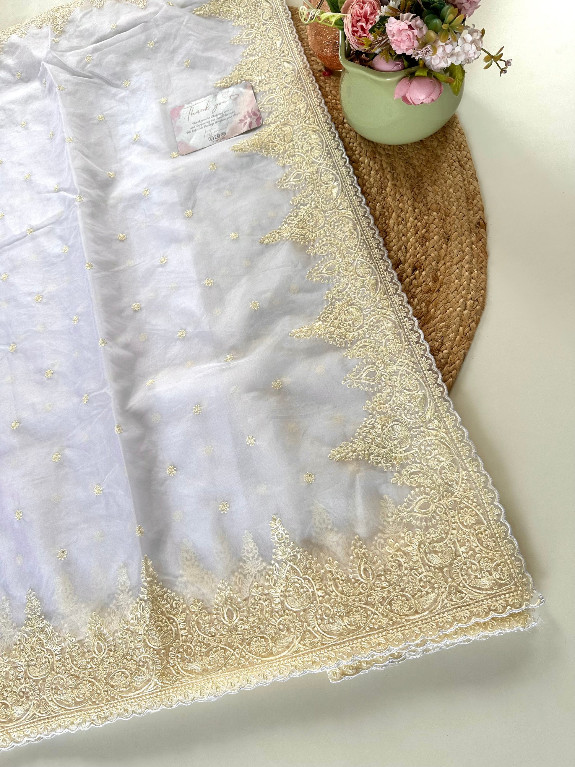 Expertly crafted from high-quality net organza, this saree features delicate embroidery for a stunning and elegant look. Soft and lightweight, this saree drapes beautifully and is perfect for any occasion. Upgrade your wardrobe with this timeless piece that combines classic style with modern sensibilities.