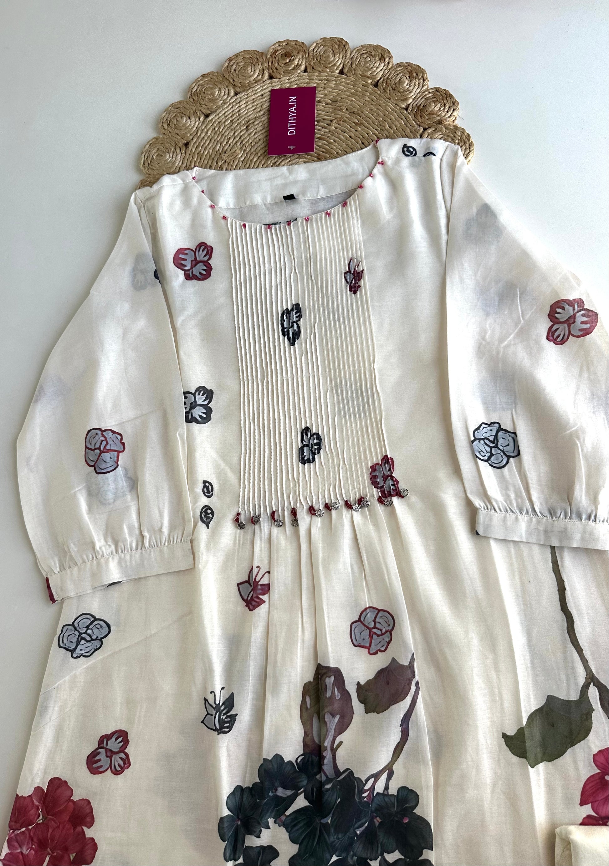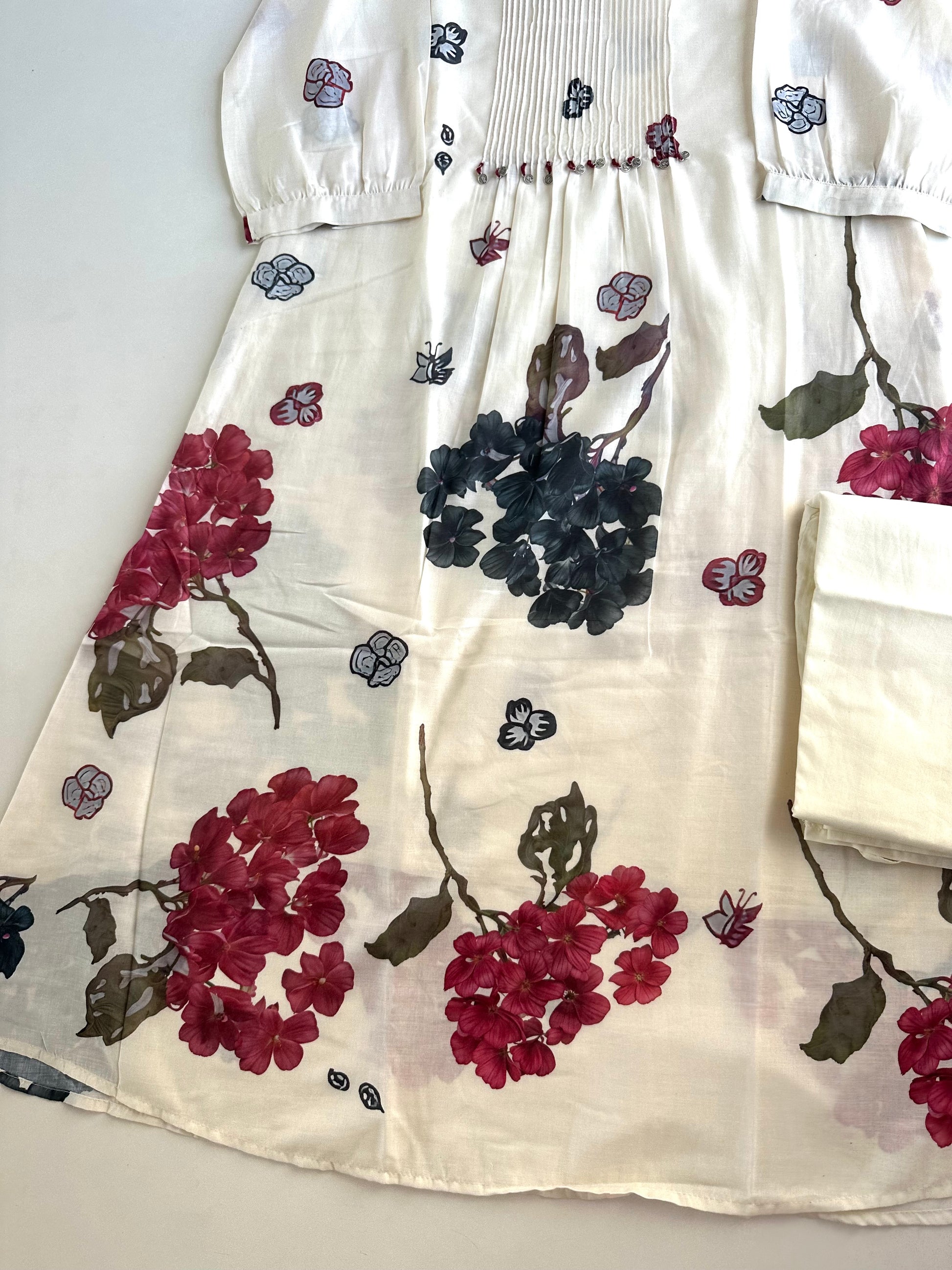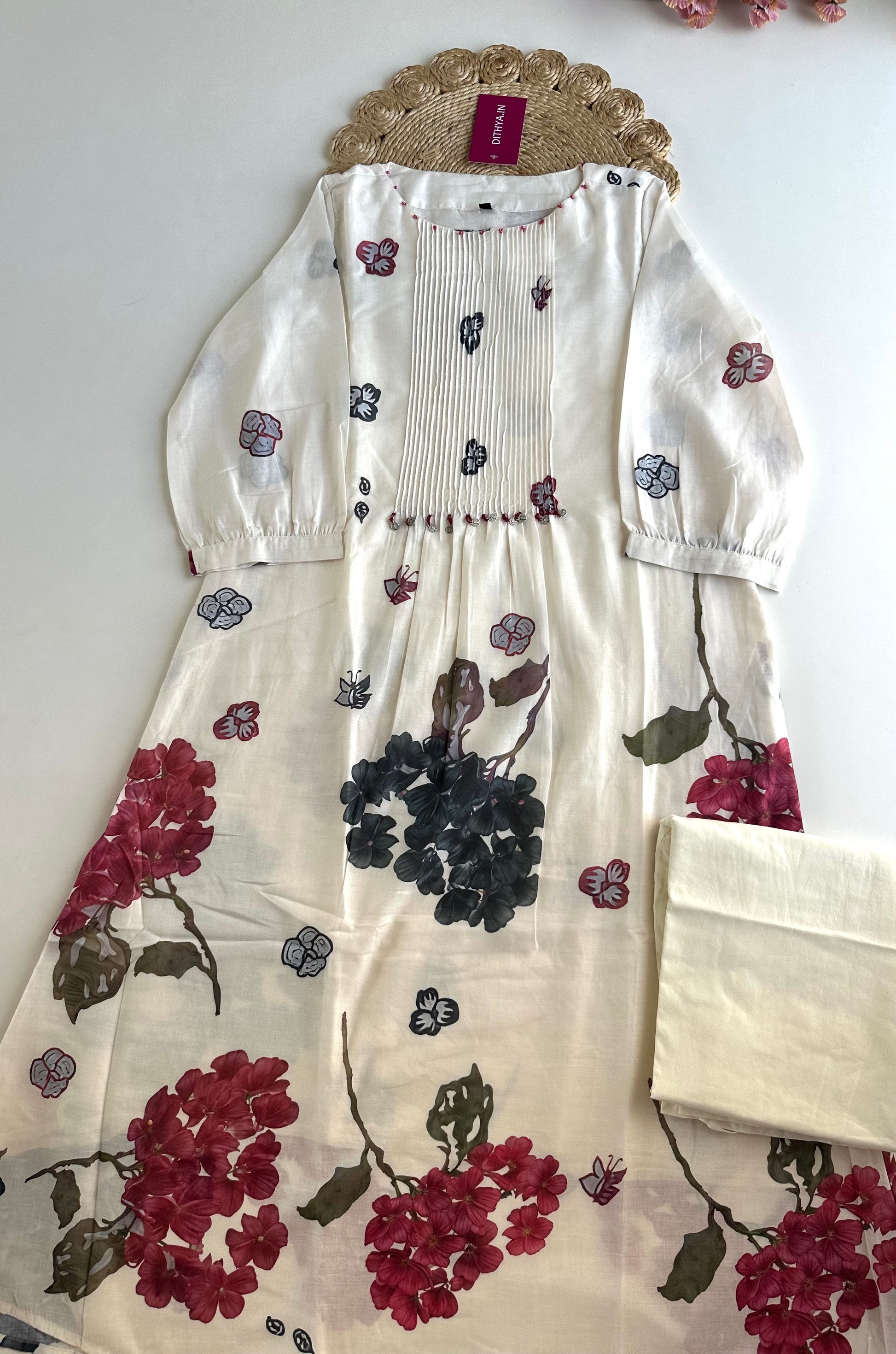 K112 - Floral pintex mul cotton Aline Kurti with pants